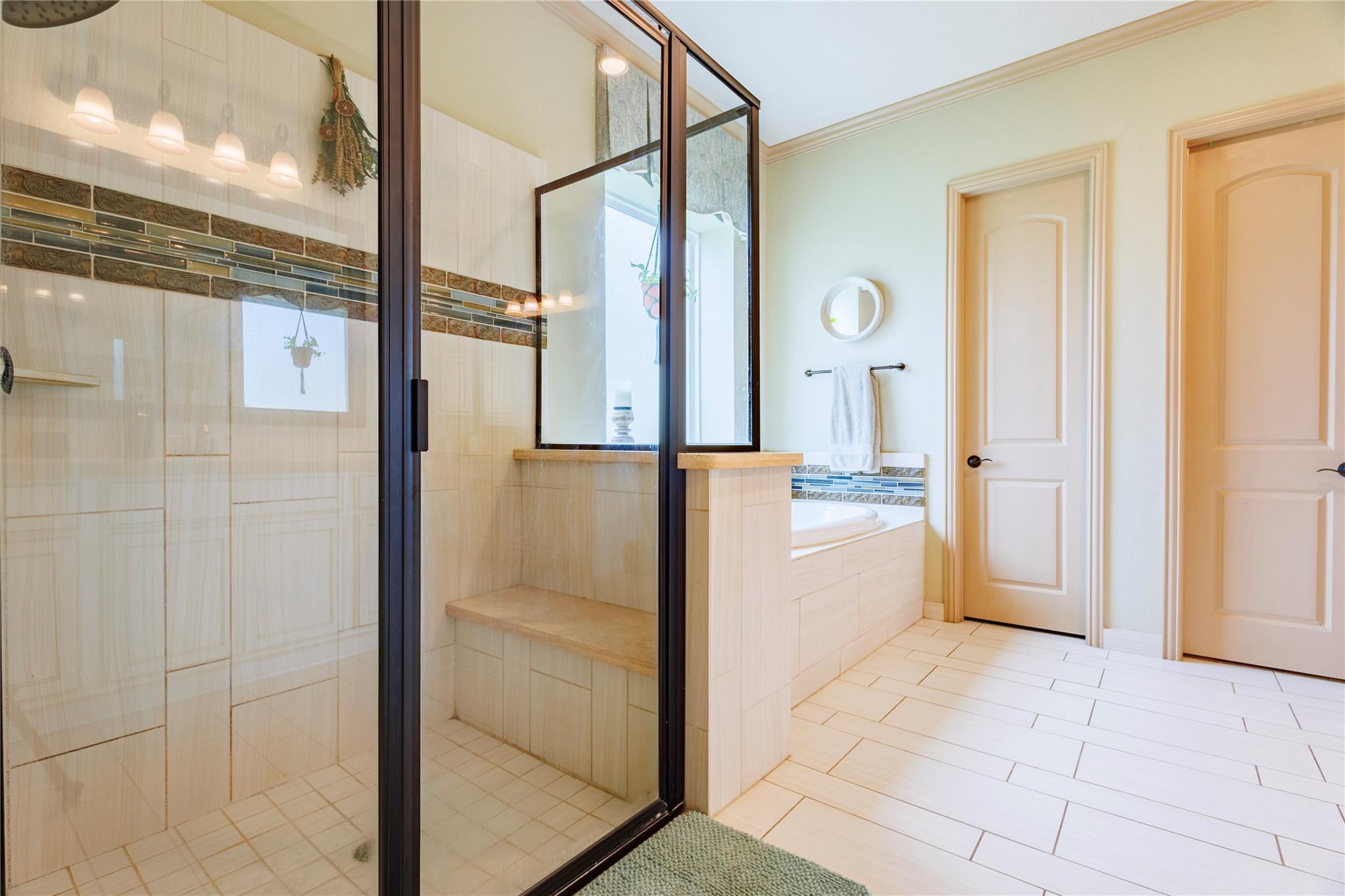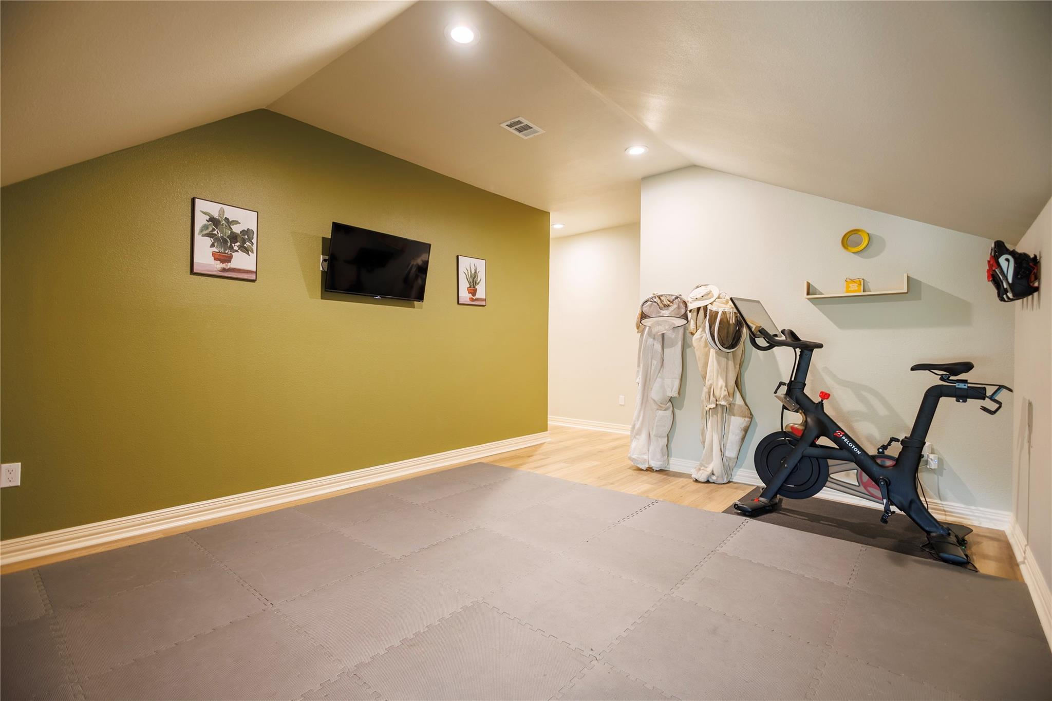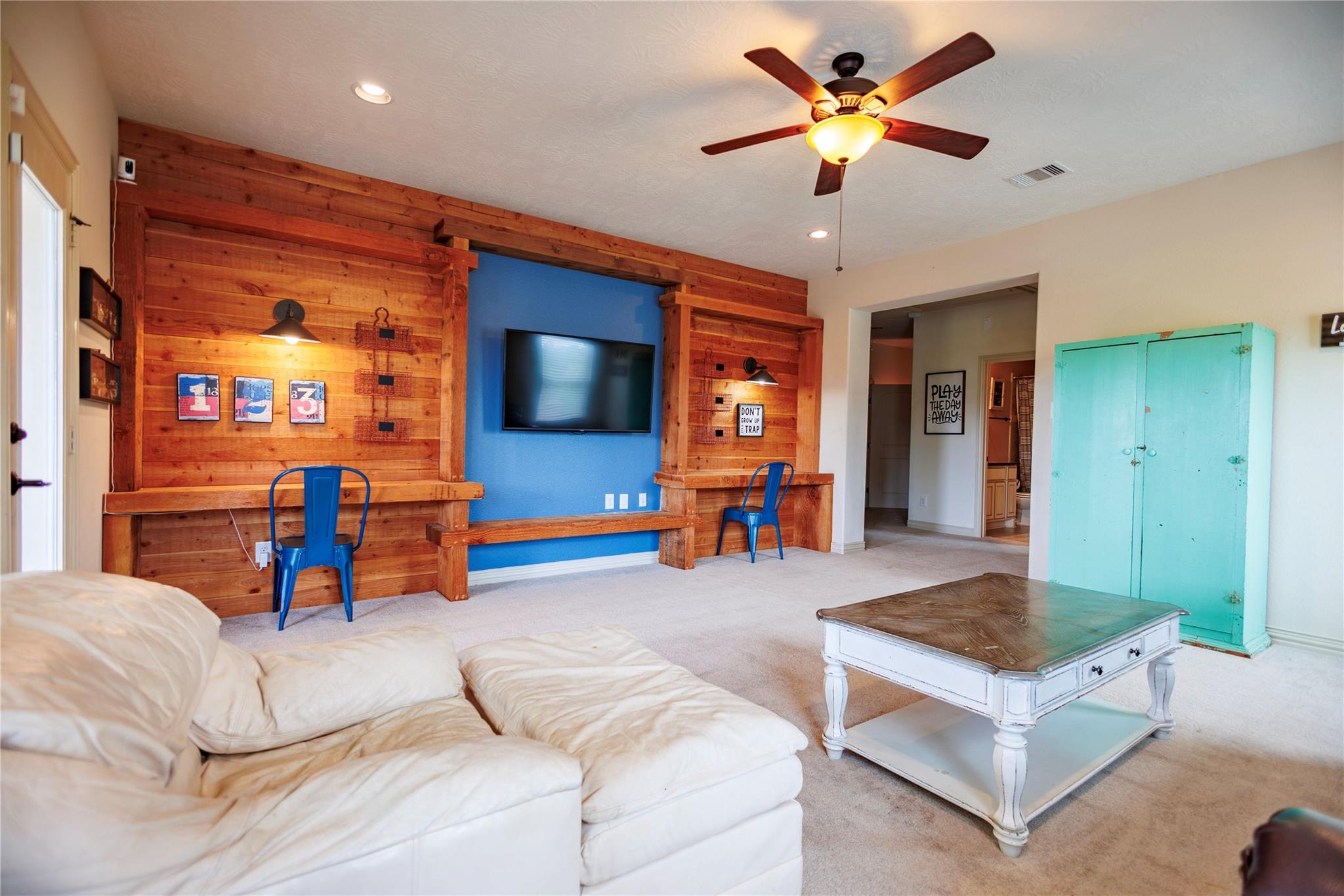 NEED SOME SPACE? THIS IS THE PLACE! MODERN ELEGANCE MEETS SUSTAINABLE LIVING!Discover the perfect balance of luxury, functionality & eco-friendly design in this former model home that's built for both relaxation & entertaining.With a focus on energy efficiency the solar panels help keep utility costs low while maintaining comfort year-around.Trip to the office is quick with convenient work-at-home office.Enjoy cozy evenings in family room with a double-sided fireplace & artful stone wall.Enterain the crew in formal dining room.The kitchen is the heart of the home with large island offering a combination of ample workspace,storage,& social gathering space.Media room for quite entertainment.Take the fun to upstairs gameroom then walk out to balcony to enjoy the serene setting of greeenbelt views. Custom touches thru-out.Attic space was enclosed for workout room adding even more sq footage to the home.You have to see this home to believe all the extras.OFFERS BRILLIANT LIVABILITY!