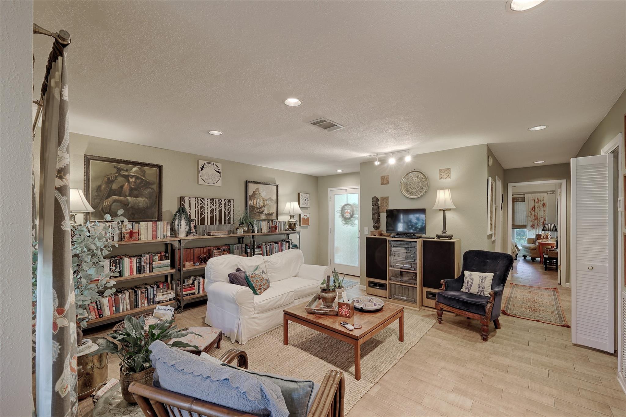Welcome to this inviting townhome in the gated community of April Sound! A beautifully landscaped courtyard entry sets the tone for this light-filled home, offering scenic views of the first fairway of the April Sound golf course and Lake Conroe. The thoughtfully designed layout features two spacious living areas, two bedrooms, and two full baths—perfectly balancing comfort and functionality. Vaulted ceilings and expansive windows fill the home with natural light, creating an open and airy feel throughout. Upstairs, a versatile bonus room with a half bath provides the ideal space for a home office, guest room, or hobby area. Step outside to relax or entertain on the screened-in porch or the deck with pergola, where you can take in the peaceful golf course and lake views. April Sound amenities include neighborhood pools, restaurant, playgrounds and manned gated entry. Montgomery schools.