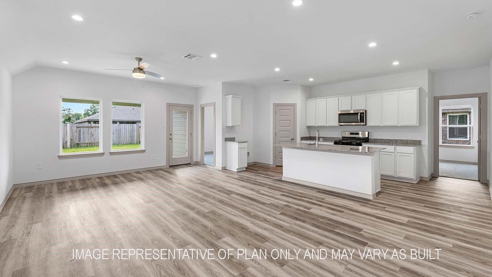 Discover the Camden floorplan, this beautiful single story 2-car garage home in Orange, Texas is just what you have been looking for. Inside this 3-bedroom, 2-bathroom floorplan, you’ll find approximately 1,501 square foot home that makes the most of its space. The living area Is an open concept, where your kitchen, living, and dining areas blend seamlessly into a space perfect for everyday living and entertaining. The kitchen features shaker-style cabinets and granite countertops. It also includes a breakfast bar and separate pantry for extra storage space. The standard covered patio is located off the family room for you to enjoy the views of nature from the backyard. The primary bedroom features an attached primary bathroom and a spacious walk-in closet for all your belongings. The spacious secondary bedrooms are carpeted and have easy access to the laundry room and secondary bathroom. You’ll enjoy the smart home technology that is built into every D.R. Horton home.