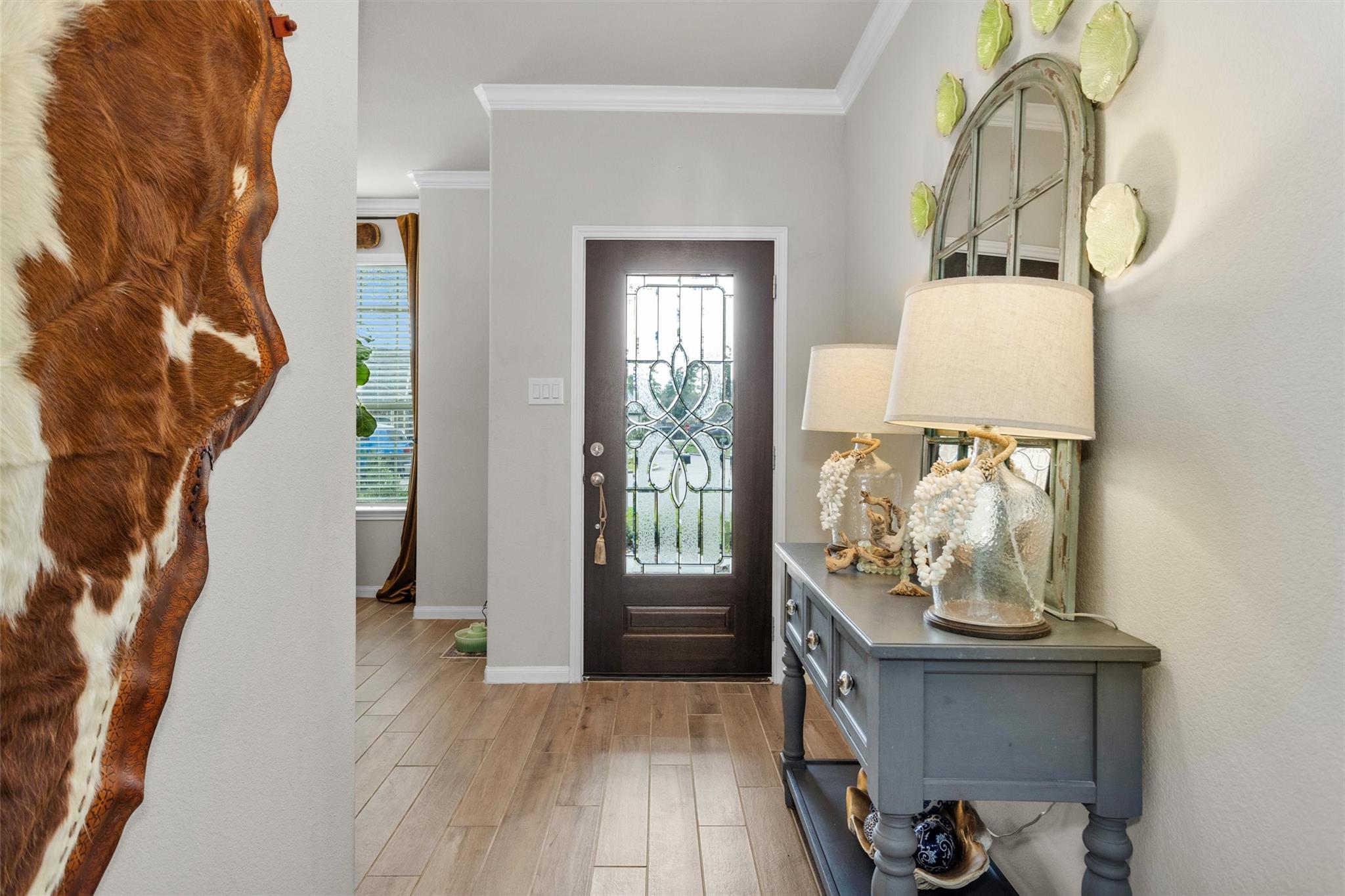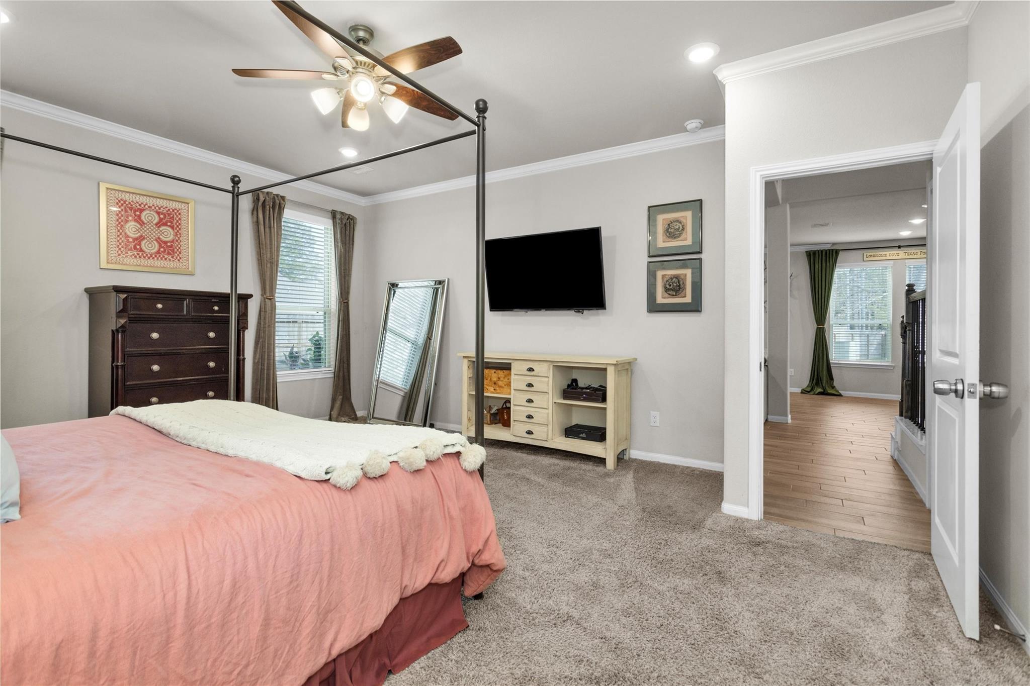 Located on an oversized cul-de-sac lot in Walden on Lake Conroe, this stunning 4-5 bedroom, 3.5 bath home offers 2,929 sqft of thoughtfully designed living space. Built in 2022, the home features an open-concept layout, formal dining, spacious game room, and private balcony. The primary suite is located on the first floor with a spa-like bath, jetted tub, and walk-in closet. Enjoy energy-efficient features including a 16 SEER HVAC system and an added dust-free active purifier system for enhanced air quality. The fully fenced backyard offers privacy and space to relax or entertain. Located in a golf course community with access to walking trails, marina, fitness center, tennis, and more. Zoned to highly rated Montgomery ISD schools with low taxes and excellent amenities.