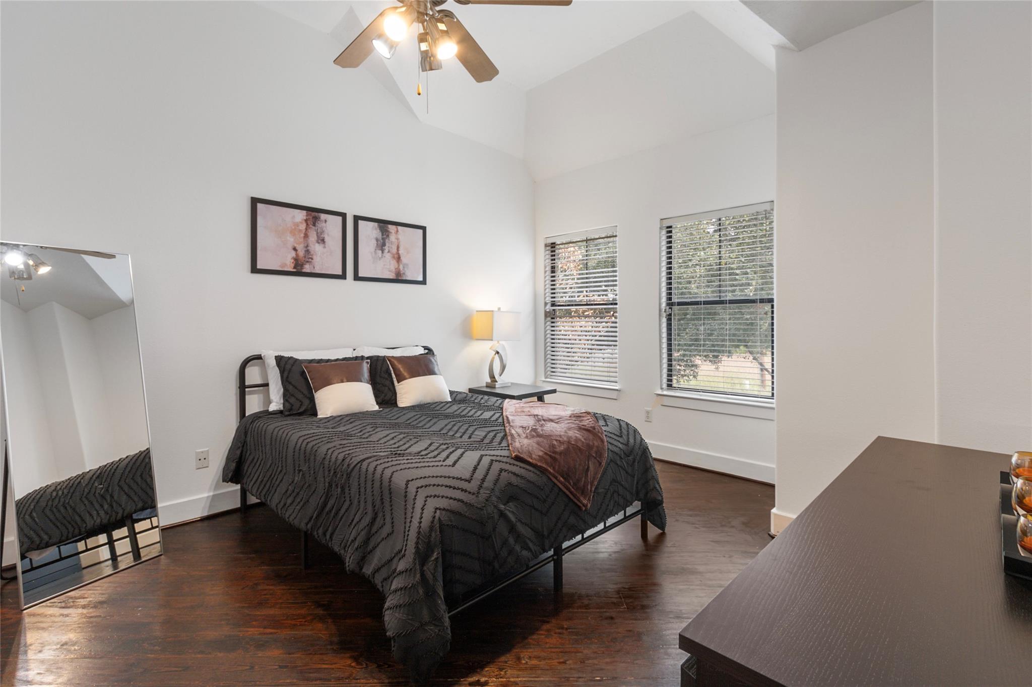 Experience city living with style in this move-in ready 2-bedroom, 2-bath townhome offering unbeatable views of the Downtown Houston skyline. Nestled in a secure gated community just steps from Emancipation Park, this home features an open-concept layout with soaring ceilings, granite countertops, and a sun-filled family room perfect for entertaining. The spacious Houston primary suite boasts a walk-in closet and tall ceilings, while the first-floor guest bedroom, ideal for guests or a home office space. Relax and take in the spectacular Downtown Houston skyline views from your private balcony. Interior touches include durable stained concrete and rich wood flooring throughout. With a secure two-car garage, ample storage, and a prime Houston location minutes from UH, TSU, Midtown Houston, the Texas Medical Center, and Downtown Houston, this property is a perfect fit for short-term rentals (STR) or your next home base. Schedule your Houston townhome tour today!