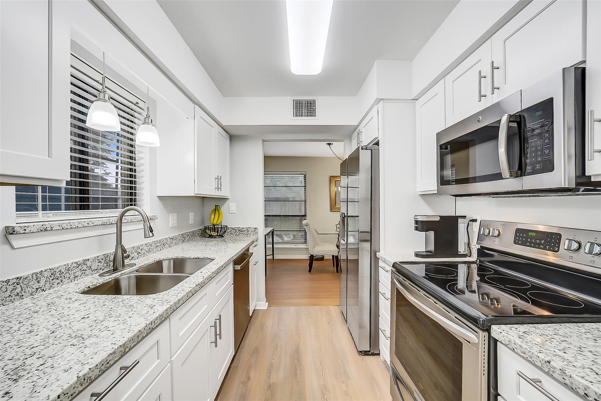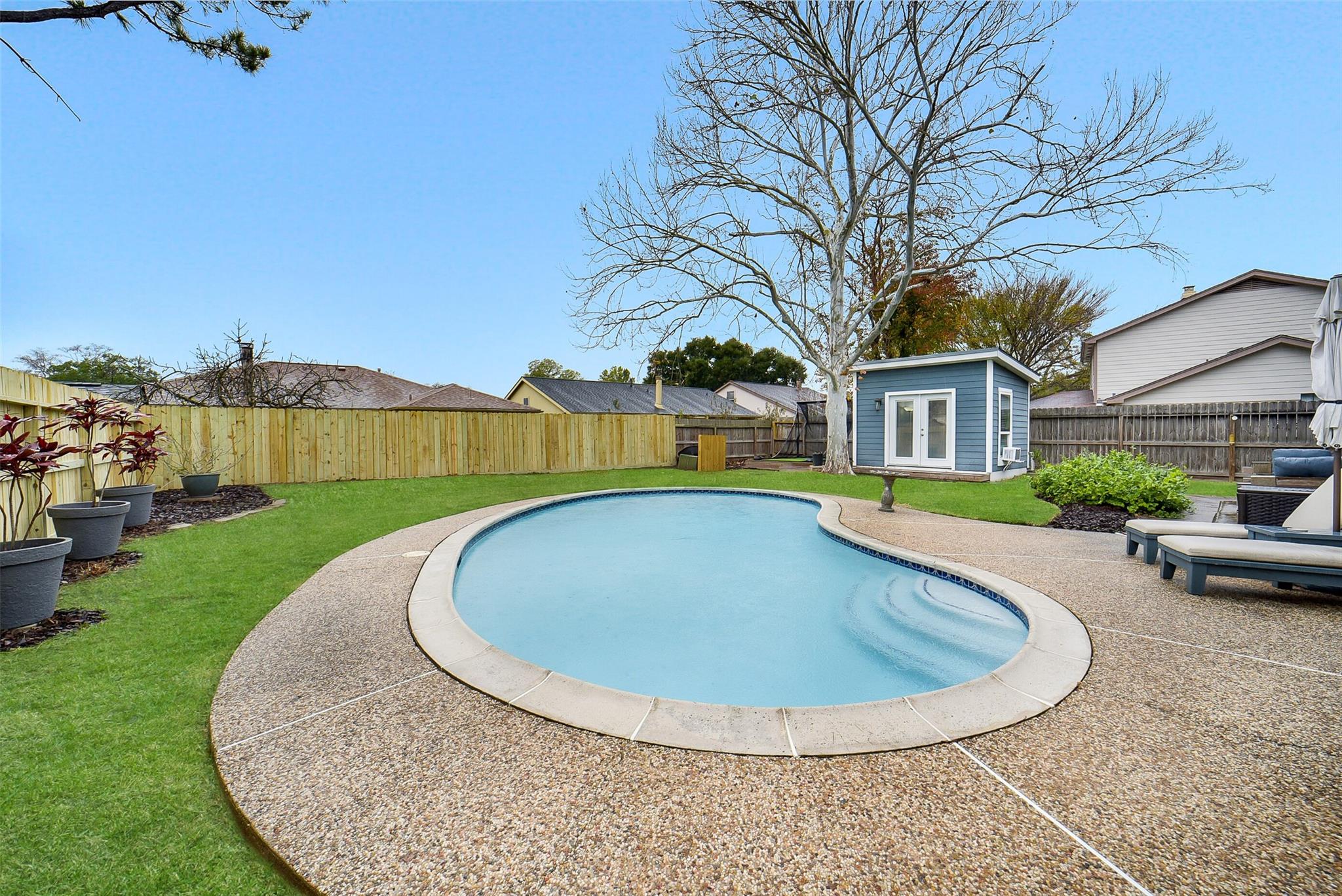 Beautifully updated two story home with a pool! The newly renovated kitchen showcases white shaker-style cabinetry w/contemporary hardware, granite countertops & new stainless steel appliances. The spacious family room is anchored by a cozy brick fireplace and it flow seamlessly into the dining area. Enjoy new laminate flooring throughout the 1st floor & fresh interior paint throughout the home. The primary suite features a private sitting room, ideal for a home office or nursery, & a stunning renovated en-suite bath w/a dual-sink granite vanity, frameless glass shower & updated fixtures. Step outside to the backyard featuring a swimming pool (resurfaced in 2025), patio & ample green space. Additional highlights include a whole-home generator, new roof (2021), and a backyard shed w/finished walls & a window unit A/C - great for a hobby room, studio, or extra workspace. Conveniently located near popular restaurants, shopping & major thoroughfares for an easy commute.