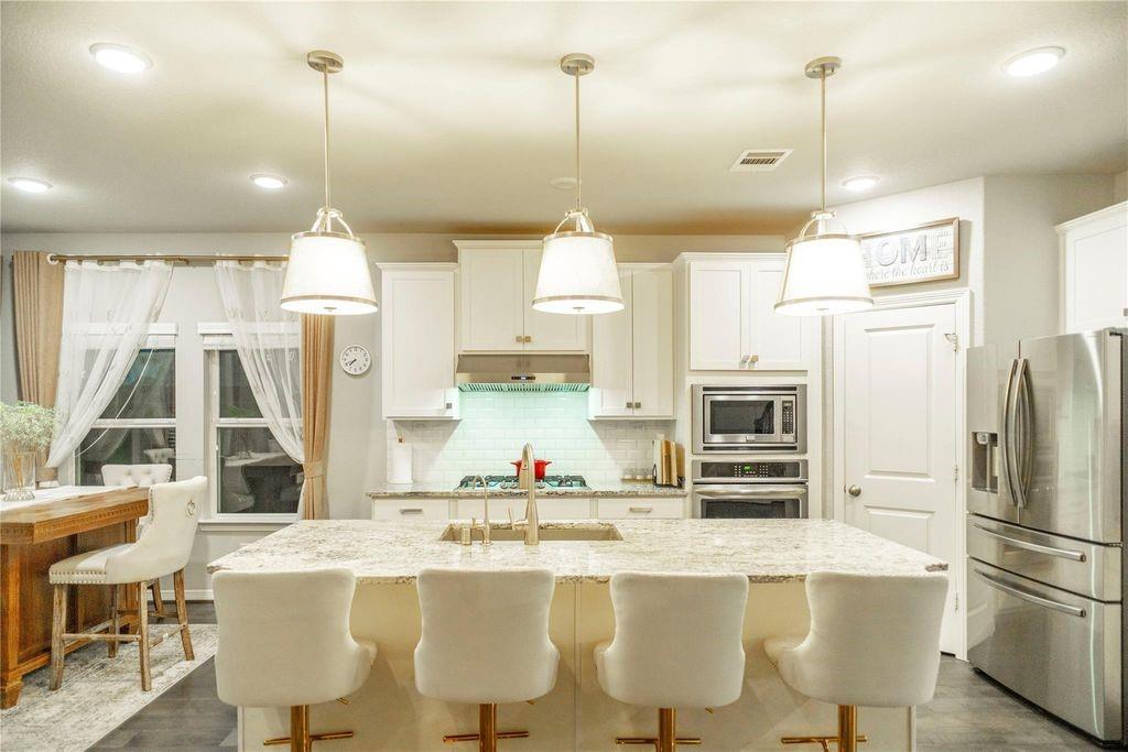InteriorFireplace:1/Gas ConnectionsFloors:Carpet,Tile,WoodBathroom Description:Primary Bath: Double Sinks,Primary Bath: Shower Only,Secondary Bath(s): Tub/Shower ComboBedroom Desc:2 Bedrooms Down,Primary Bed - 1st Floor,Walk-In ClosetKitchen Desc:Breakfast Bar,Island w/o Cooktop,Kitchen open to Family Room,PantryRoom Description:1 Living Area,Formal Dining,Gameroom Up,Kitchen/Dining Combo,Living Area - 1st FloorHeating:Central GasCooling:Central ElectricConnections:Electric Dryer Connections,Washer ConnectionsDishwasher:YesDisposal:YesCompactor:NoMicrowave:YesRange:Gas CooktopOven:Electric OvenInterior:Fire/Smoke Alarm,High Ceiling