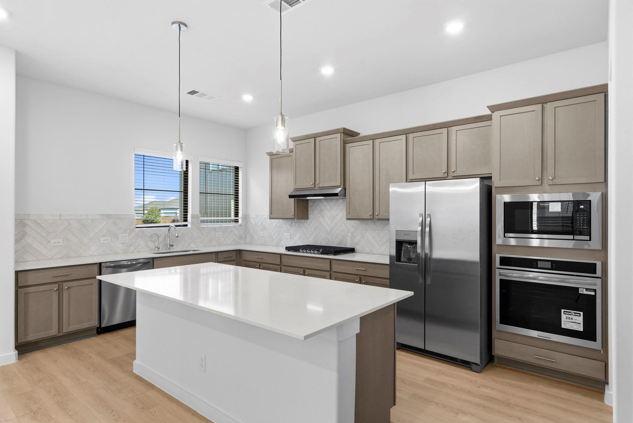 InteriorFloors:Vinyl PlankCountertop:QuartzBathroom Description:Full Secondary Bathroom Down,Primary Bath: Double Sinks,Primary Bath: Shower Only,Secondary Bath(s): Separate Shower,Secondary Bath(s): Tub/Shower ComboBedroom Desc:1 Bedroom Down - Not Primary BR,En-Suite Bath,Primary Bed - 2nd Floor,Walk-In ClosetKitchen Desc:Breakfast Bar,Instant Hot Water,Island w/o Cooktop,Kitchen open to Family Room,Pantry,Pots/Pans Drawers,Soft Closing Cabinets,Soft Closing Drawers,Walk-in PantryRoom Description:1 Living Area,Entry,Family Room,Gameroom Up,Living Area - 1st Floor,Living Area - 2nd Floor,Living/Dining Combo,Loft,Utility Room in HouseHeating:Central GasCooling:Central ElectricConnections:Electric Dryer Connections,Washer ConnectionsDishwasher:YesDisposal:YesCompactor:YesMicrowave:YesRange:Gas CooktopOven:Convection OvenIce Maker:YesEnergy Feature:Attic Vents,Ceiling Fans,Digital Program Thermostat,Energy Star Appliances,High-Efficiency HVAC,Other Energy FeaturesInterior:Dryer Included,Fire/Smoke Alarm,High Ceiling,Refrigerator Included,Washer Included
