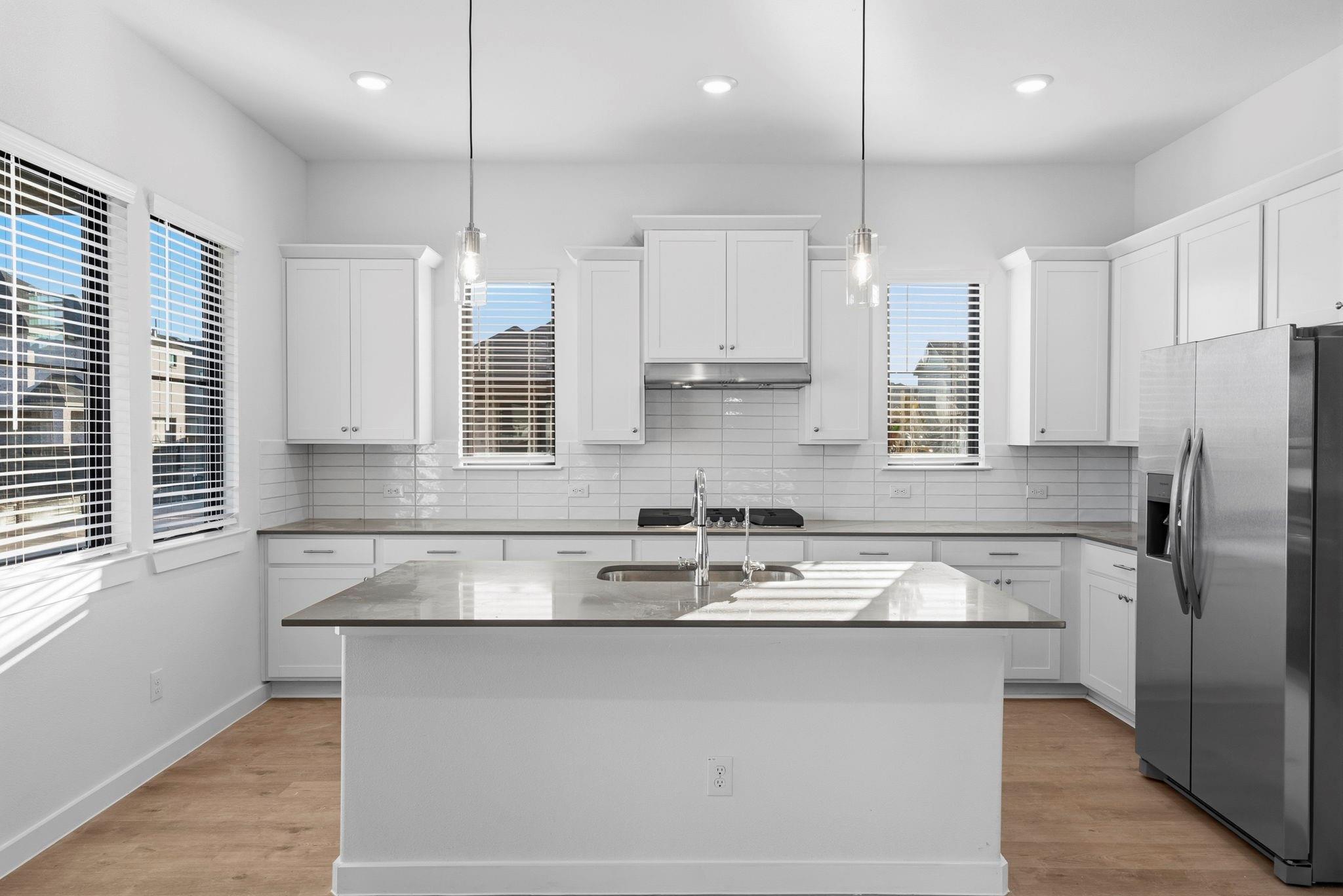 Enjoy peaceful living in this 4-bedroom, 3.5-bath home in the new master-planned community of Indigo. The Cardinal floor plan offers an open layout, front porch, upstairs loft, and a fenced backyard with a covered patio. The island kitchen features quartz countertops, soft-close cabinets, and a walk-in pantry. The primary suite includes double sinks, an oversized shower, and a spacious walk-in closet. Residents enjoy walkable amenities like The Filling Station, a 42-acre urban farm, green spaces with mini-golf and skee-ball, scenic trails, and a lake with an ADA kayak launch. Conveniently located near Grand Parkway, Cinco Ranch, Sugar Land, and major Houston highways. Measurements are approximate. Photos may be representative; finishes and plans may vary.