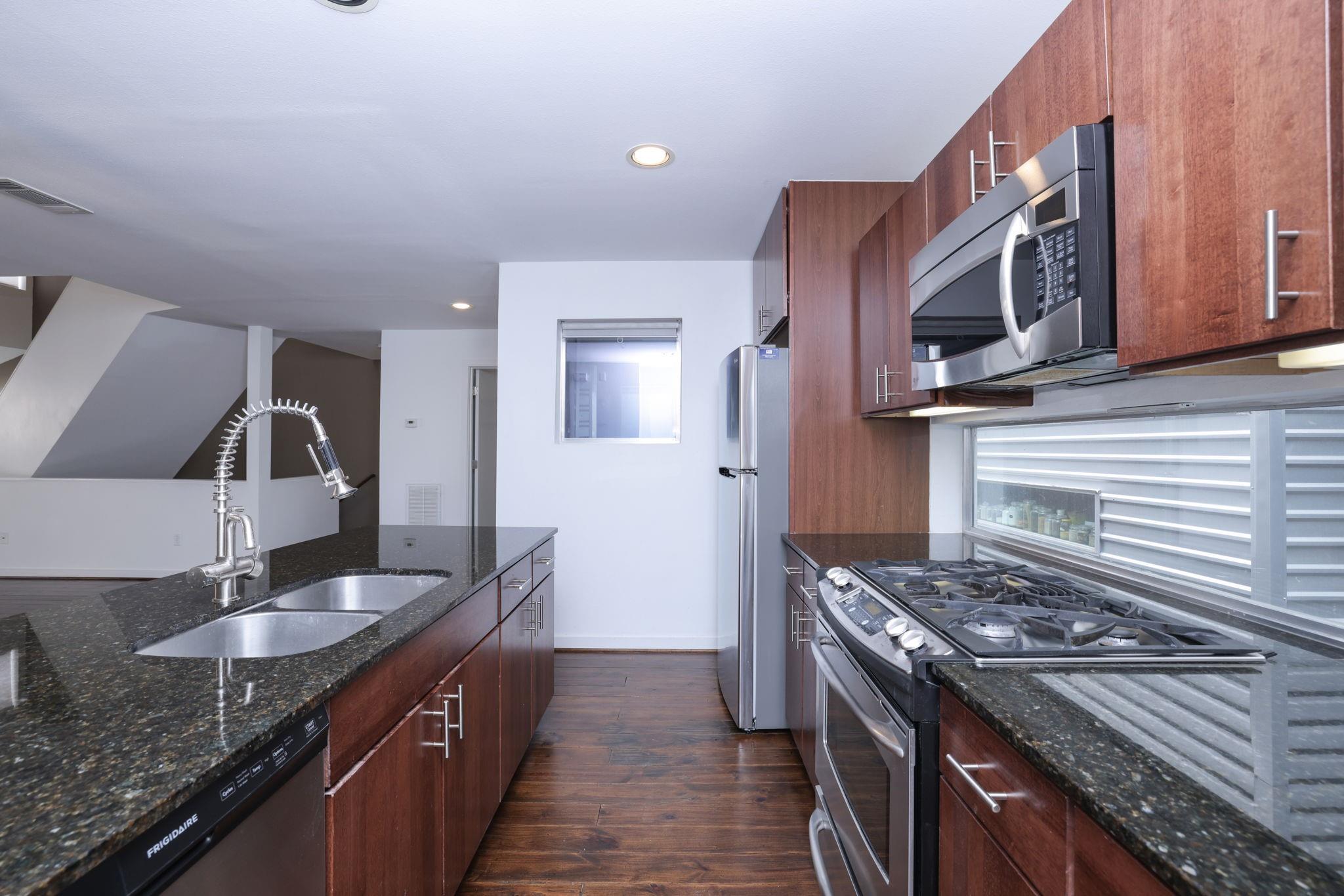 Luxury loft style contemporary townhome in the heart of the city. The first floor has an attached 2 car garage, step inside to stained concrete floors, a walk out to the back porch, laundry room off the hall with full size washer and dryer, and a large bedroom with shelving and ensuite bath with shower only. Up to the second level you will see an enormous great room with lofty ceilings, and solid wood floors. Along with an open kitchen with gas appliances and granite counters, a built in study and balcony. Head upstairs once again to the spacious loft area, perfect for exercise equipment or hang out space, then into the primary suite with large walk in closet, and ensuite bath with dual sinks and wet room with double shower heads and separate tub all behind the glass.