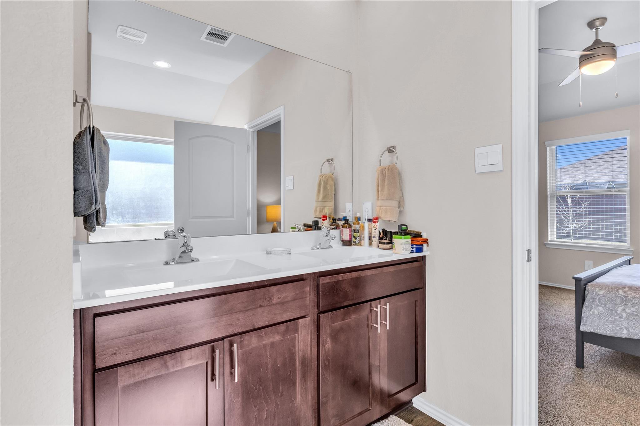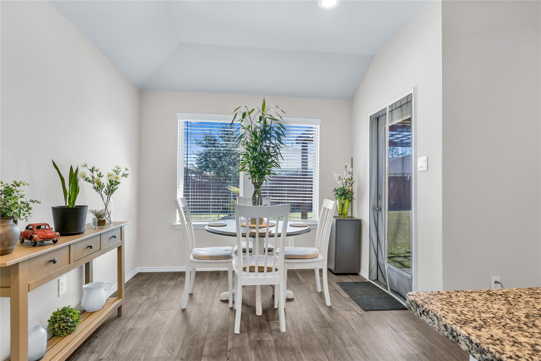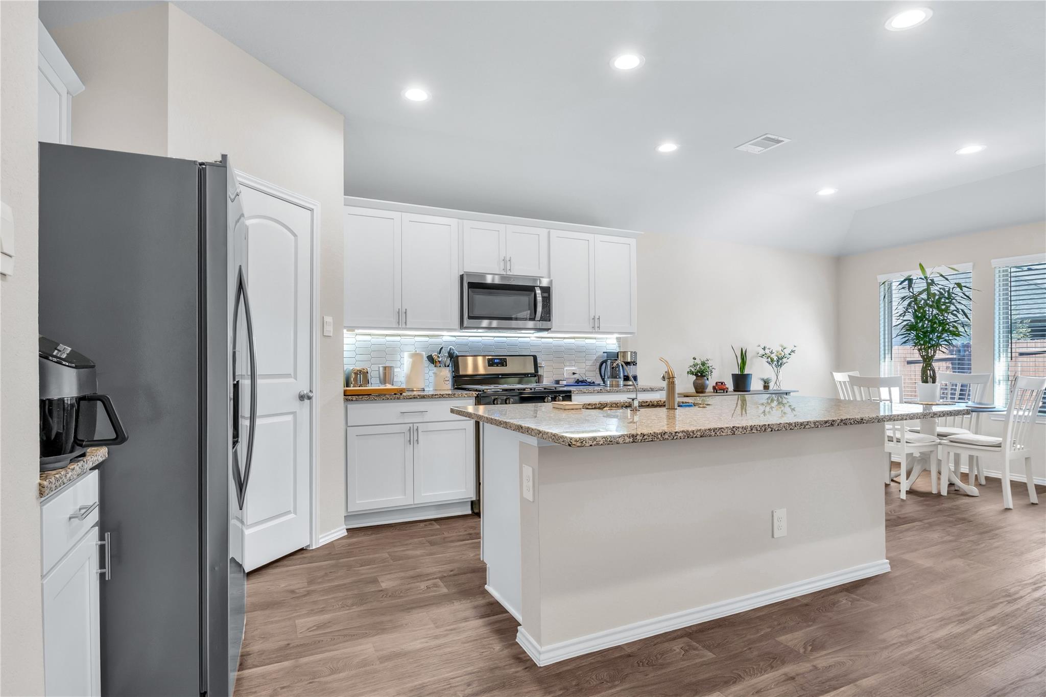 InteriorFloors:Vinyl PlankCountertop:QuartzBathroom Description:Primary Bath: Double Sinks,Primary Bath: Separate Shower,Primary Bath: Soaking Tub,Secondary Bath(s): Tub/Shower ComboBedroom Desc:En-Suite Bath,Split Plan,Walk-In ClosetKitchen Desc:Island w/o Cooktop,Kitchen open to Family Room,Pantry,Under Cabinet LightingRoom Description:1 Living Area,Kitchen/Dining Combo,Utility Room in HouseHeating:Central GasCooling:Central ElectricConnections:Electric Dryer Connections,Washer ConnectionsDishwasher:YesDisposal:YesMicrowave:YesRange:Gas RangeOven:Gas OvenEnergy Feature:Attic Vents,Ceiling Fans,Digital Program Thermostat,Energy Star Appliances,High-Efficiency HVAC,Tankless/On-Demand H2O HeaterInterior:Fire/Smoke Alarm,Refrigerator Included,Window Coverings
