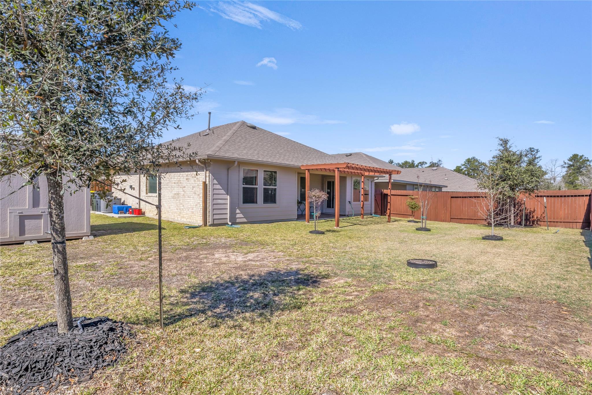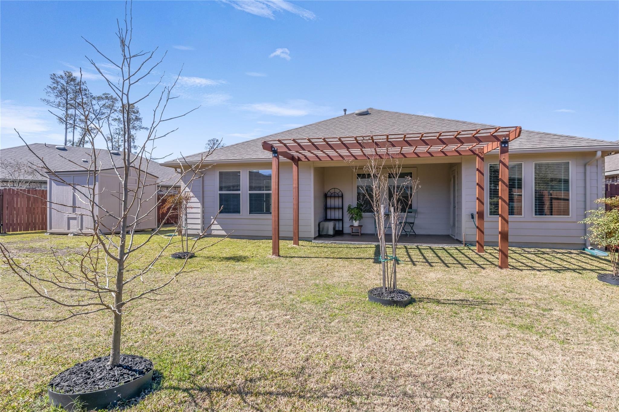 Do Not Miss This Opportunity to Own A Beautifully Maintained Home with All The Extras. This 2021 Built 3 Bed, 2 Bath Home Feels Brand New. It is Wired With Smart Home Features as Well as 6 Cameras Plus The Safe Haven Doorbell Camera Which will Convey. Tiled Entry Way and Tiled/Covered Back Patio with Pergola are Just a Few of the Additions. Kitchen Backsplash and Cabinet Handles have been Updated, and Under Cabinet Lights Were Added. Ceiling Fans Are Updated, Shelving and Extra Storage have Been added to the Laundry Room, Closets and Bathrooms Throughout the Home. Kitchen Has A Granite Island, and Bathrooms Are Quartz Counters, with Double Sinks in the Primary Bath as well as Soaking Tub and Separate Shower. Water Heater is Tankless, and Garage has been Updated with Epoxy Floor and Added Baseboards. Stone & Brick Front with Beautiful Landscaping, Storage Building, and Gutters In Place Make this Home Hard to Beat. Adjacent to Carl Barton Park, and Trails. Schedule Your Tour Today!
