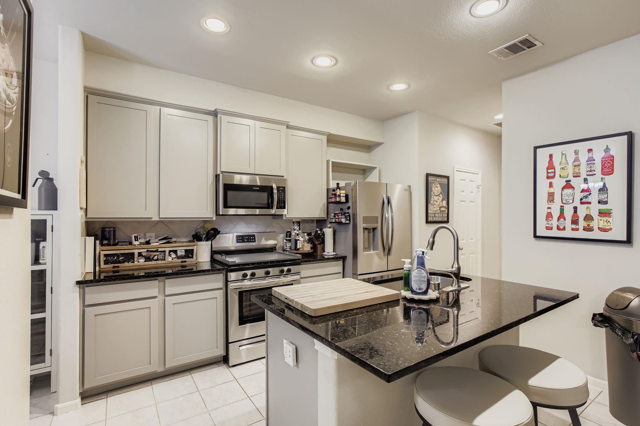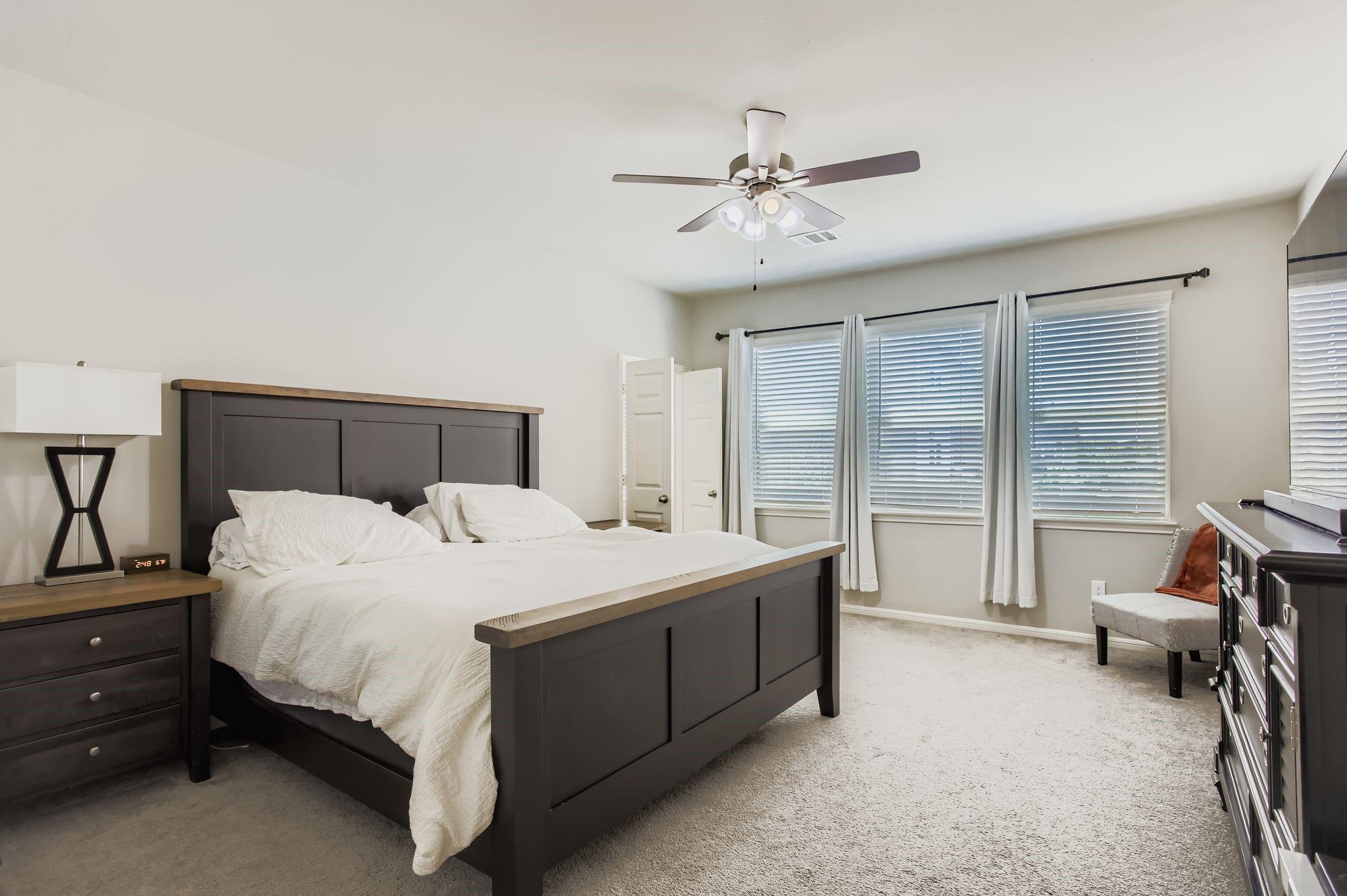 InteriorFloors:Carpet,TileRoom Description:1 Living Area,Living Area - 1st FloorBathroom Description:Primary Bath: Double Sinks,Primary Bath: Separate Shower,Primary Bath: Soaking Tub,Secondary Bath(s): Tub/Shower ComboKitchen Desc:Breakfast Bar,Island w/o CooktopBedroom Desc:3 Bedrooms Up,All Bedrooms Up,En-Suite Bath,Primary Bed - 2nd Floor,Walk-In ClosetHeating:Central ElectricCooling:Central ElectricWasher/Dryer Conn:YesOven:Gas OvenRange:Gas RangeMicrowave:YesDishwasher:YesEnergy Feature:Ceiling FansInterior:Window Coverings
