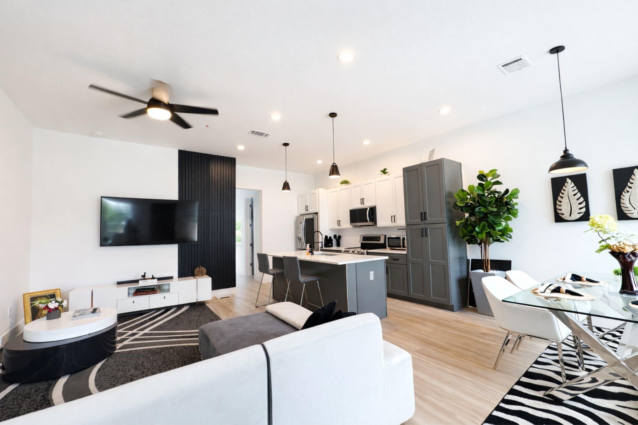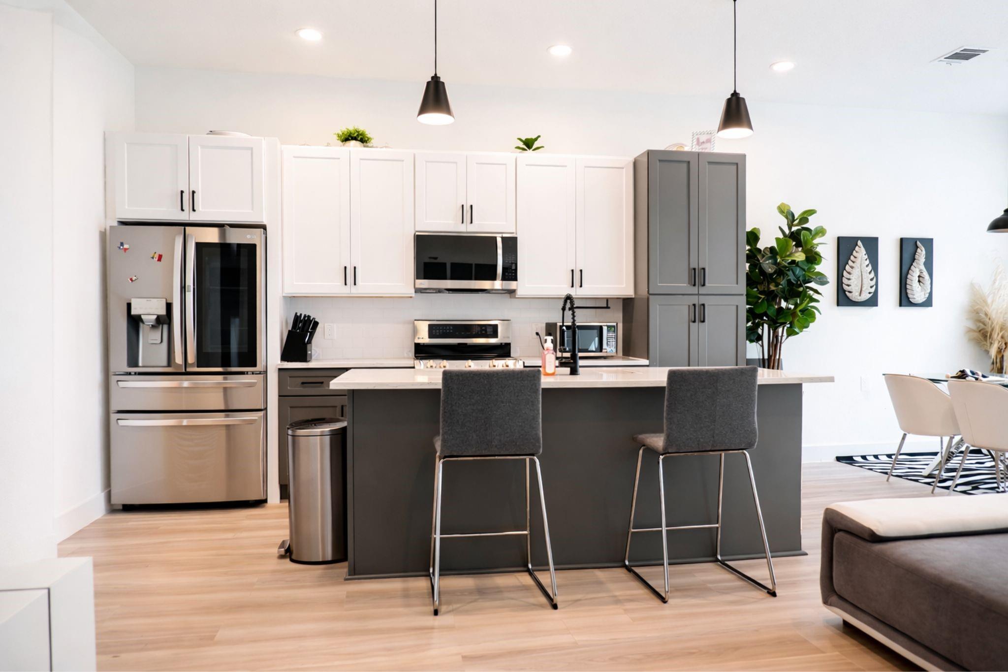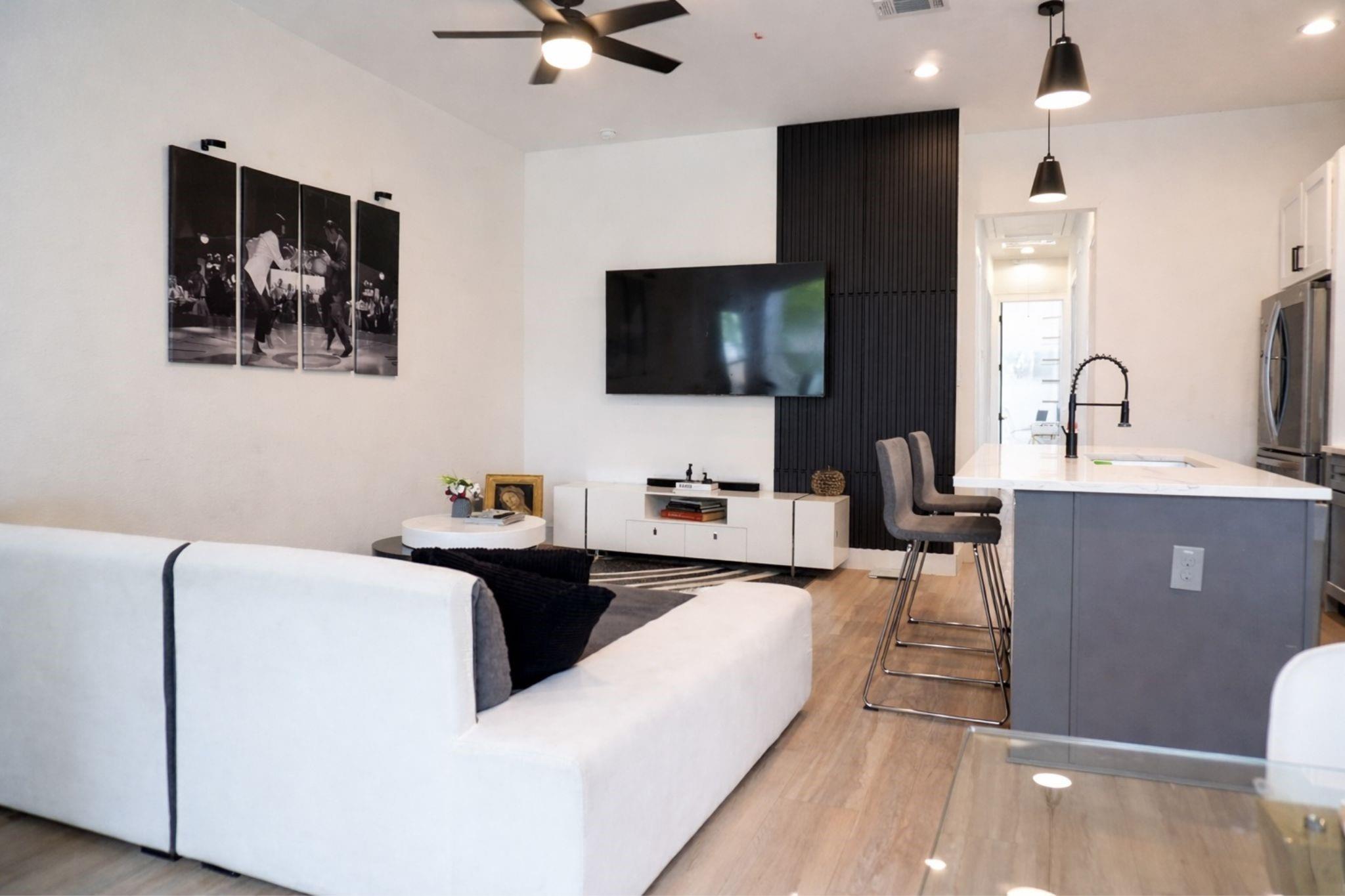 Modern duplex on oversized 7,775 SF lot with large backyard in a prime Houston location. Each unit offers 3 spacious bedrooms, 2 full bathrooms, open-concept layout with abundant natural light, 10’ ceilings, and 8 ft doors throughout. The stylish kitchen features an oversized island with built-in sink, stainless steel appliances, and 42” cabinets with ample storage. The owner’s retreat includes a spa-like en suite bath, walk-in closet, and elegant French doors. Luxury vinyl plank flooring throughout—no carpet. Bathrooms upgraded with sleek glass sliding doors. Perfect for investors, short-term rental, or house hacking. Unit B is tenant-occupied, providing instant cash flow. Conveniently located near Downtown Houston, Texas Medical Center, NRG Stadium, Museum District, George R. Brown, University of Houston, and TSU.