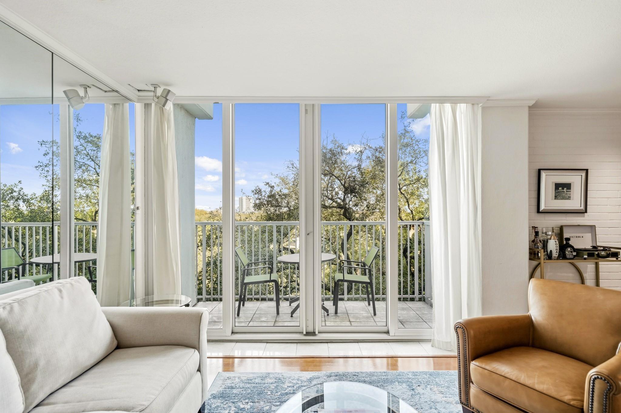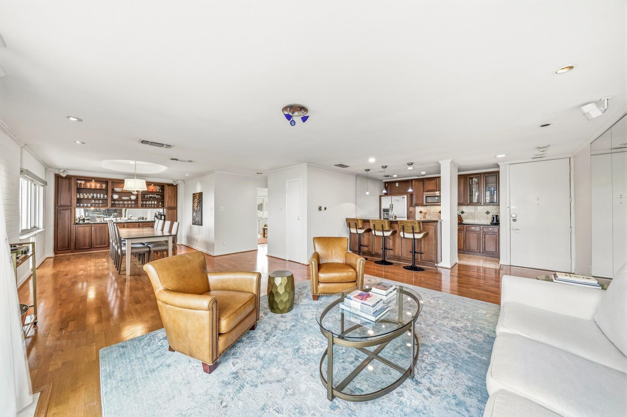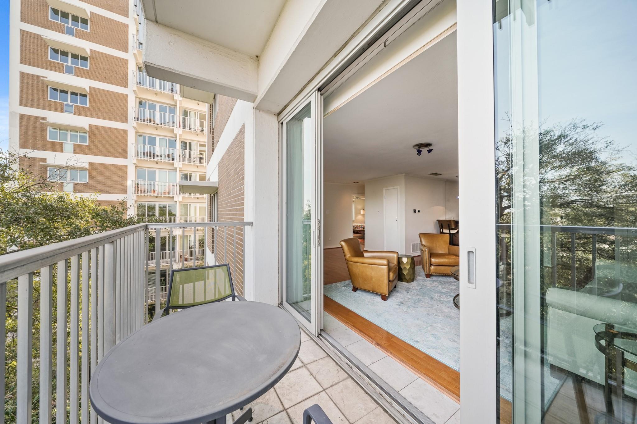 Centrally located in the heart of Montrose with quick access to freeways, Memorial Park, shopping and dining destinations sits The Parc V, a twin mid-century high-rise which boasts the perfect balance of luxury living and urban convenience. This impressive building rises above the skyline, offering breathtaking views of the cityscape and provides residents with a truly unparalleled living experience. The maintenance fee includes all utilities and fabulous amenities w/controlled access, fitness center, swimming pool, security patrol, gated onsite parking garage, party/conference rooms & building generator. This former two-bedroom unit was completely remodeled to an open spacious floor plan with formal dining & living rooms, a beautiful built-in buffet w/storage, covered balcony, bedroom and two full baths. Design details such as sleek hardwoods, recessed lighting, breakfast bar with pendant lighting, granite counters and modern S/S appliances provide the perfect place to call home!