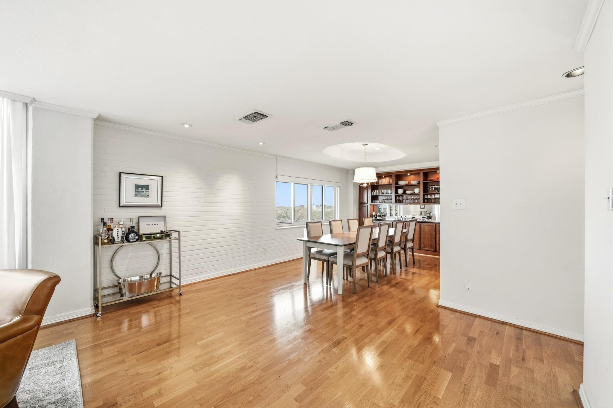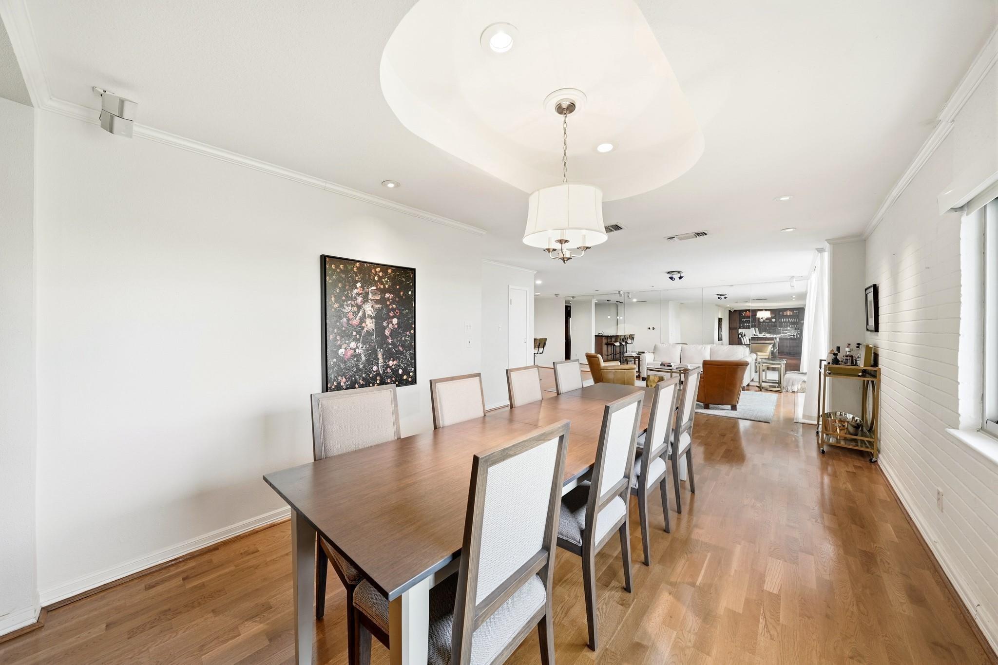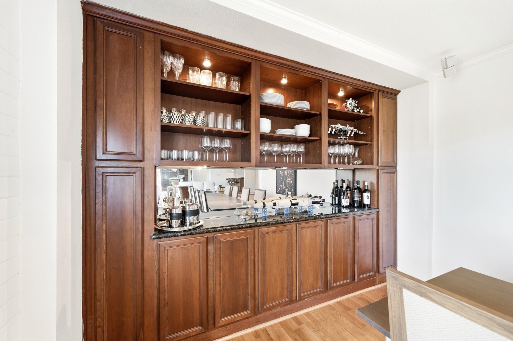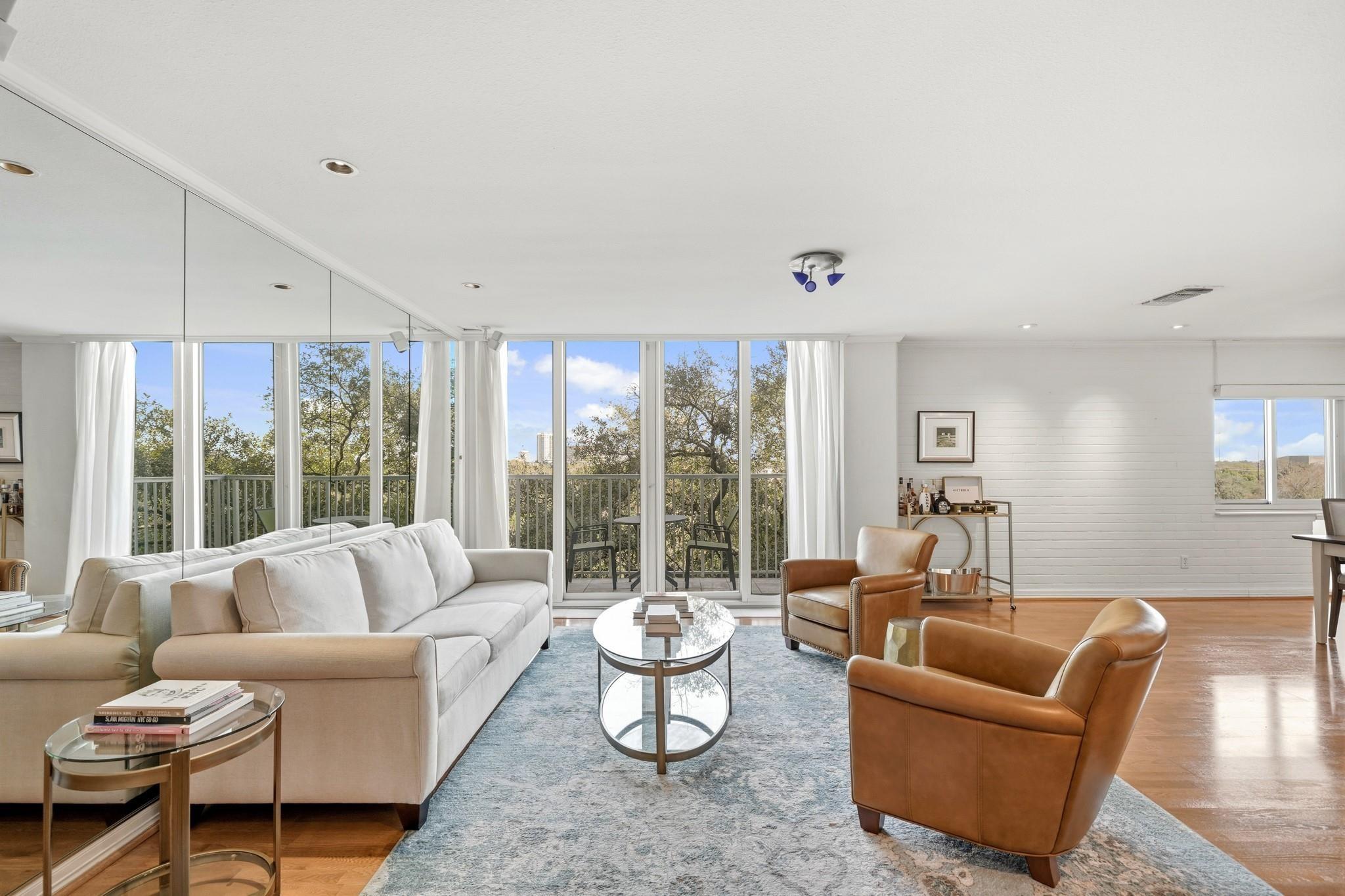 Centrally located in the heart of Montrose with quick access to freeways, Memorial Park, shopping and dining destinations sits The Parc V, a twin mid-century high-rise which boasts the perfect balance of luxury living and urban convenience. This impressive building rises above the skyline, offering breathtaking views of the cityscape and provides residents with a truly unparalleled living experience. The maintenance fee includes all utilities and fabulous amenities w/controlled access, fitness center, swimming pool, security patrol, gated onsite parking garage, party/conference rooms & building generator. This former two-bedroom unit was completely remodeled to an open spacious floor plan with formal dining & living rooms, a beautiful built-in buffet w/storage, covered balcony, bedroom and two full baths. Design details such as sleek hardwoods, recessed lighting, breakfast bar with pendant lighting, granite counters and modern S/S appliances provide the perfect place to call home!