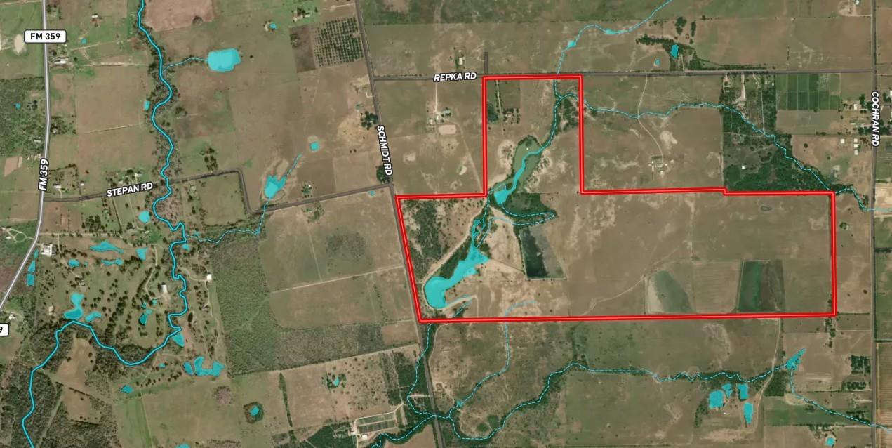 392.5± Acres | Waller County, TX Prime 392.5± acre unrestricted tract in the growth path of Waller County. Approximately 2,066 feet of frontage on Schmidt Rd. and 1,600 feet on Repka Rd. provide strong access and layout flexibility. Predominantly cleared pastureland with scattered trees, the property is highly usable and well-suited for large-scale planning. Two major water features — an approximately 30-acre pond and an additional 20-acre pond — add visual appeal, recreation, and potential detention benefits. Minimal floodplain impact supports efficient development. Multiple access points allow for phased projects. Conveniently located near US 290 with access to SH 6, FM 1488, and FM 362, positioned between Houston and Austin, approximately 45–50 miles from Downtown Houston. Ideal for master-planned residential, business park, mixed-use, ranching, or long-term investment. Located in Waller Independent School District.