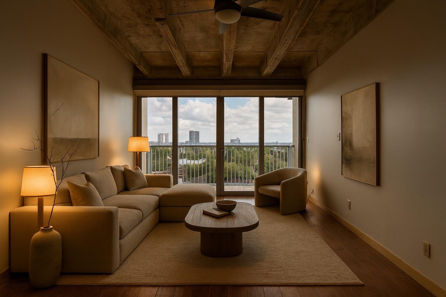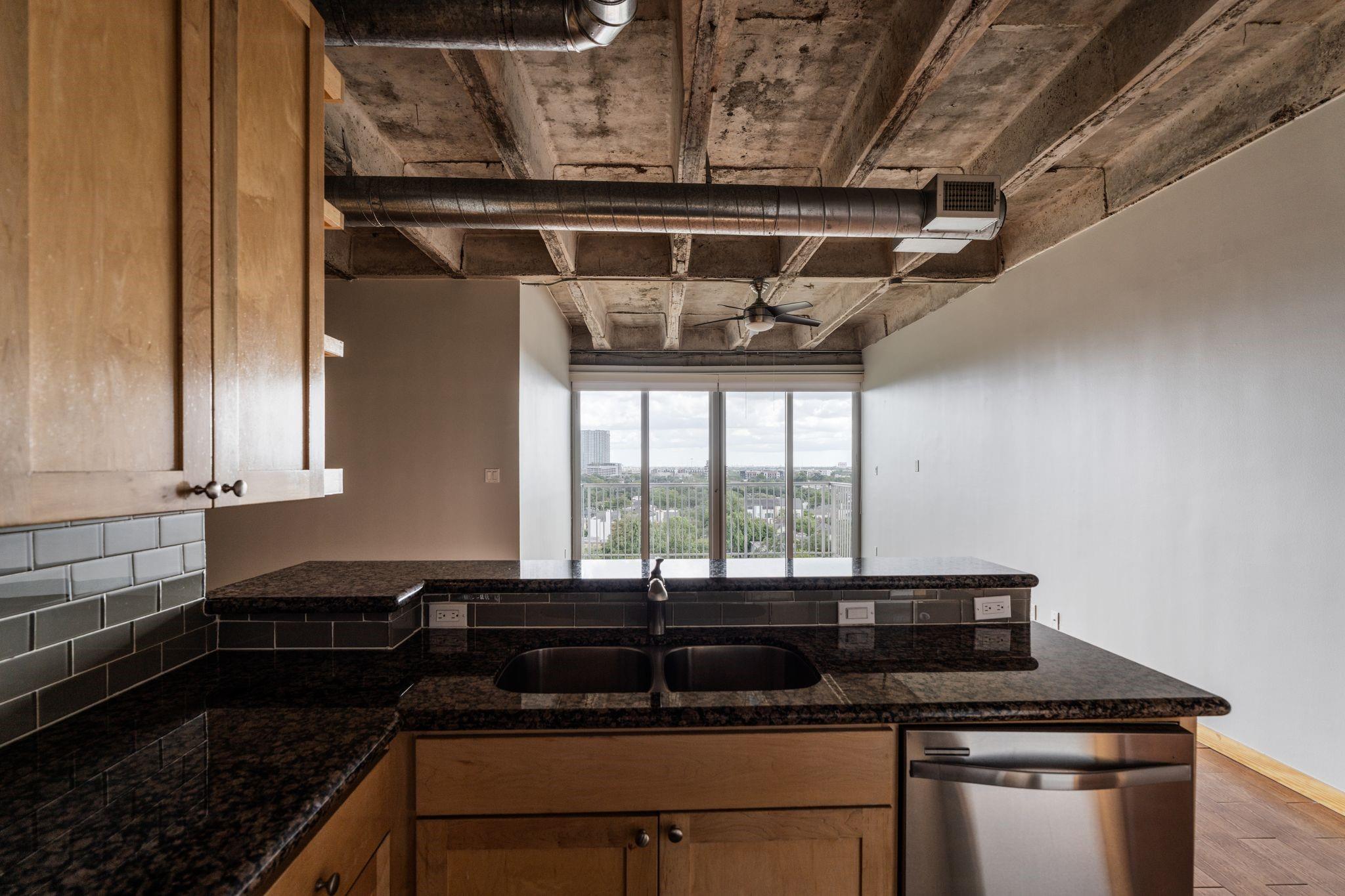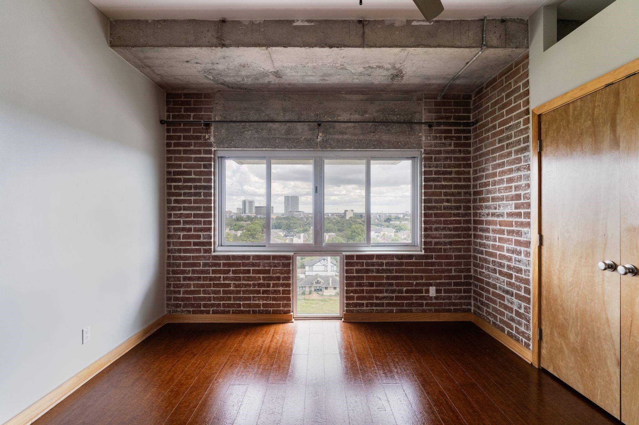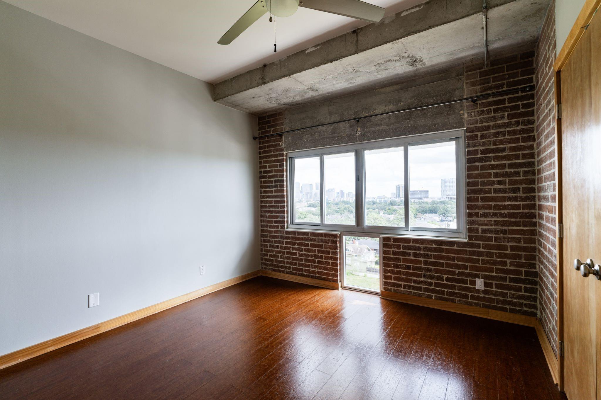 Set on the 9th floor of Parc IV, this 1 bed, 1 bath condo offers expansive downtown views and eastern exposure from both the living room and bedroom. A private balcony extends off the living area, and the unit features loft style ceilings that enhance the sense of space. The open kitchen overlooks the living and dining areas and includes a bar height counter for seating. Built ins add versatility for a home office, bar, or display space. The bedroom features a wall length closet, and the bathroom has a clean, updated look. The unit has been thoughtfully improved and is move in ready. HOA dues include all utilities except Wi Fi. Up to two parking spaces are available, dependent on the number of driver occupants. A new backup generator is slated to be operational soon, adding extra peace of mind. Residents enjoy a pool, gym, lounge, secure entry, and a central Montrose location just minutes from downtown, the Museum District, and the Medical Center.