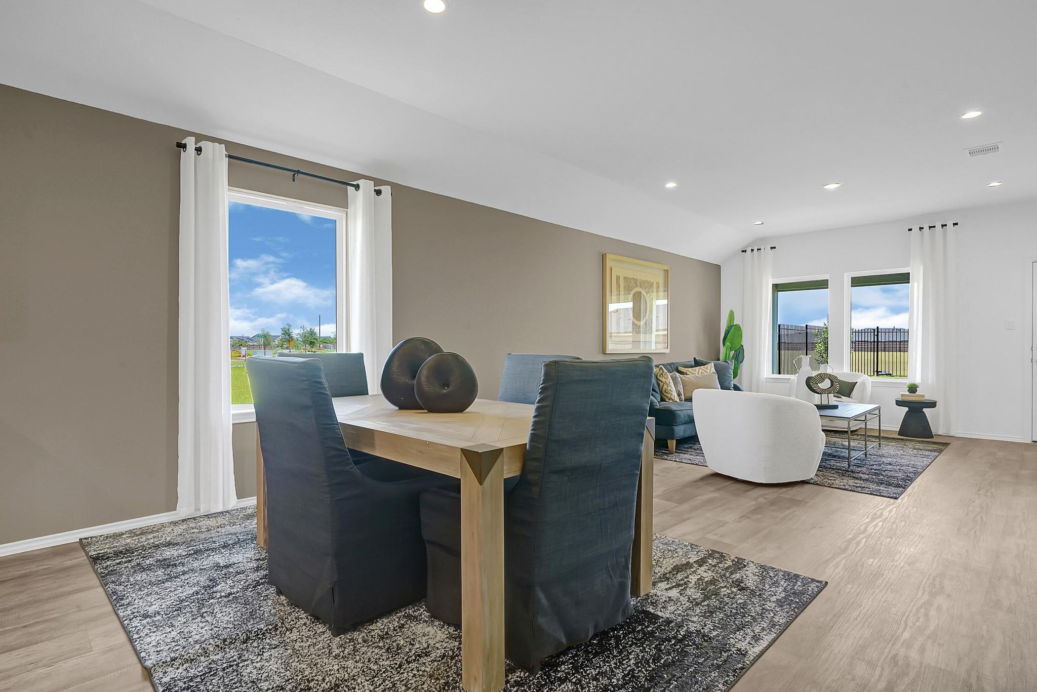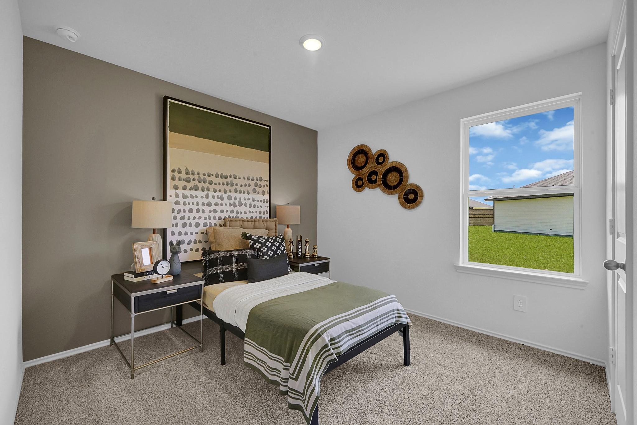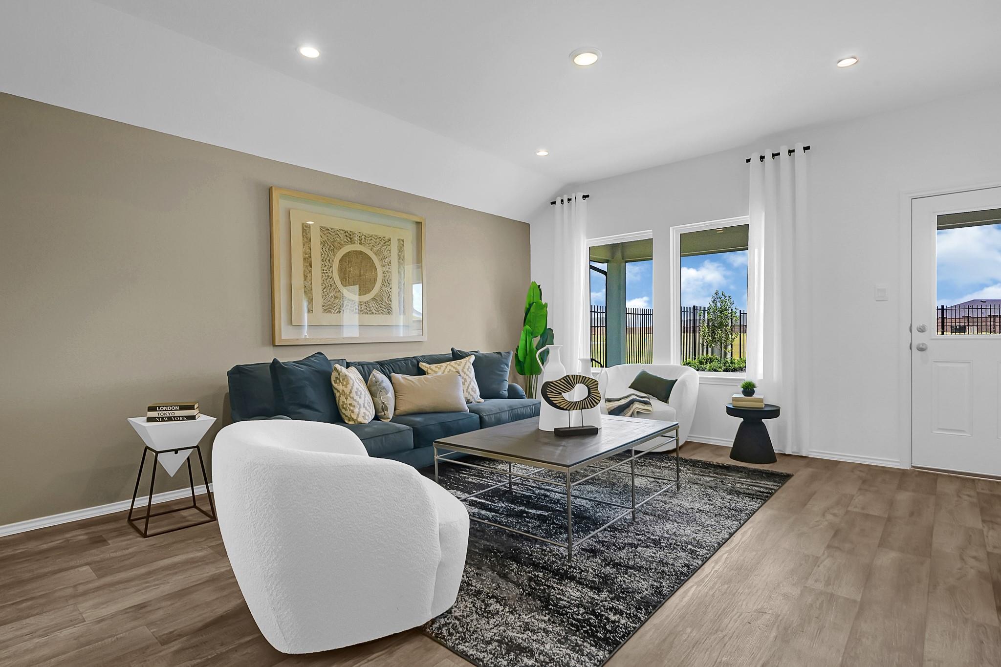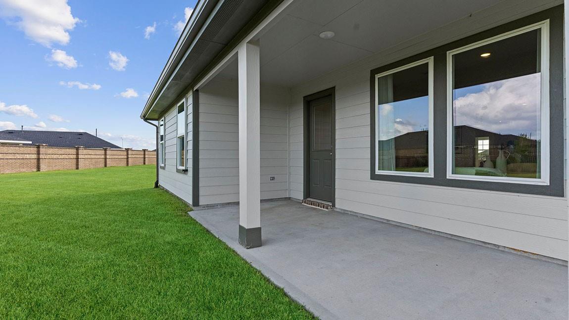 MOVE IN READY. Discover The Gaven at Tamarron, offering 1,778 sq. ft. in the vibrant city of Fulshear. Featuring 4 bedrooms and 2 full bathrooms, this layout combines modern comfort with a timeless style. The kitchen boasts granite countertops, stainless steel appliances, and an oversized island that seamlessly connects to the dining and family rooms. Expansive windows fill the main living areas with natural light and offer a picturesque view of the covered back patio and fenced backyard. The primary suite serves as a luxurious retreat with a large walk-in closet, dual sinks, and a walk-in shower (optional separate tub and shower). Each secondary bedroom features plush carpeting and spacious closet, ensuring comfort for family and guests. Enjoy Tamarron’s resort-style pool, splash pad, fitness center, playgrounds, lakes, trails & sports fields. Close to shopping, dining, I-10, Grand Pkwy & Westpark Tollway. Zoned to top-rated LCISD schools.