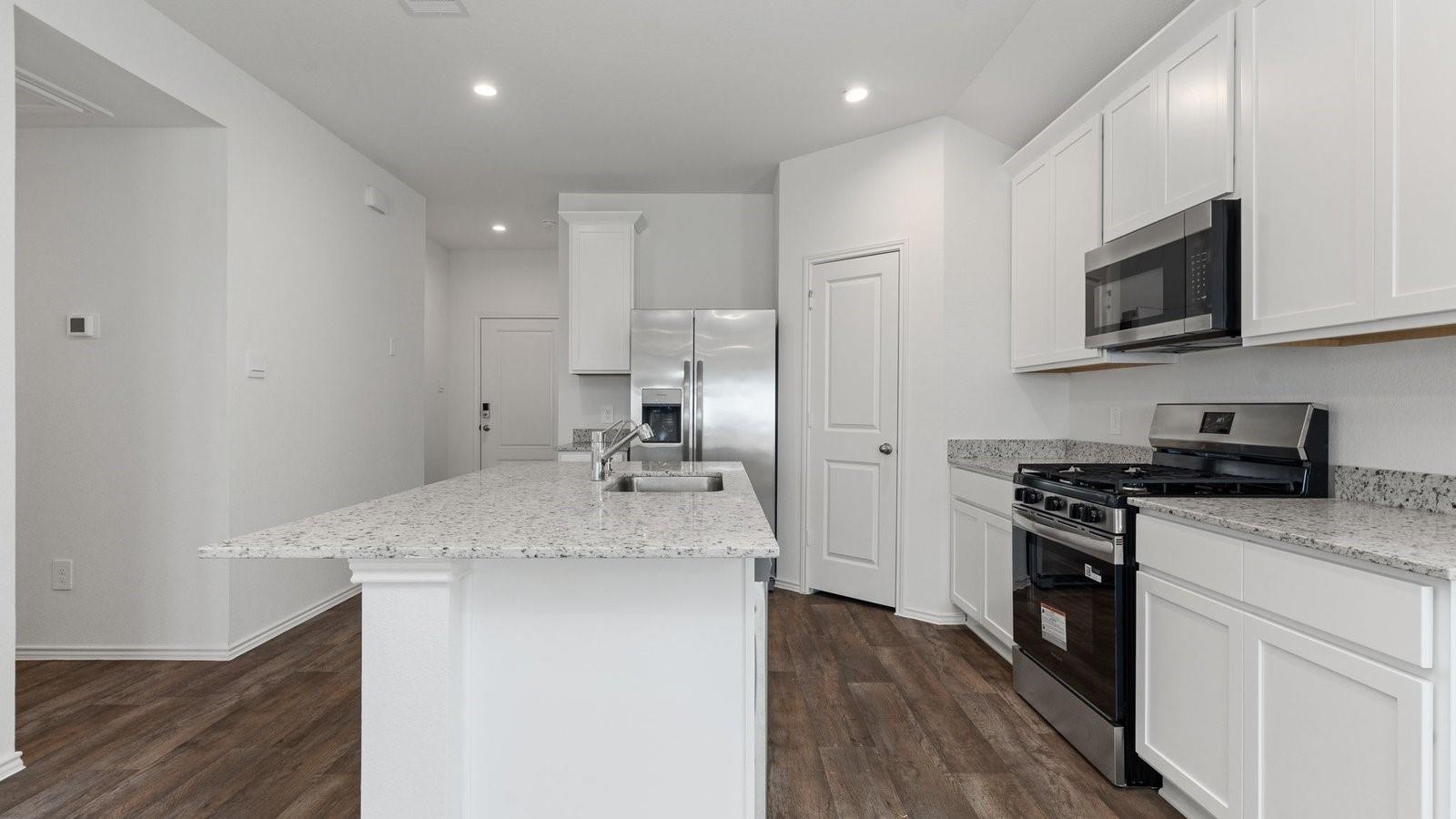 ESTIMATED COMPLETION DATE MARCH 2026. Welcome to the Dalton floorplan by D.R. Horton! This one-story home offers 1,544 sq. ft. of thoughtfully space, featuring 4 bedrooms and 2 full bathrooms. As you enter, you’ll pass the guest bedroom before the home opens into an inviting open-concept living, dining, and kitchen. The kitchen boasts granite countertops, stainless steel appliances, and ample cabinetry, all complemented by large windows that fill the space with natural light. The primary suite includes a walk-in closet, standing shower and dual sinks. The 2 additional bedrooms are conveniently located off the main living area. Vinyl flooring flows throughout the home for a modern look. The exterior showcases a classic brick- elevation, adding timeless curb appeal. Enjoy Tamarron’s resort-style pools, splash pad, fitness centers, playgrounds, lakes, trails & sports fields. Close to shopping, dining, I-10, Grand Pkwy & Westpark Tollway. Zoned to top-rated LCISD schools.
