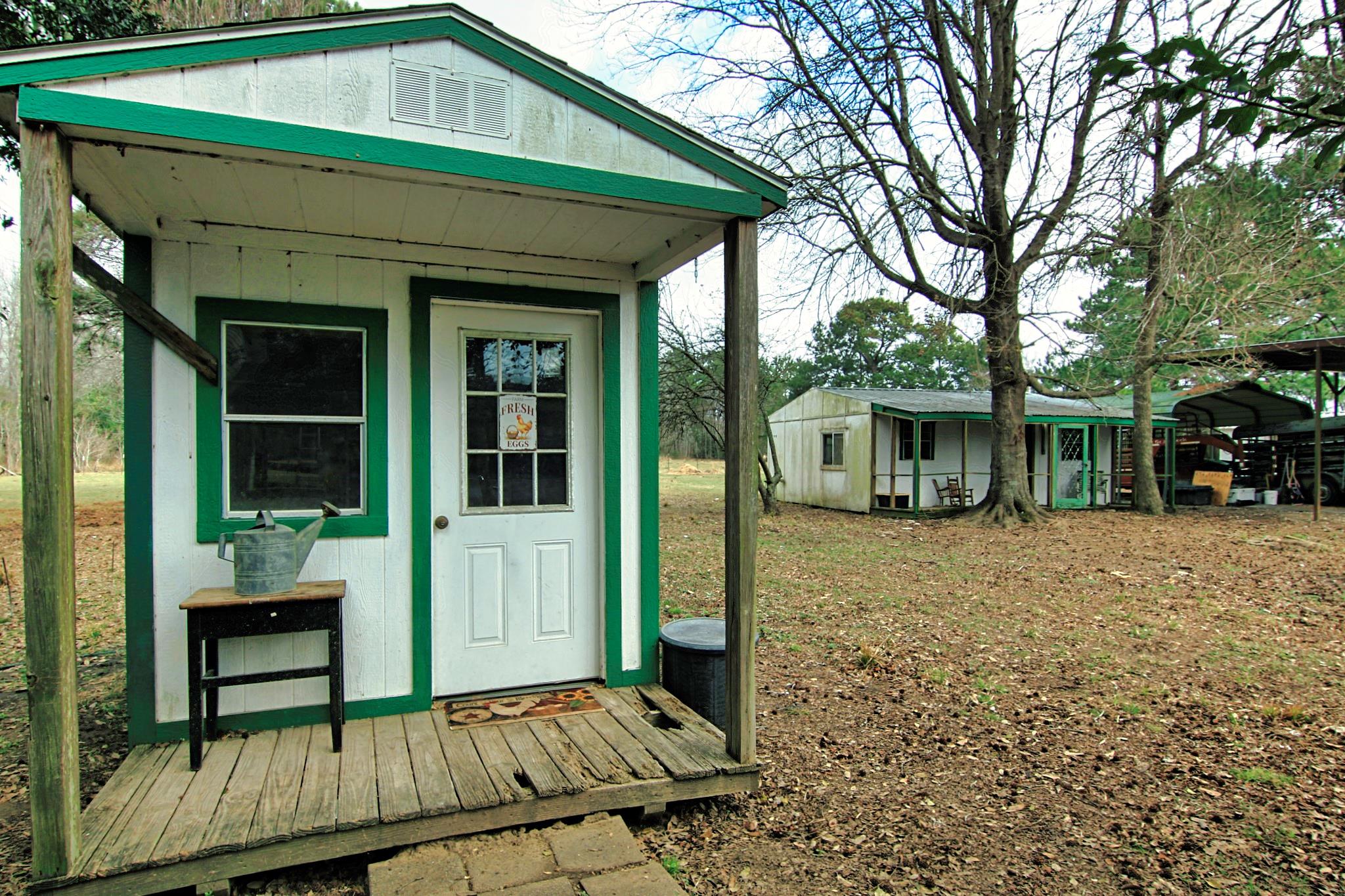 Meticulously maintained 16-acre estate tucked behind a private gated entrance and set well back from the road for exceptional privacy. Manicured grounds, mature trees, and sweeping pasture views create the perfect country setting with excellent opportunities for hunting and outdoor recreation. The home features a 3-bedroom, 2-bath split floor plan with an open-concept kitchen, dining, and living area ideal for entertaining. The private primary suite includes dual vanities and a spacious walk-in shower. The property is fully fenced and cross-fenced and includes a 46x24 enclosed barn with five stalls, a chicken coop, and a separate potential mother-in-law tiny home—ideal for guests, extended family, rental income, or a private office/studio and AG exemption available. Additional amenities include a patio, three covered carports, a potting shed, and ample storage. Perfect for a ranch, hobby farm, or private country retreat.