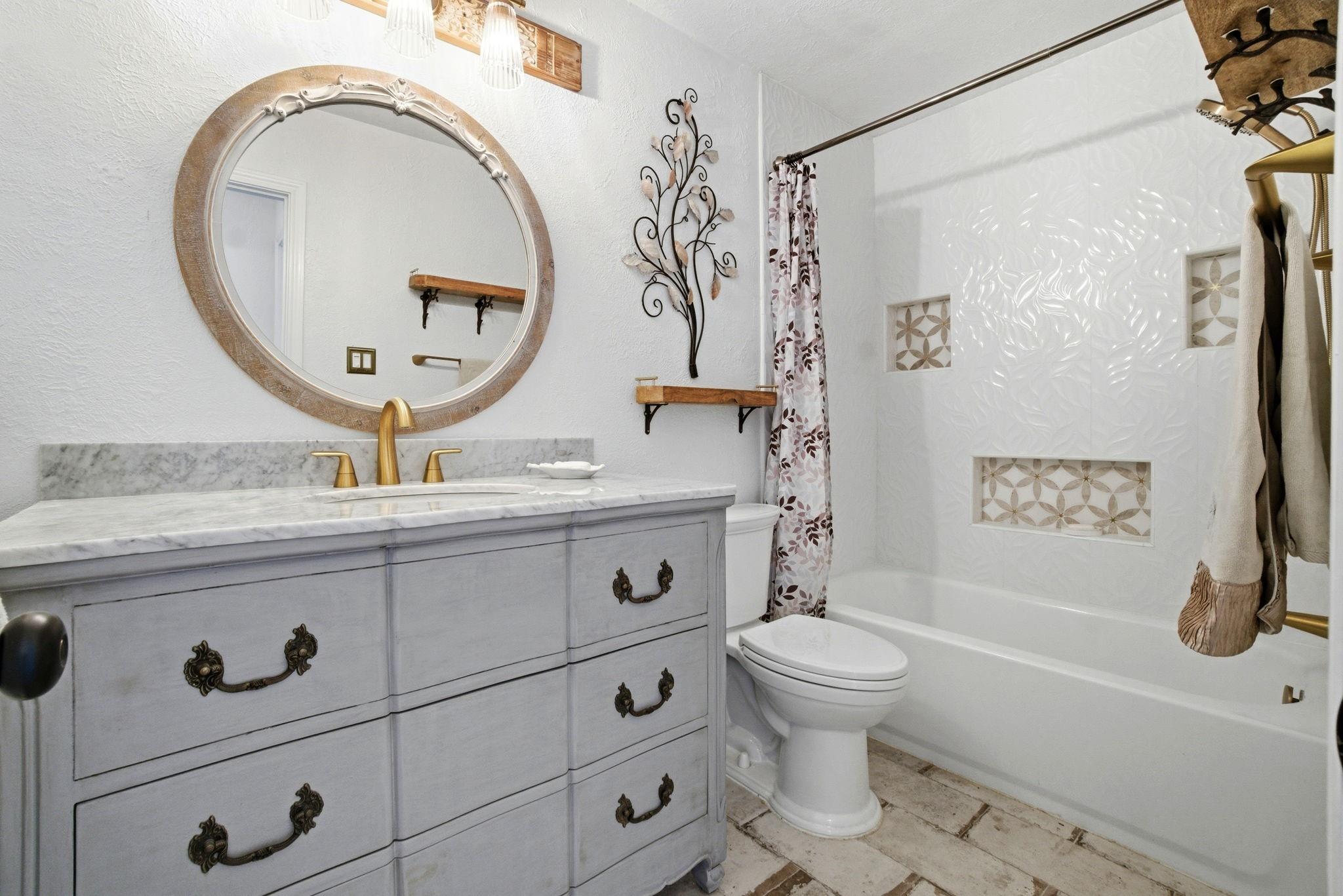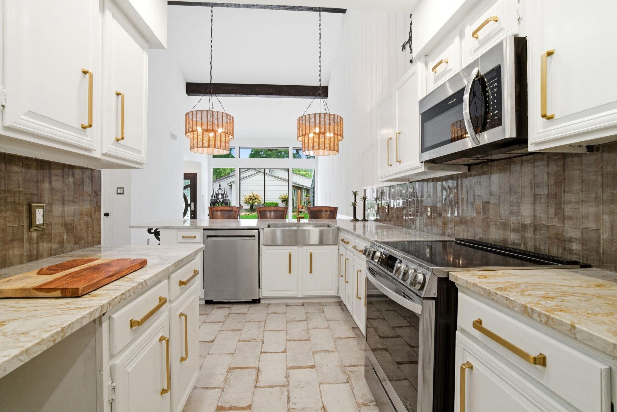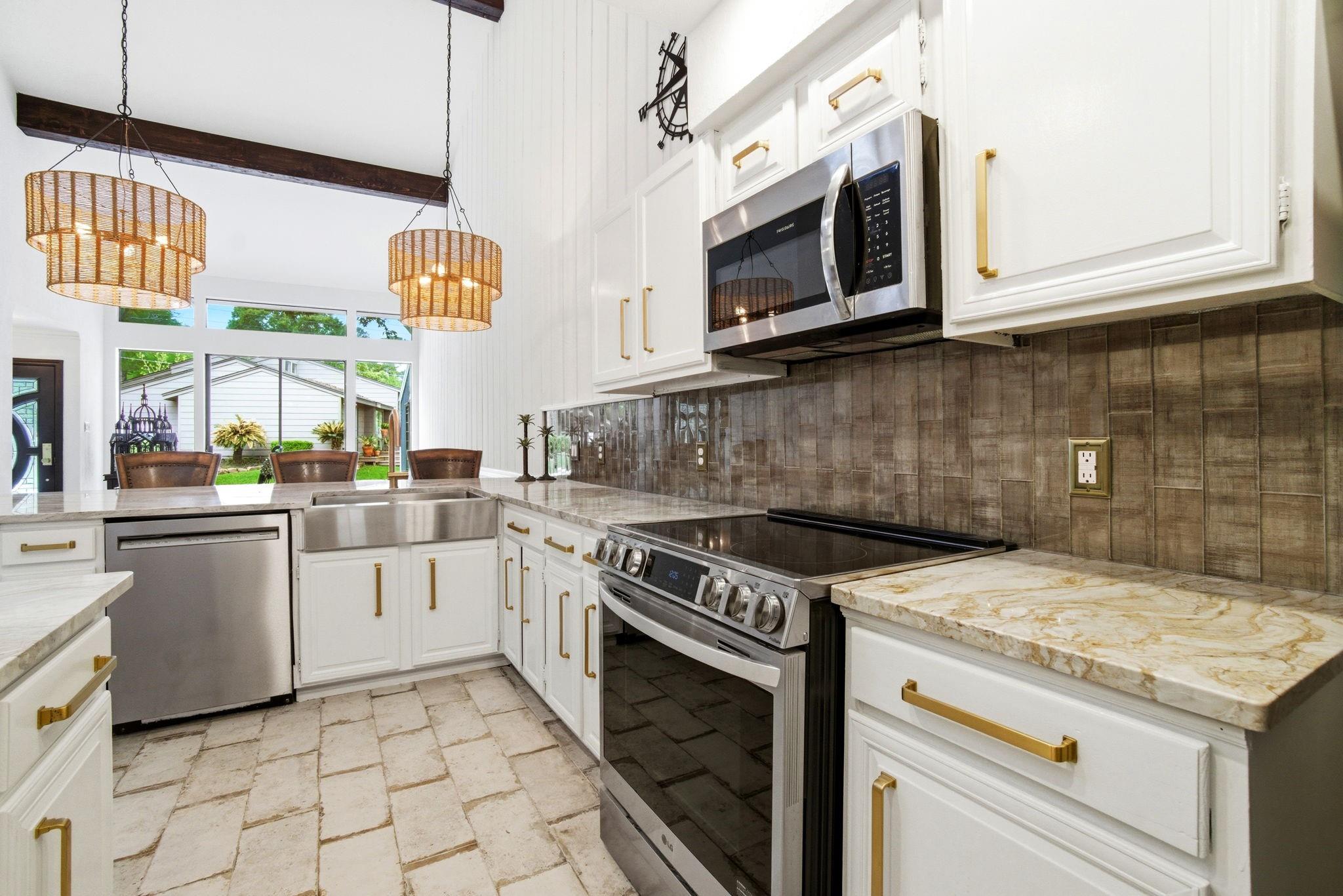 Charming single story home with 3 bedrooms and 2 full bathrooms. Large Family Room with HIGH ceilings and loaded with upgrades. Every inch of this home has been updated and/or replaced. A/C replaced in 2024. Rheem 4 Ton Unit. New roof in 2019. All new flooring, light fixtures, countertops and both bathrooms impeccably upgraded! New appliances throughout! Washer/Dryer & Refrigerator will convey with sale. Recent water heater. Upgraded carport. ALL ELECTRICAL UPGRADED AND REPLACED THROUGHOUT. The best of all, you have three (3) patio areas to entertain. Fenced for safety for pets and children. Welcome to the beloved Community of April Sound. 24/7 Manned Guard Gated Community where there are plenty of parks, pools, clubhouse, tennis & pickle ball courts, marina, gym, restaurant and daily activities for your pleasure. Mandatory Membership to Country Club. Golf Club Membership additional if desired. SEE ATTACHED UPGRADES/REMODEL SHEET ATTACHED FROM SELLER. DON'T MISS IT!