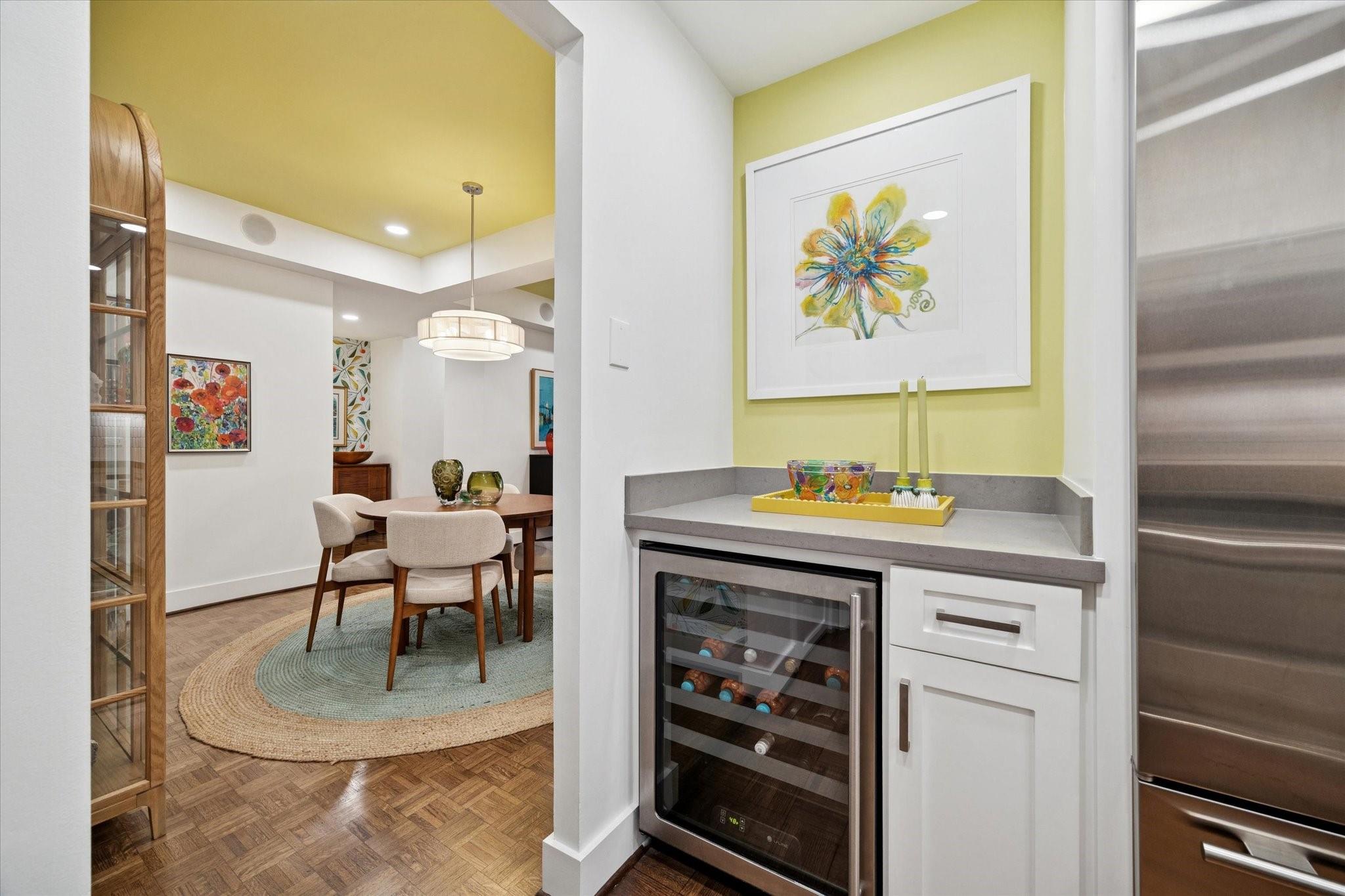 InteriorFloors:Stone,Tile,WoodCountertop:QuartzBathroom Description:Primary Bath: Soaking Tub,Primary Bath: Tub/Shower ComboBedroom Desc:Primary Bed - 1st Floor,Walk-In ClosetKitchen Desc:Pantry,Pots/Pans Drawers,Under Cabinet Lighting,Walk-in PantryRoom Description:1 Living Area,Entry,Living Area - 1st FloorHeating:Central ElectricCooling:Central ElectricWasher/Dryer Conn:NoDishwasher:YesDisposal:YesCompactor:NoMicrowave:YesRange:Electric Range,Freestanding RangeOven:Electric OvenIce Maker:NoAppliances:RefrigeratorEnergy Feature:Digital Program ThermostatInterior:Balcony,Central Laundry,Chilled Water System,Concrete Walls,Elevator,Fire/Smoke Alarm,Refrigerator Included,Window Coverings,Wine/Beverage Fridge,Wired for Sound