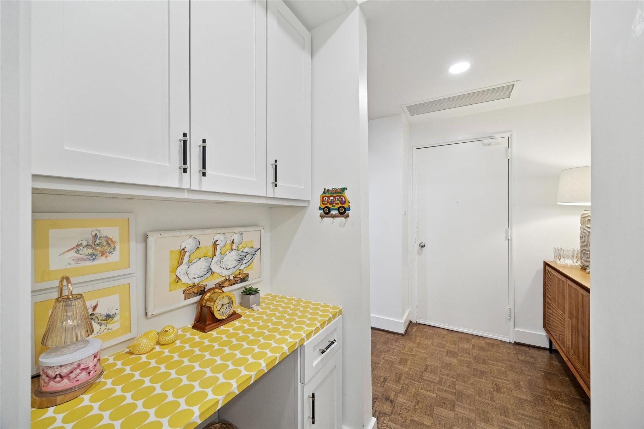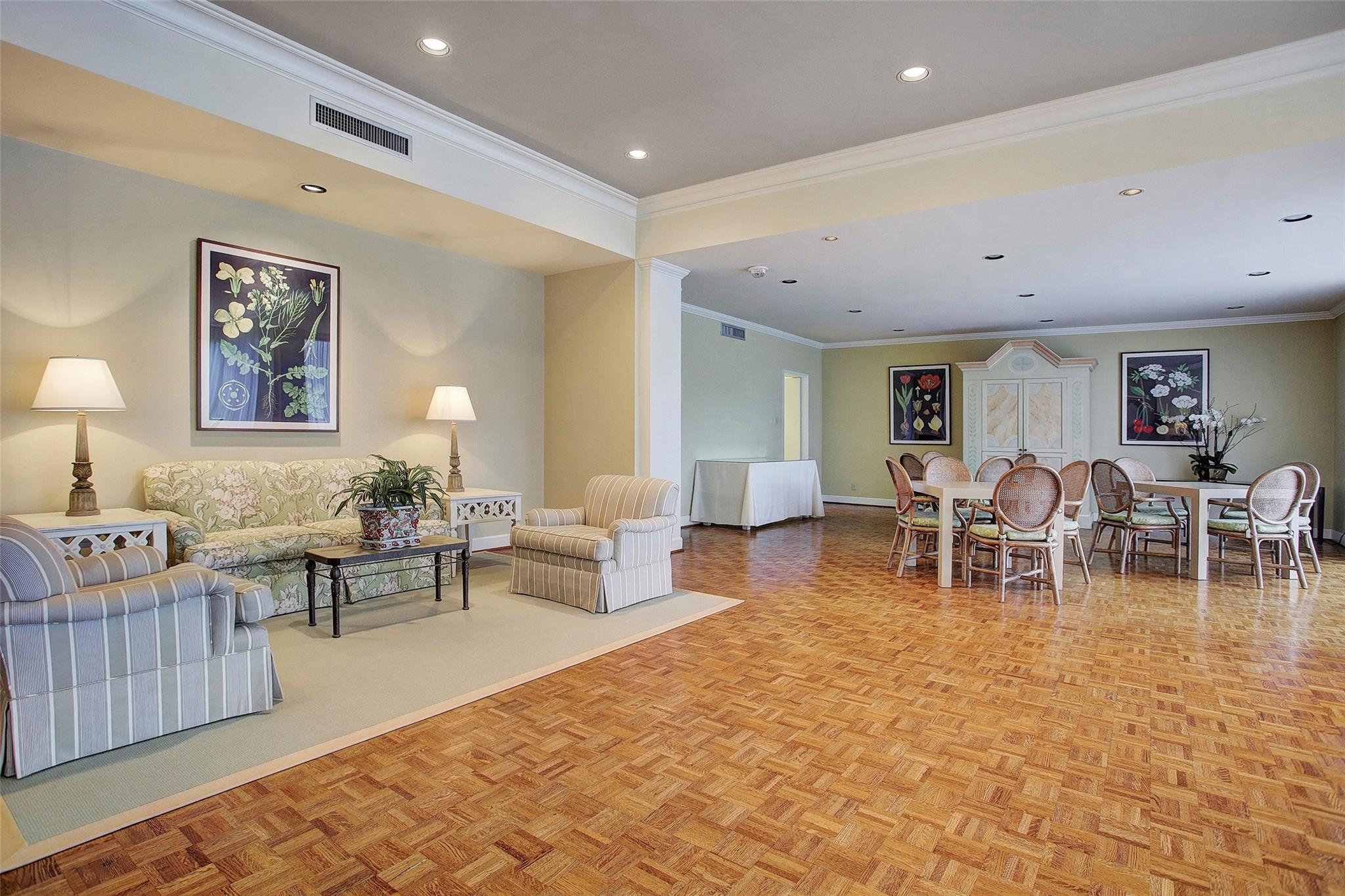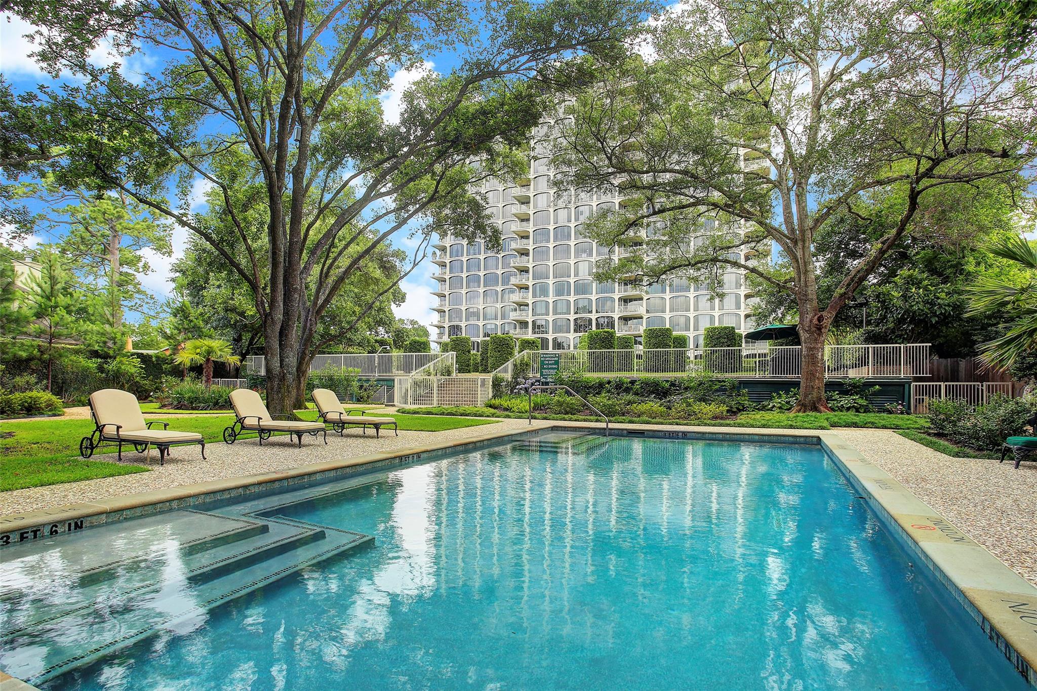 Inwood Manor is an elegant place to live! Beautifully updated One Bedroom and one Bath Features Open Floorplan, covered Terrace w/ views of Downtown & River Oaks-LIVING ROOM & DINING w/ surround sound- KITCHEN: Sub Zero refrigerator, Wine Cooler, Quartz counters, under counter lighting, Walk-in Pantry. BATH: Deep soaking tub& Shower, new tile surround, Vanity w/ quartz counter and tile flooring. PRIMARY BEDROOM: views of Downton & River Oaks & 3 closets. Desk area with cabinets in Hall. One closet next to Bath may be plumbed for washer/Dryer. All windows have automatic shades. ALL UTILITIES ARE INCLUDED IN MAINTENCE FEE! Inwood Manor sits on 2+ acres w/ beautiful gardens,2 dog walking areas ,Heated Pool, Party Room,3 Guest Suites Central Laundry ,2 workout areas, 24/7 Security, and a gracious Staff.