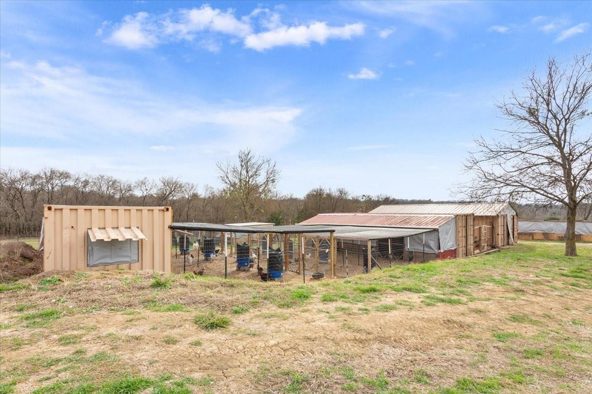 This charming 3-bedroom, 2-bath manufactured home with a carport sits atop a scenic hill overlooking approximately 13 acres of improved land. Fully fenced and cross-fenced for livestock, the property is set up as a poultry farm and ideal for homesteaders wanting to live off the grid. It’s perfect for raising and selling poultry, maintaining a vegetable garden, and producing your own beef. A rainwater harvesting system with around 10 tanks supplies water for both the home and animals. The 40x60 metal workshop on a slab is a fantastic bonus, and the farm boasts 19 chicken coops housing roughly 500–800 chickens. Additional features include a hay and implement barn, a 16x24 food storage building, covered RV/trailer parking, and a tank pond, making this farm a truly complete package.