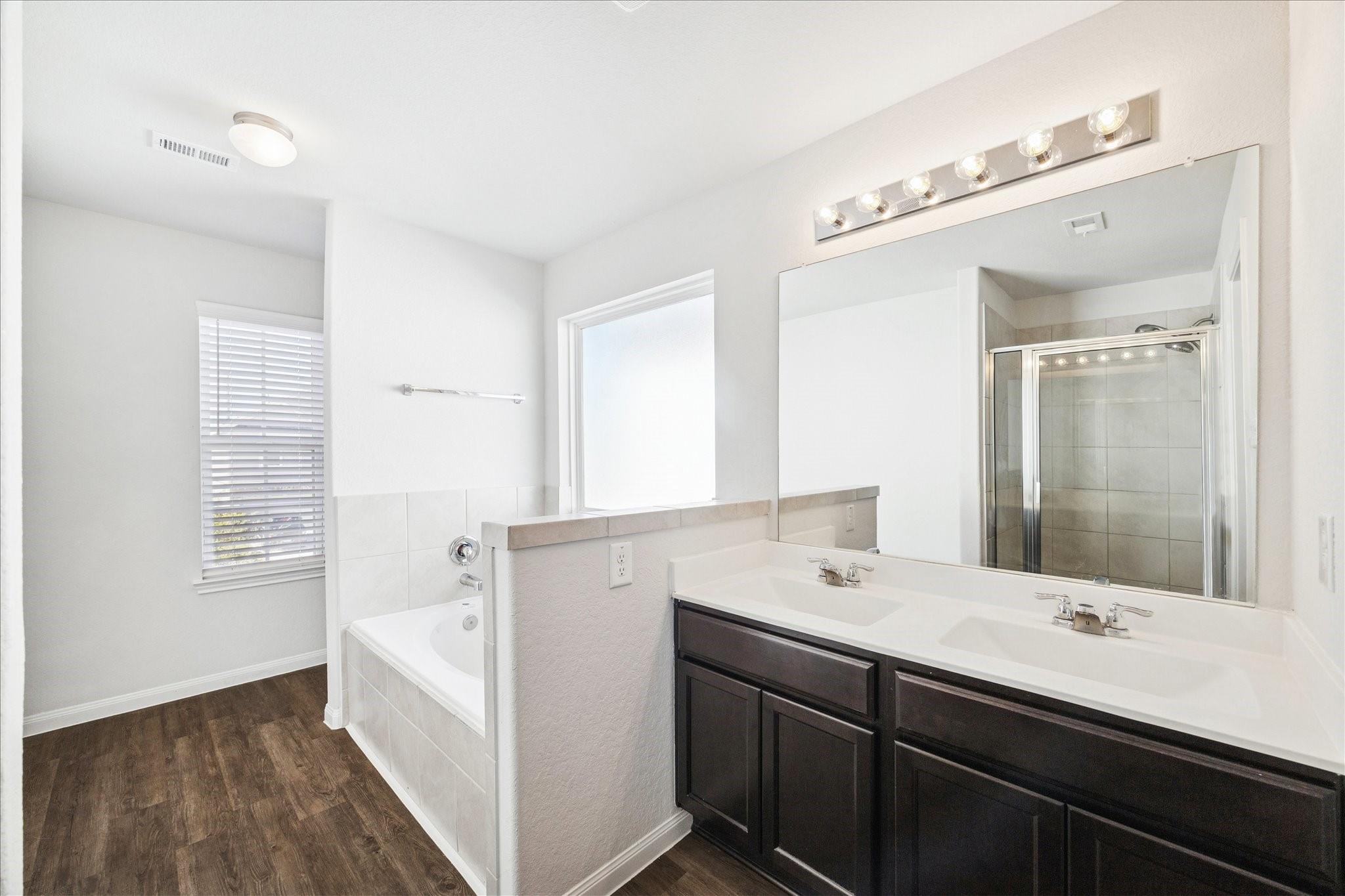 Impeccably maintained two-story home in the desirable Camillo Lakes community, offering 4 bedrooms, 2.5 baths, and a 2-car garage. This open-concept layout showcases elegant flooring, granite countertops, and a modern timeless and perfect neutral designer palette throughout. The gourmet kitchen flows seamlessly into the dining area and spacious living room, creating an inviting space for gatherings. The private primary suite serves as a true retreat, featuring a walk-in closet, dual vanities, a relaxing soaking tub, and a separate glass-enclosed shower. Three additional bedrooms provide versatility for family, guests, or a home office.Step outside to a large backyard ideal for entertaining, complete withpergola that conveys with the home. All appliances are included—stove, refrigerator, washer, and dryer—making this home truly move-in ready. Conveniently located in highly acclaimed Katy ISD, with easy access to shoppingand major thoroughfares. Priced to sell!