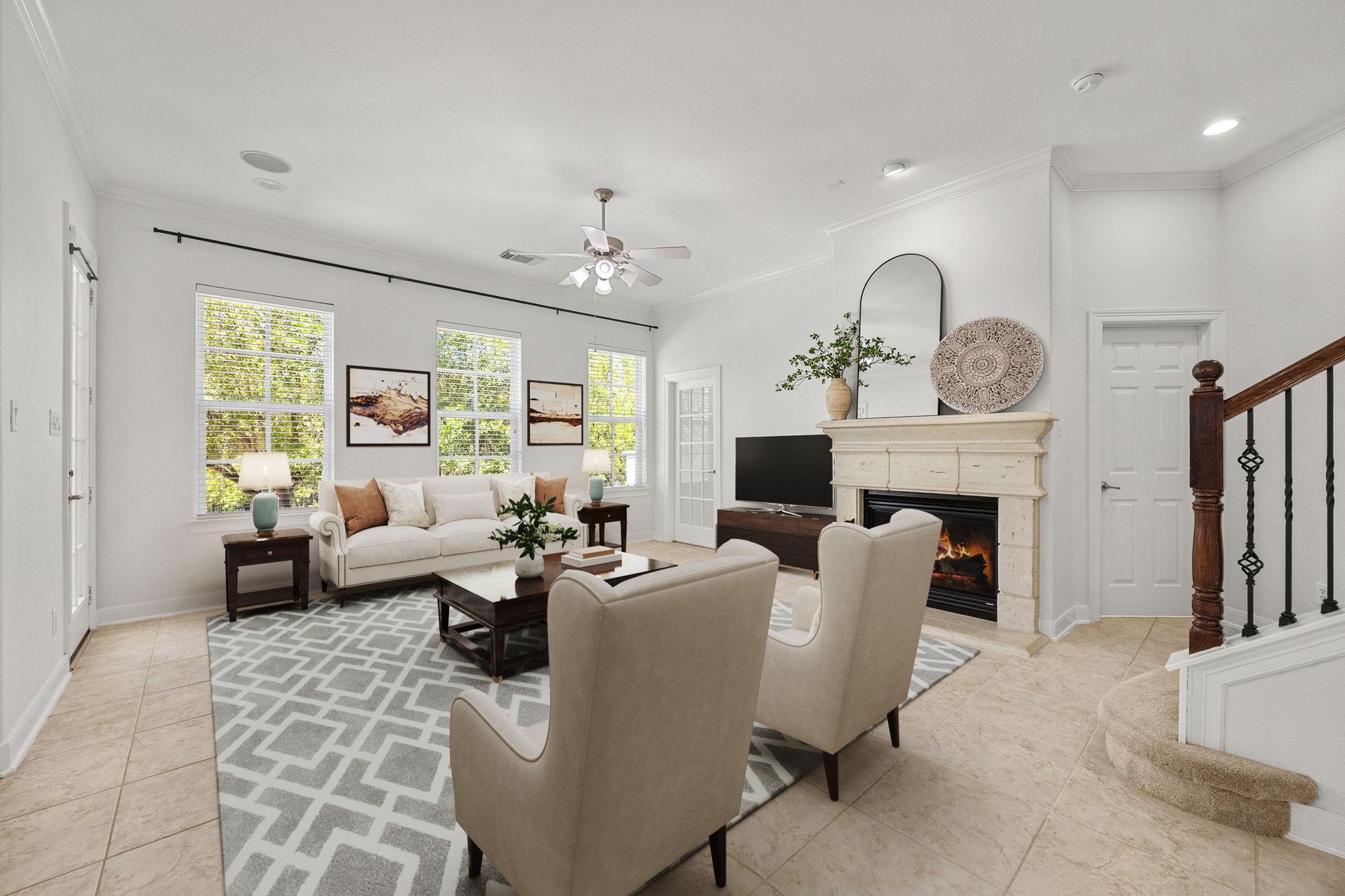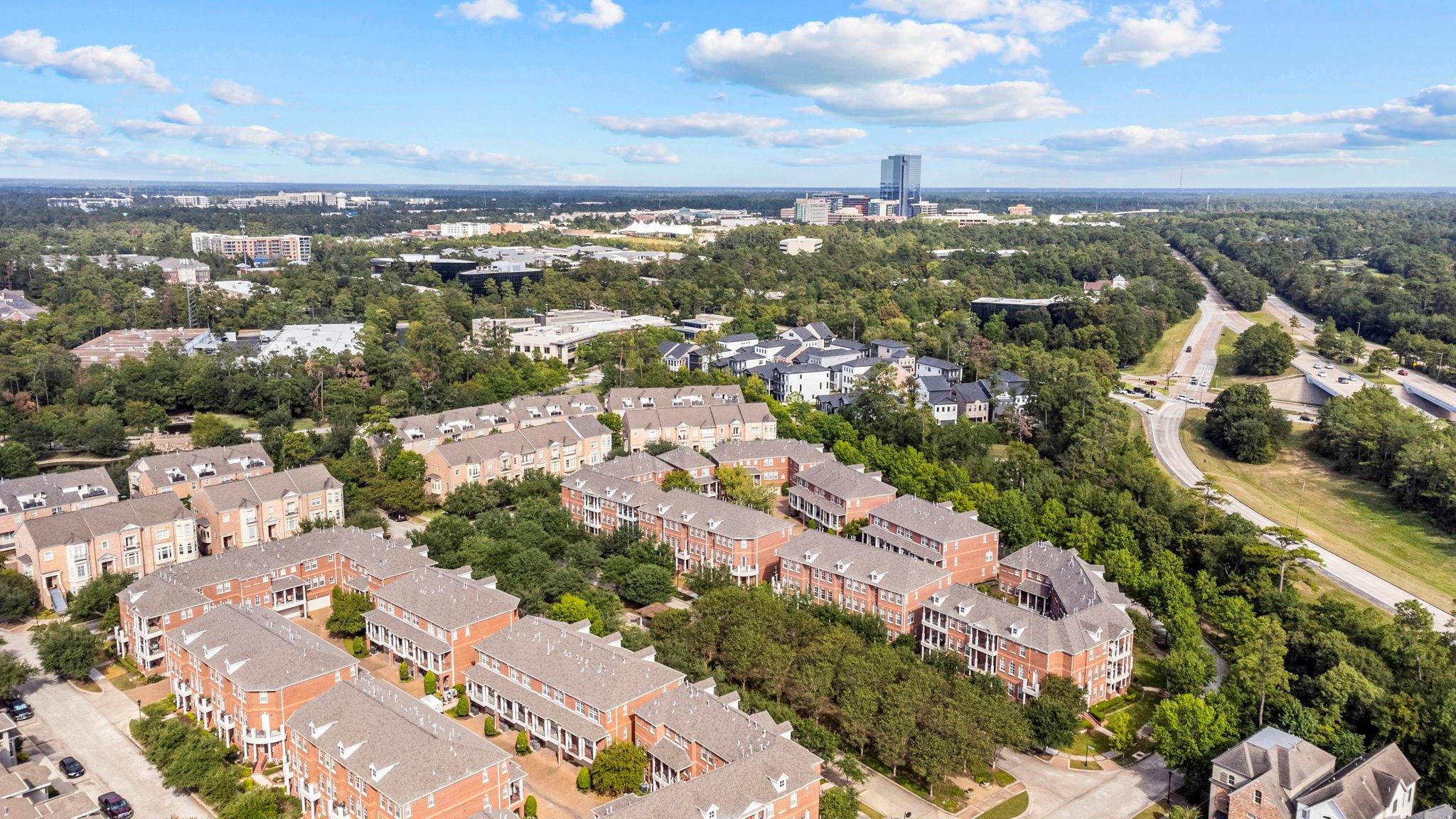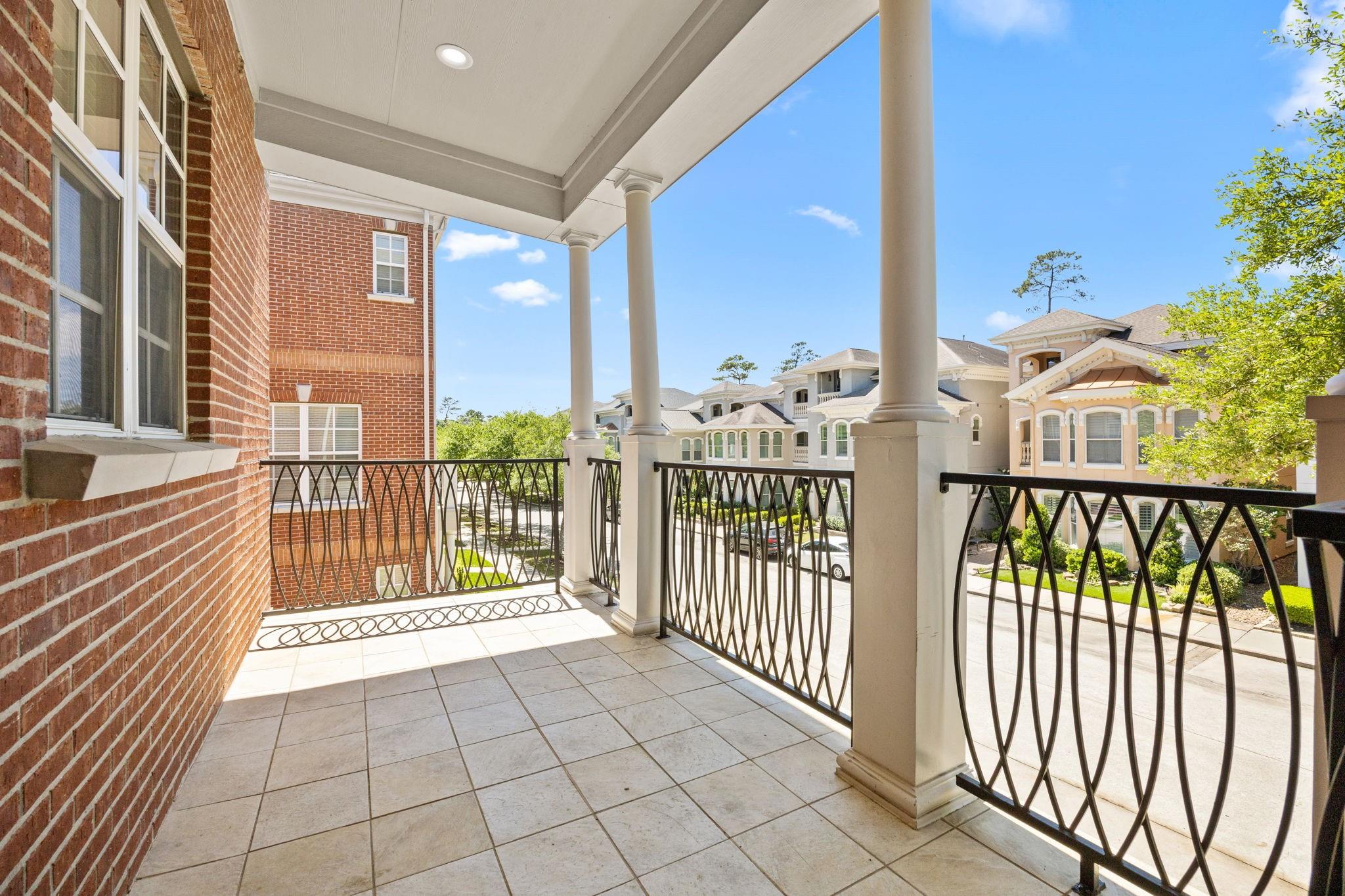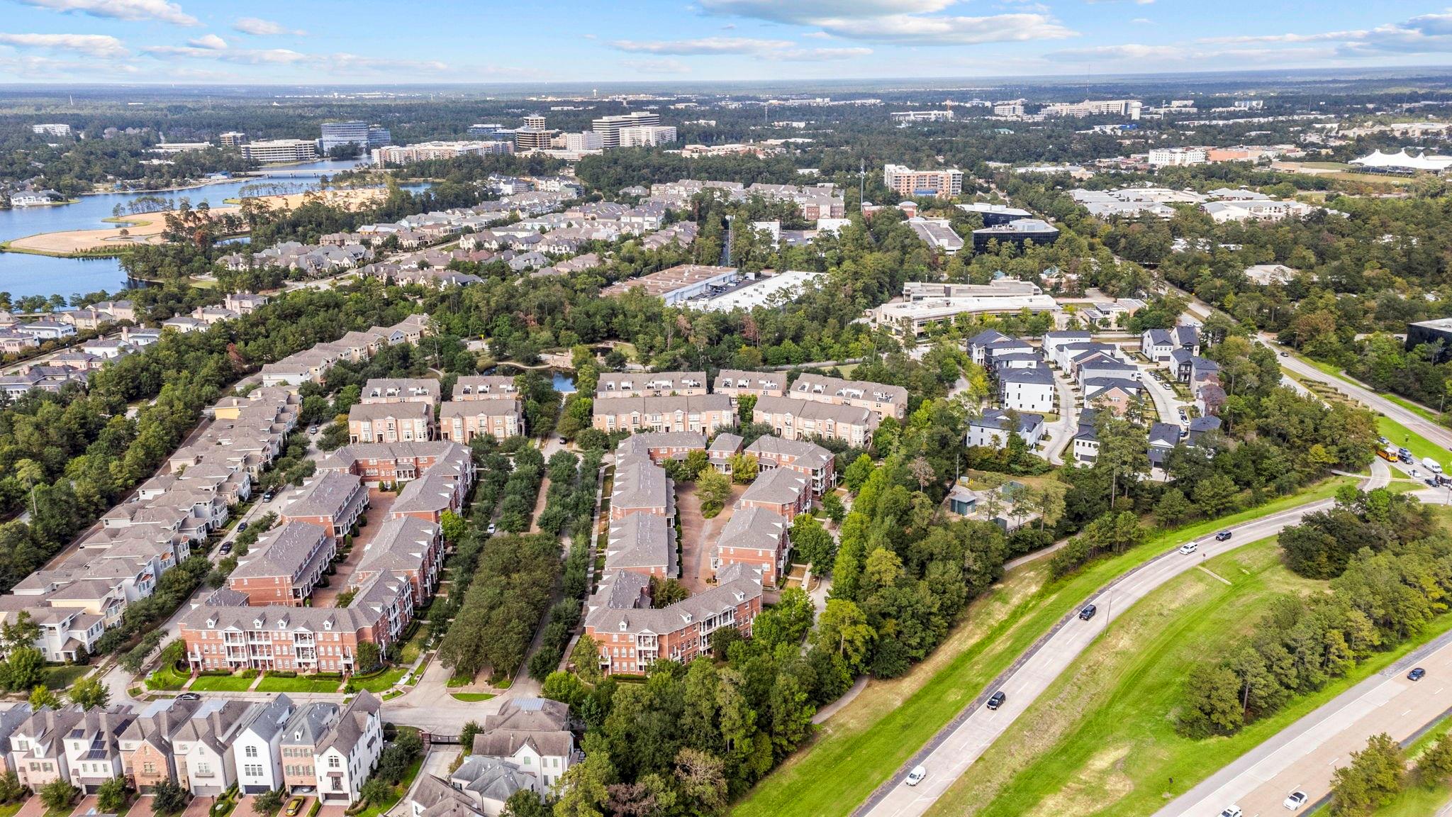 Located in the PRESTIGIOUS EAST SHORE neighborhood of The Woodlands, this 3-story townhome on a corner lot offers convenience and luxury. WALK OR BIKE TO MARKET STREET, WATERWAY AND HUGHES LANDING from this UPSCALE COMMUNITY. The first floor flex room with a full bath can serve as a guest suite, workout area, game room or 2ND STUDY. Enjoy the open concept living area with a private study, balcony, large dining space, breakfast bar, and cozy fireplace. Kitchen boasts expansive island, double ovens and gas cooktop. The large primary bedroom features a balcony, and all bedrooms are located on the upper level along with the laundry room. RESORT STYLE AMMENITIES include a CLUBHOUSE, FITNESS CENTER, POOL, LAKEFRONT BBQ PAVILION, and access to Lake Woodlands for KAYAKING OR PADDLEBOARDING. With a two-car garage and HOA-maintained landscaping, this property is ready for you to make it your own. LOCK UP AND TRAVEL WITH EASE!