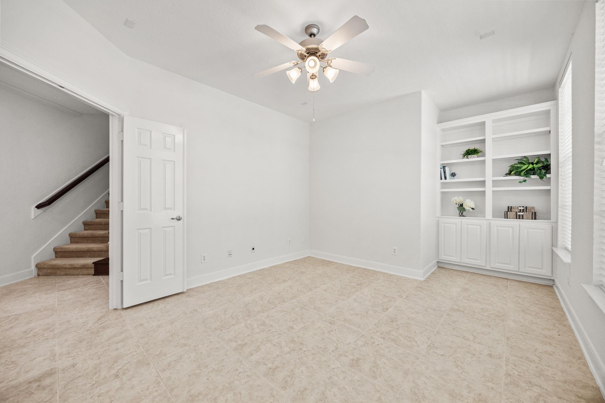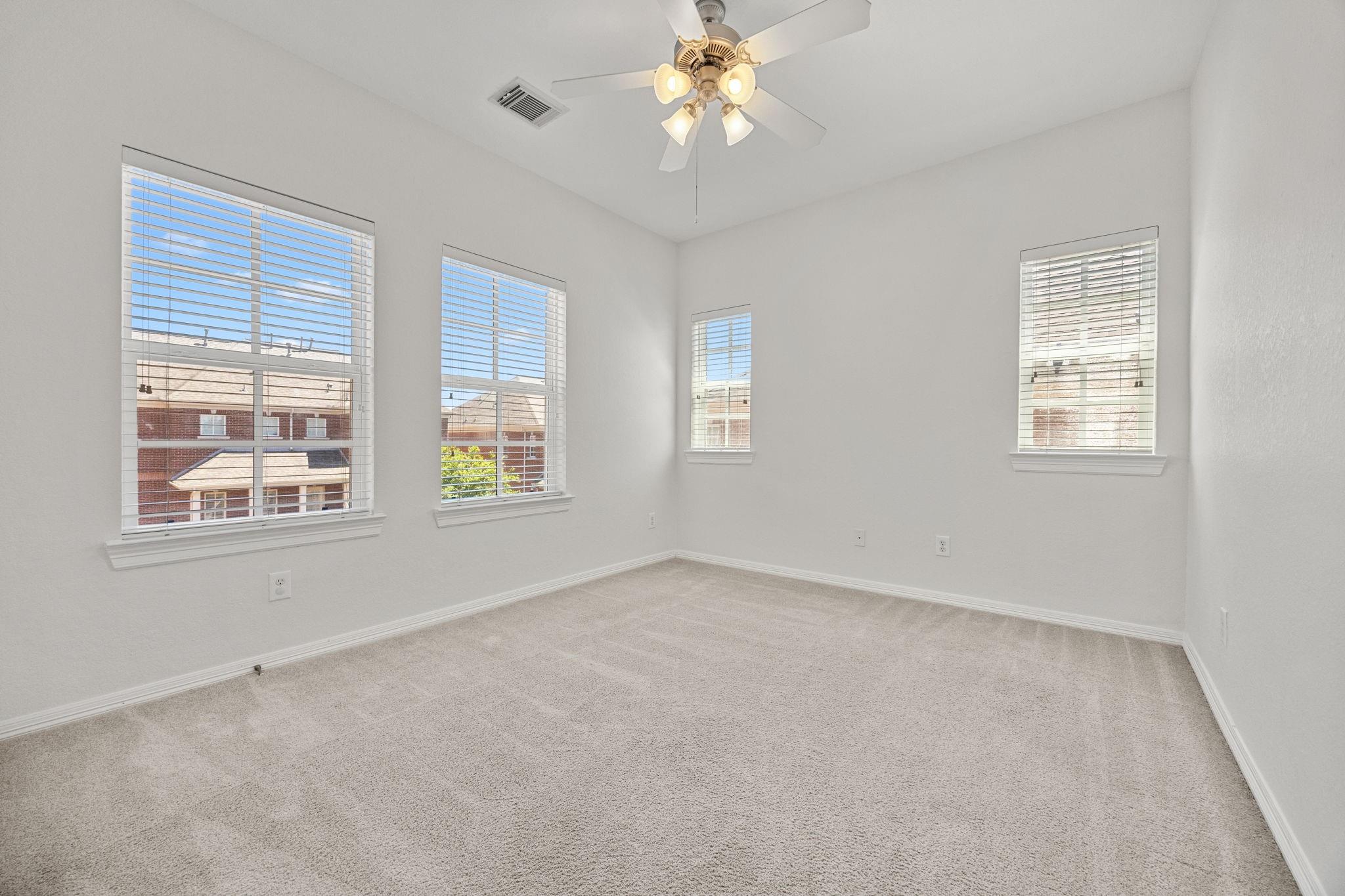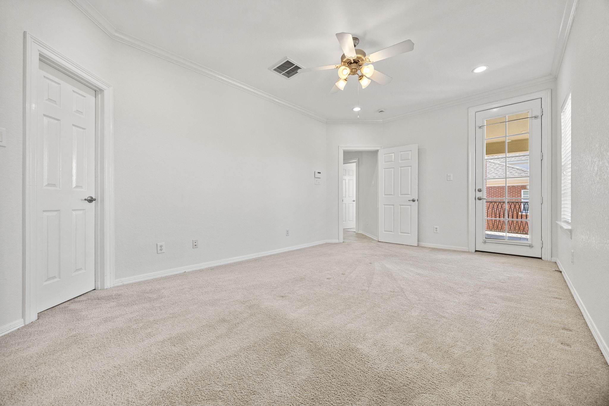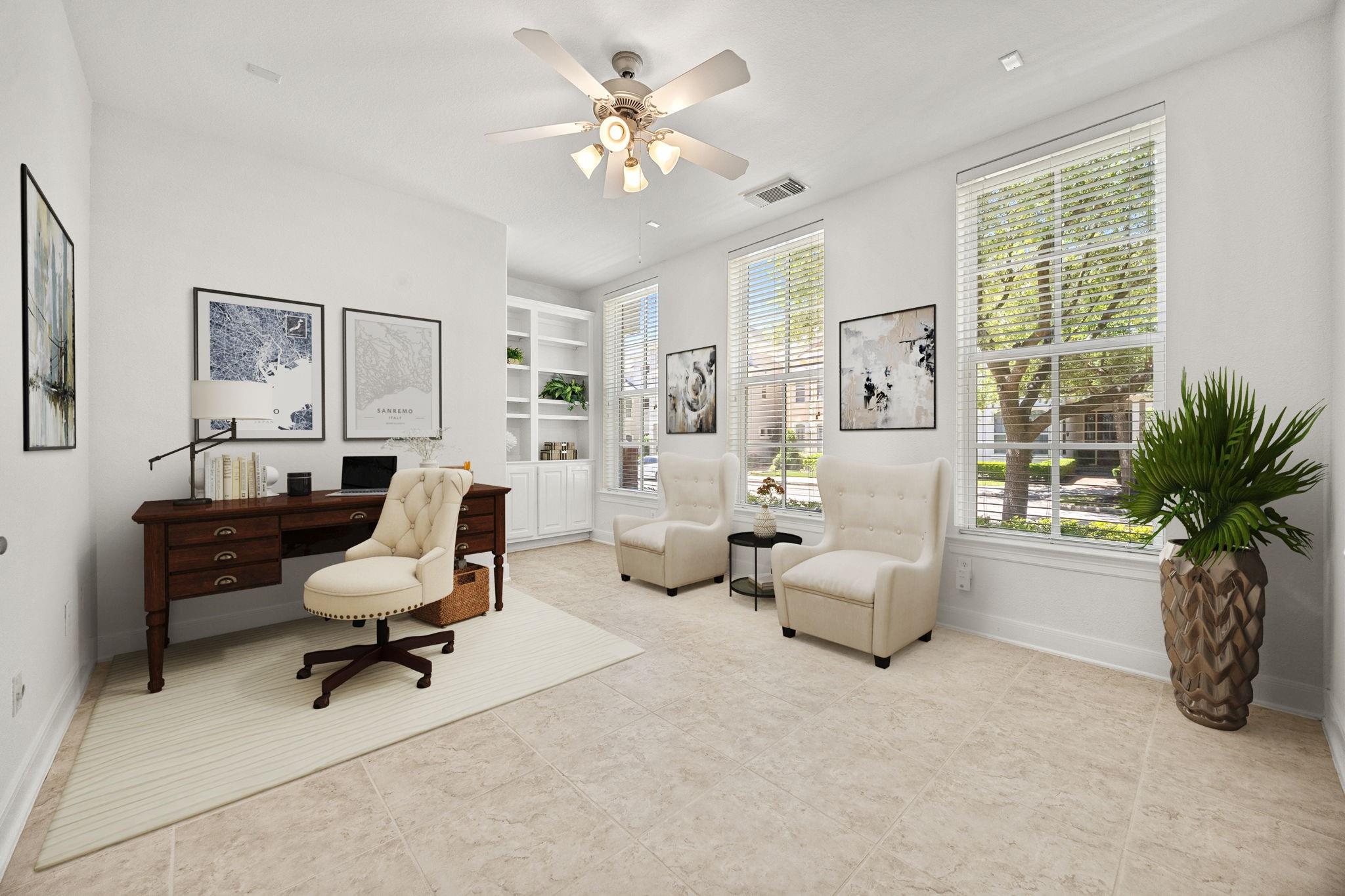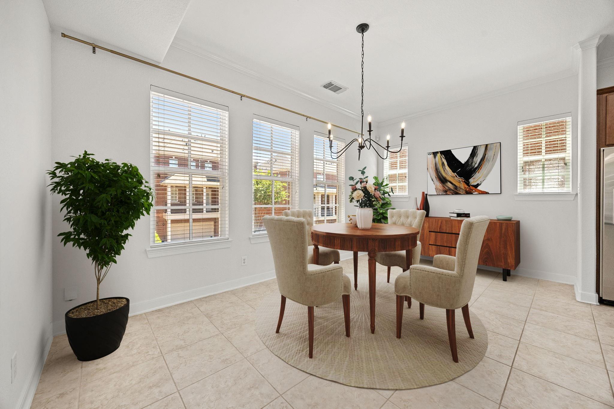 Located in the PRESTIGIOUS EAST SHORE neighborhood of The Woodlands, this 3-story townhome on a corner lot offers convenience and luxury. WALK OR BIKE TO MARKET STREET, WATERWAY AND HUGHES LANDING from this UPSCALE COMMUNITY. The first floor flex room with a full bath can serve as a guest suite, workout area, game room or 2ND STUDY. Enjoy the open concept living area with a private study, balcony, large dining space, breakfast bar, and cozy fireplace. Kitchen boasts expansive island, double ovens and gas cooktop. The large primary bedroom features a balcony, and all bedrooms are located on the upper level along with the laundry room. RESORT STYLE AMMENITIES include a CLUBHOUSE, FITNESS CENTER, POOL, LAKEFRONT BBQ PAVILION, and access to Lake Woodlands for KAYAKING OR PADDLEBOARDING. With a two-car garage and HOA-maintained landscaping, this property is ready for you to make it your own. LOCK UP AND TRAVEL WITH EASE!
