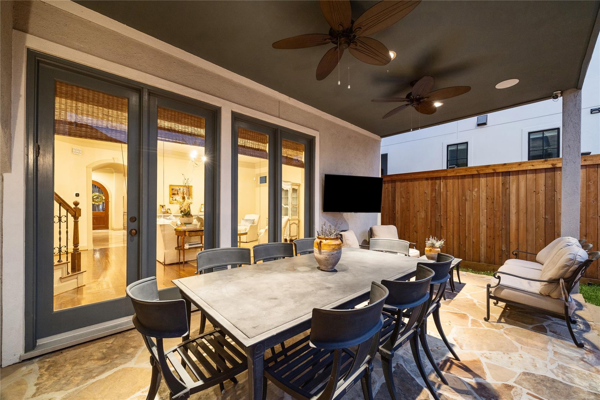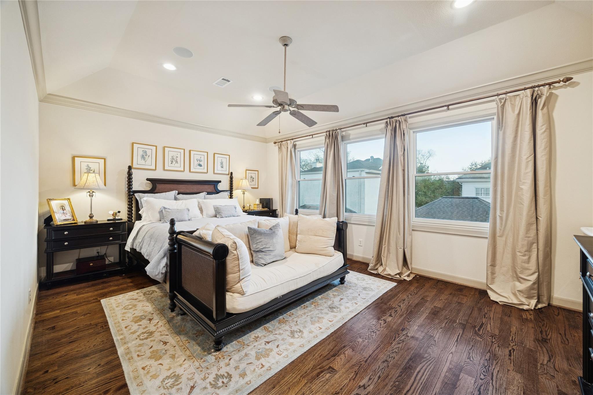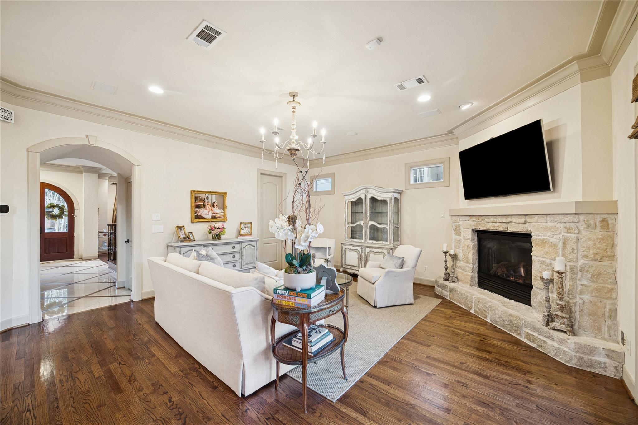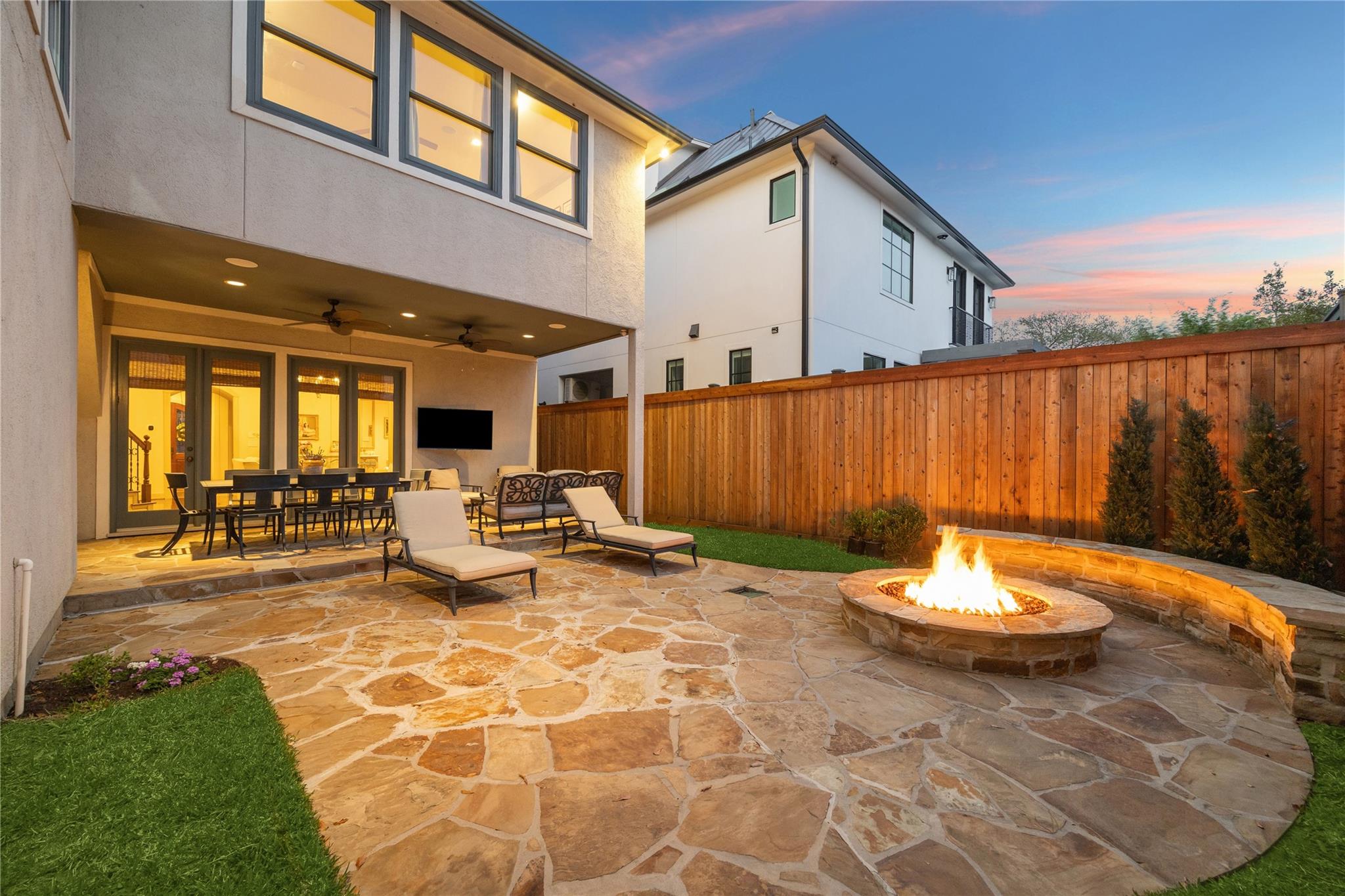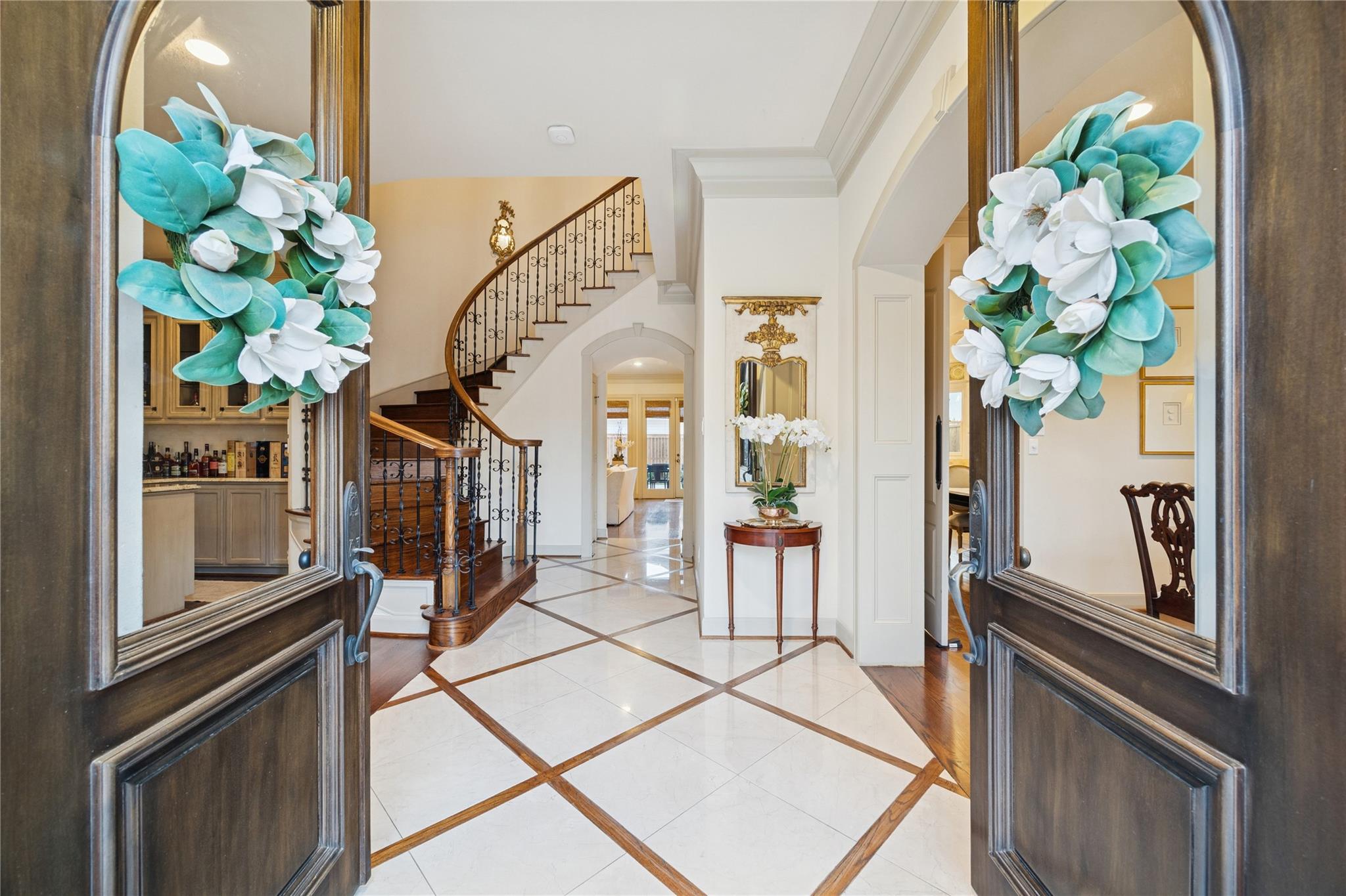 Welcome to 3815 Marquette Street, a custom-built French-inspired home on a quiet dead-end street in the heart of West University Place. Built in 2001, this 3,864 SF residence offers 4 bedrooms, 3 full baths, and 2 half baths. A dramatic roofline, arched entry, and manicured grounds create stunning curb appeal. Inside, hardwood floors, a sweeping spiral staircase, formal dining, wet bar, and a stone fireplace anchor elegant living spaces. The gourmet kitchen features quartzite counters, Sub-Zero refrigerator, double ovens, and custom cabinetry. A whimsical castle-themed playroom is a rare highlight. The primary suite includes a spa-like bath, while outdoor living shines with a covered flagstone patio and fire pit. Steps from Colonial Park and Whole Foods Market.