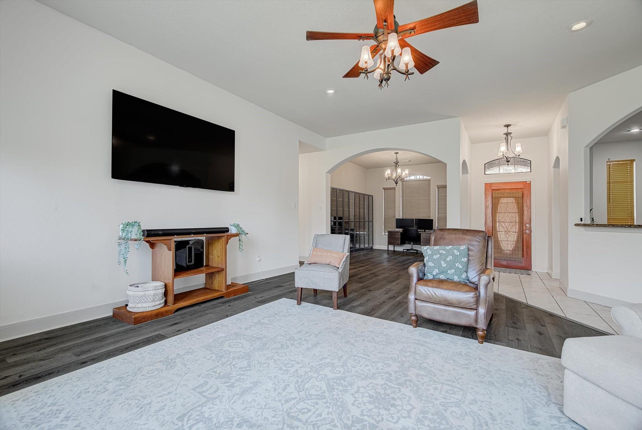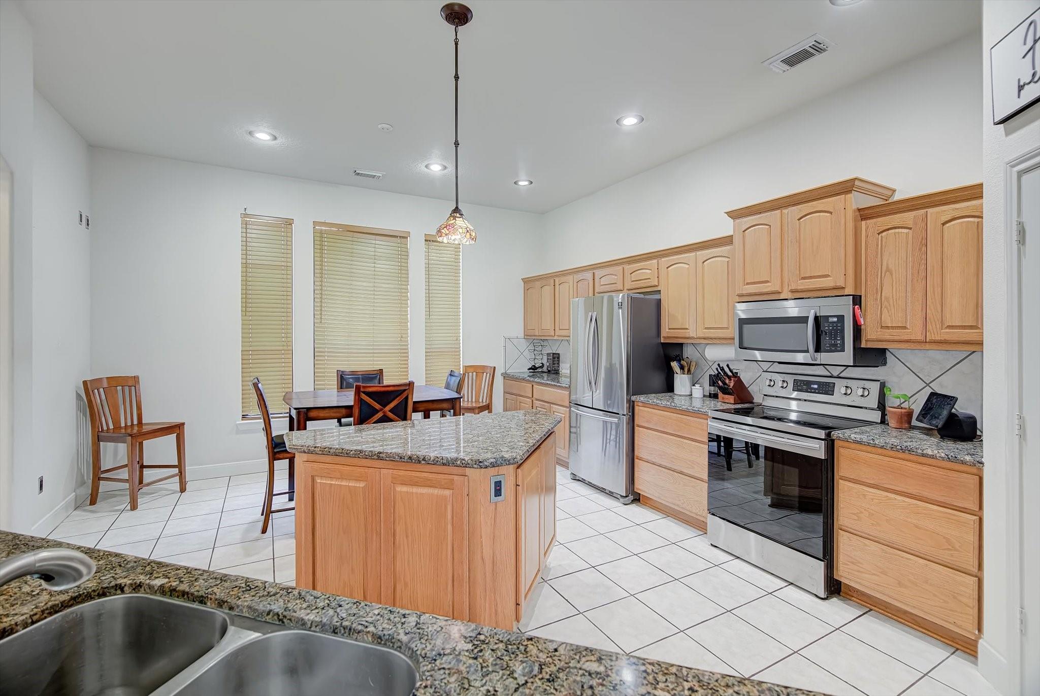 InteriorFloors:Carpet,Tile,VinylCountertop:GraniteBathroom Description:Primary Bath: Double Sinks,Primary Bath: Jetted Tub,Primary Bath: Separate Shower,Primary Bath: Soaking Tub,Secondary Bath(s): Double Sinks,Secondary Bath(s): Tub/Shower ComboBedroom Desc:All Bedrooms Down,En-Suite Bath,Walk-In ClosetKitchen Desc:Breakfast Bar,Island w/o Cooktop,Kitchen open to Family Room,PantryRoom Description:1 Living Area,Breakfast Room,Entry,Family Room,Formal Dining,Formal Living,Home Office/Study,Kitchen/Dining Combo,Living Area - 1st Floor,Utility Room in HouseHeating:Central ElectricCooling:Central ElectricConnections:Electric Dryer Connections,Washer ConnectionsDishwasher:YesDisposal:NoCompactor:NoMicrowave:YesRange:Electric RangeOven:Convection OvenIce Maker:NoEnergy Feature:Attic Vents,Ceiling Fans,Digital Program Thermostat,Energy Star Appliances,Energy Star/CFL/LED Lights,Insulated/Low-E windows,Insulation - Blown CelluloseInterior:Fire/Smoke Alarm,Formal Entry/Foyer,High Ceiling,Prewired for Alarm System