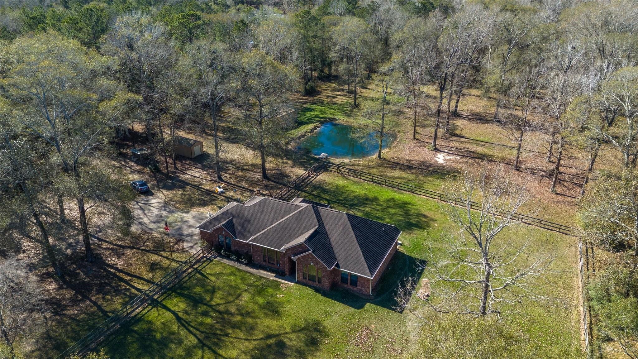 ExteriorFoundation:SlabPrivate Pool:NoLot Description:Cleared,WoodedGarage Carport:Auto Driveway Gate,Auto Garage Door Opener,Double-Wide Driveway,WorkshopAccess:Automatic Gate,Driveway GateWater Sewer:Aerobic,Public SewerRoad Surface:AsphaltArea Pool:NoTree Description:Clusters,Densely Wooded