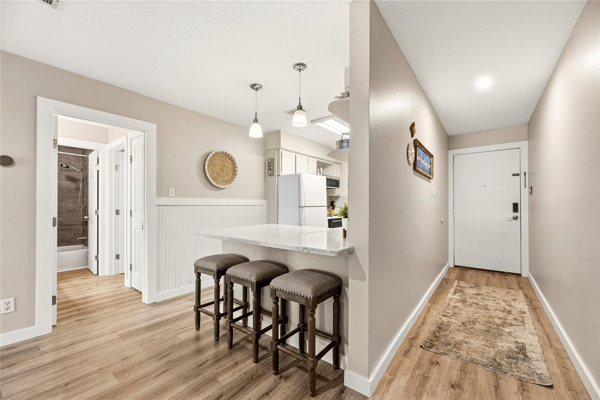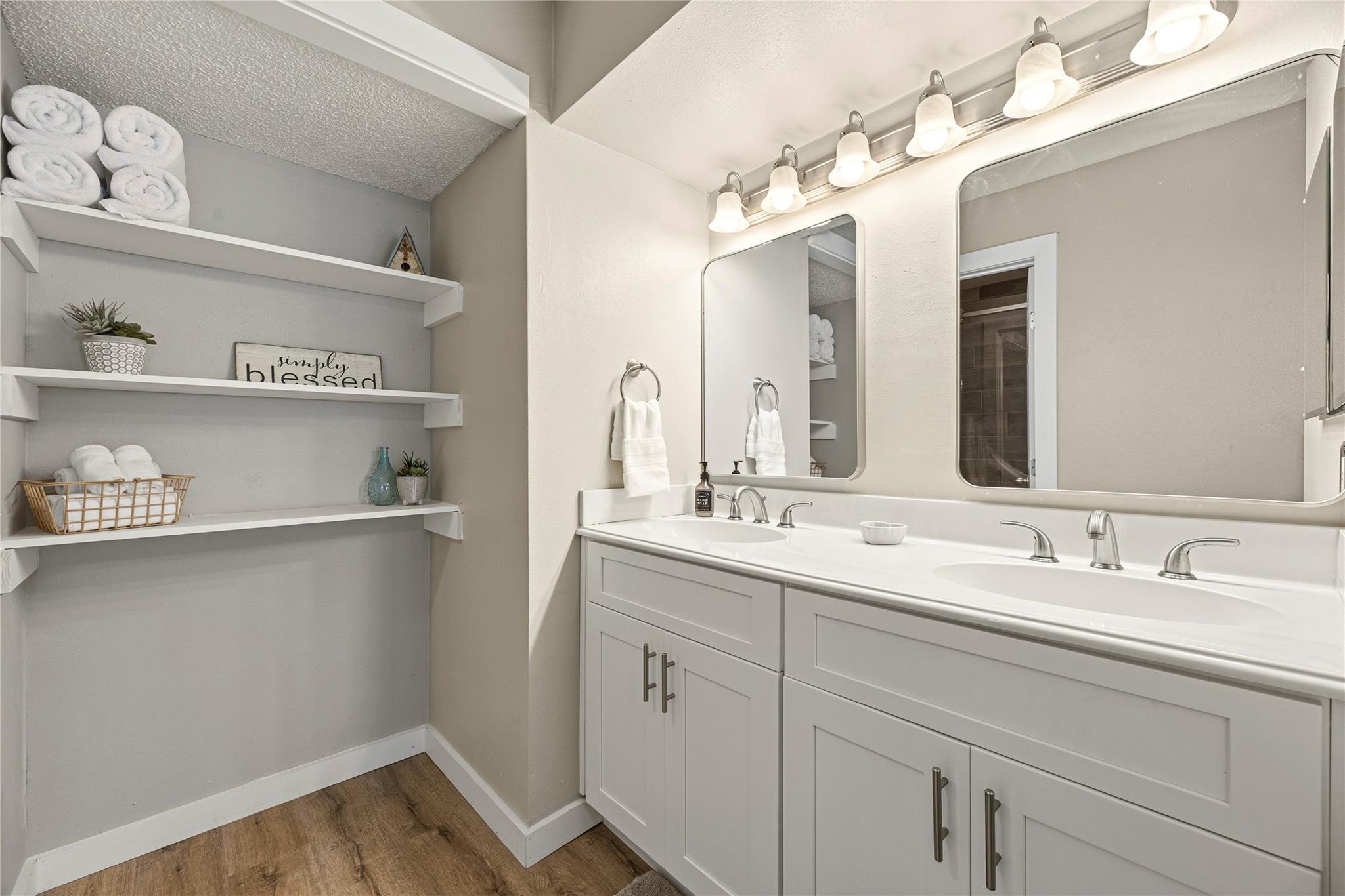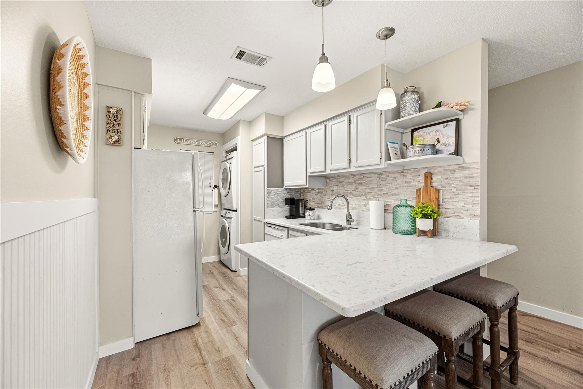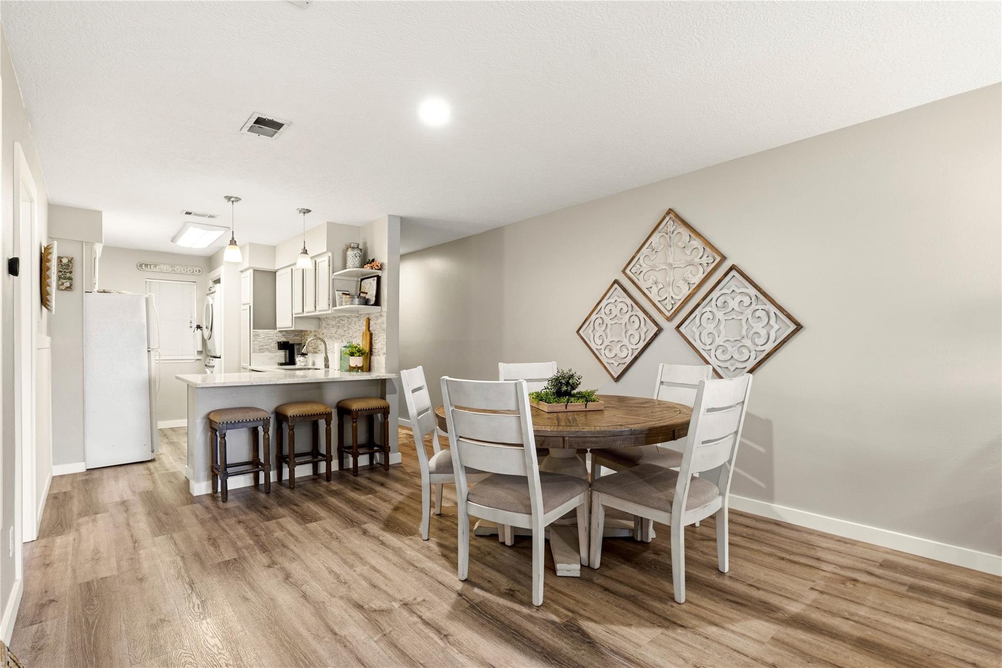 InteriorFloors:Vinyl PlankCountertop:SilestoneBathroom Description:Primary Bath: Double Sinks,Primary Bath: Shower Only,Primary Bath: Tub/Shower Combo,Two Primary BathsBedroom Desc:All Bedrooms Down,En-Suite Bath,Split PlanKitchen Desc:Breakfast Bar,Kitchen open to Family Room,PantryRoom Description:1 Living Area,Breakfast Room,Utility Room in HouseHeating:Central ElectricCooling:Central ElectricWasher/Dryer Conn:YesDishwasher:YesDisposal:YesMicrowave:YesRange:Electric RangeOven:Electric Oven,Freestanding OvenAppliances:Dryer Included,Refrigerator,Stacked,Washer IncludedEnergy Feature:Ceiling Fans,Digital Program ThermostatInterior:Fire/Smoke Alarm,Refrigerator Included,Window Coverings,Wine/Beverage Fridge