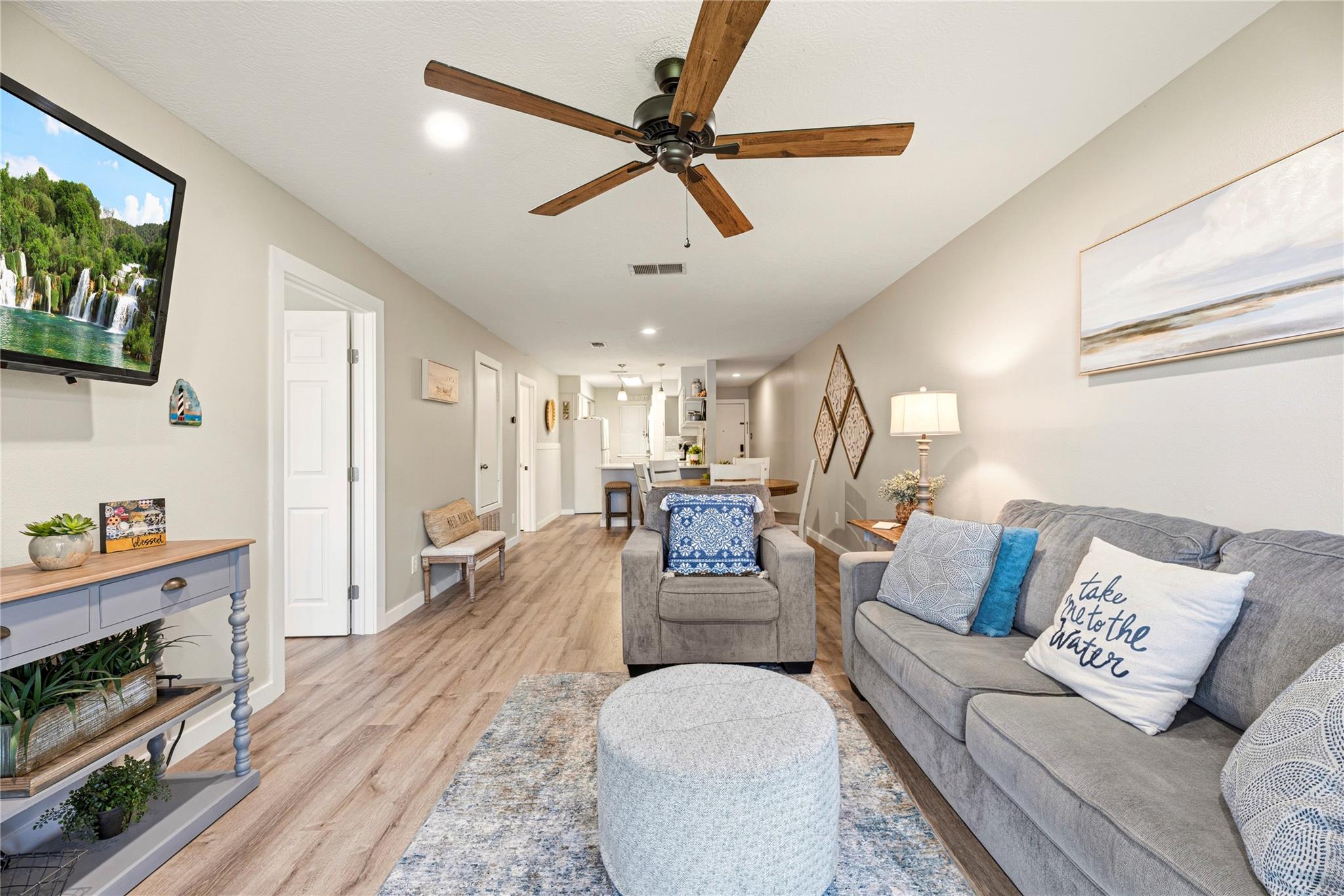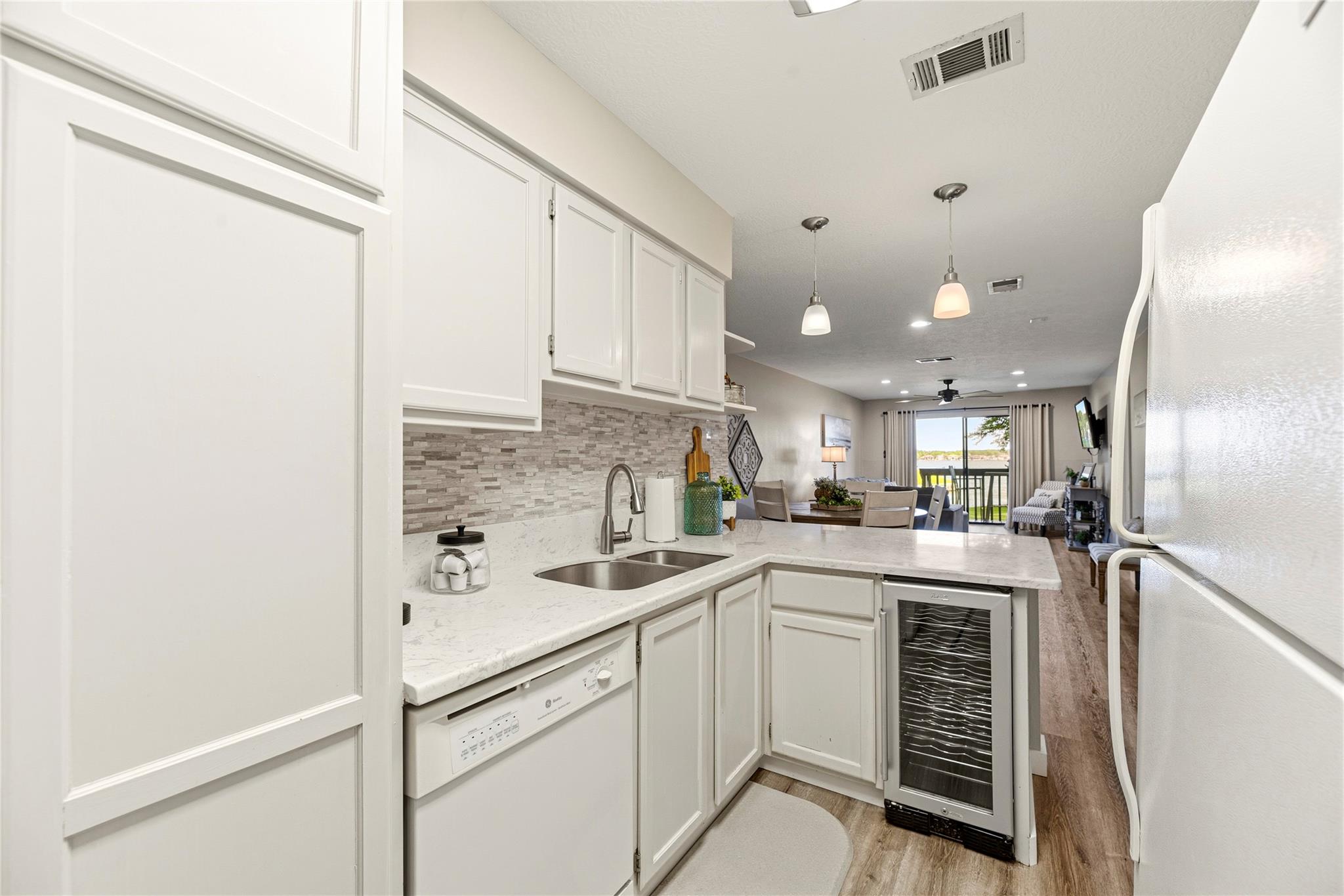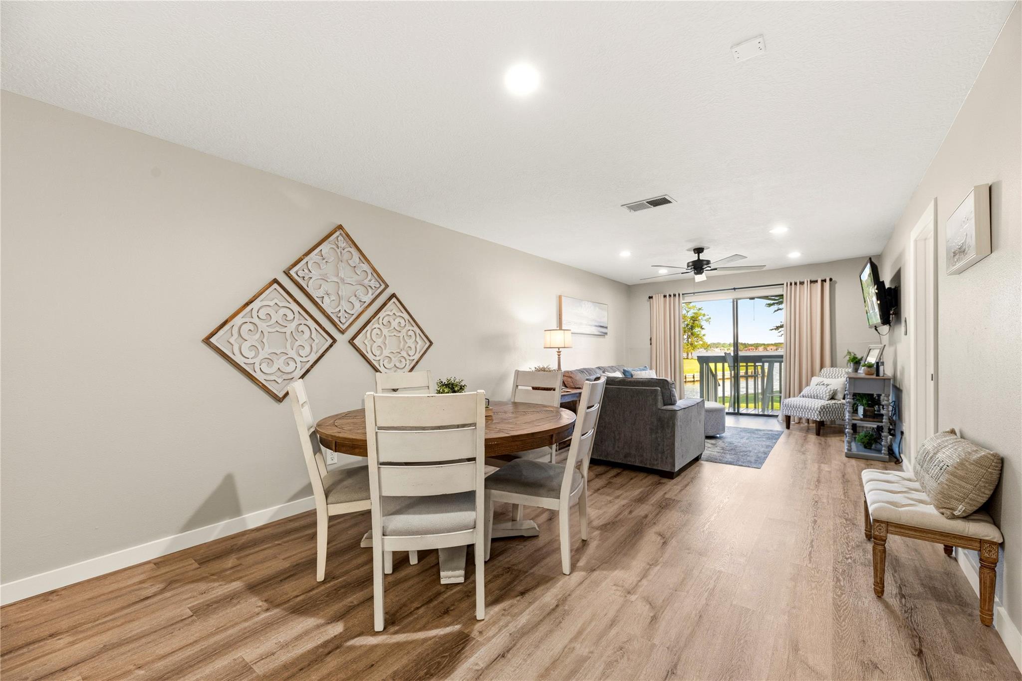 Experience waterfront living at its finest in this beautifully updated 2 bedroom, 2 bath first floor condo in The Cove at Walden. Designed for both personal comfort & investment potential, this high occupancy short term rental property offers an ideal blend of style and functionality. Step inside to discover the light and bright living space with new flooring throughout. Two spacious primary suites with updated bathrooms. The open layout flows seamlessly to a private patio overlooking the water, creating a peaceful retreat with scenic views. Outdoor living is a standout feature, with lush greenspace just steps away, complete with a fire pit, picnic tables & the community pool, clubhouse & boat launch near by. Walden amenites include Golf, tennis, walking trails, playground and marina. Restuarants and entertainment close by. Whether you are looking for a full time home, quick getaway or a proven income producing property, this waterfront gem checks all the boxes. All furniture included!