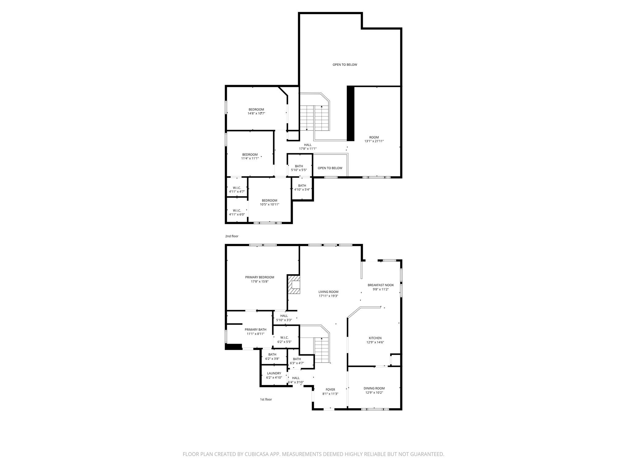 First FloorLiving:18x30Kitchen:13x14Breakfast:10x11Primary Bedroom:18x15Primary Bath:11x9Entry:8x10