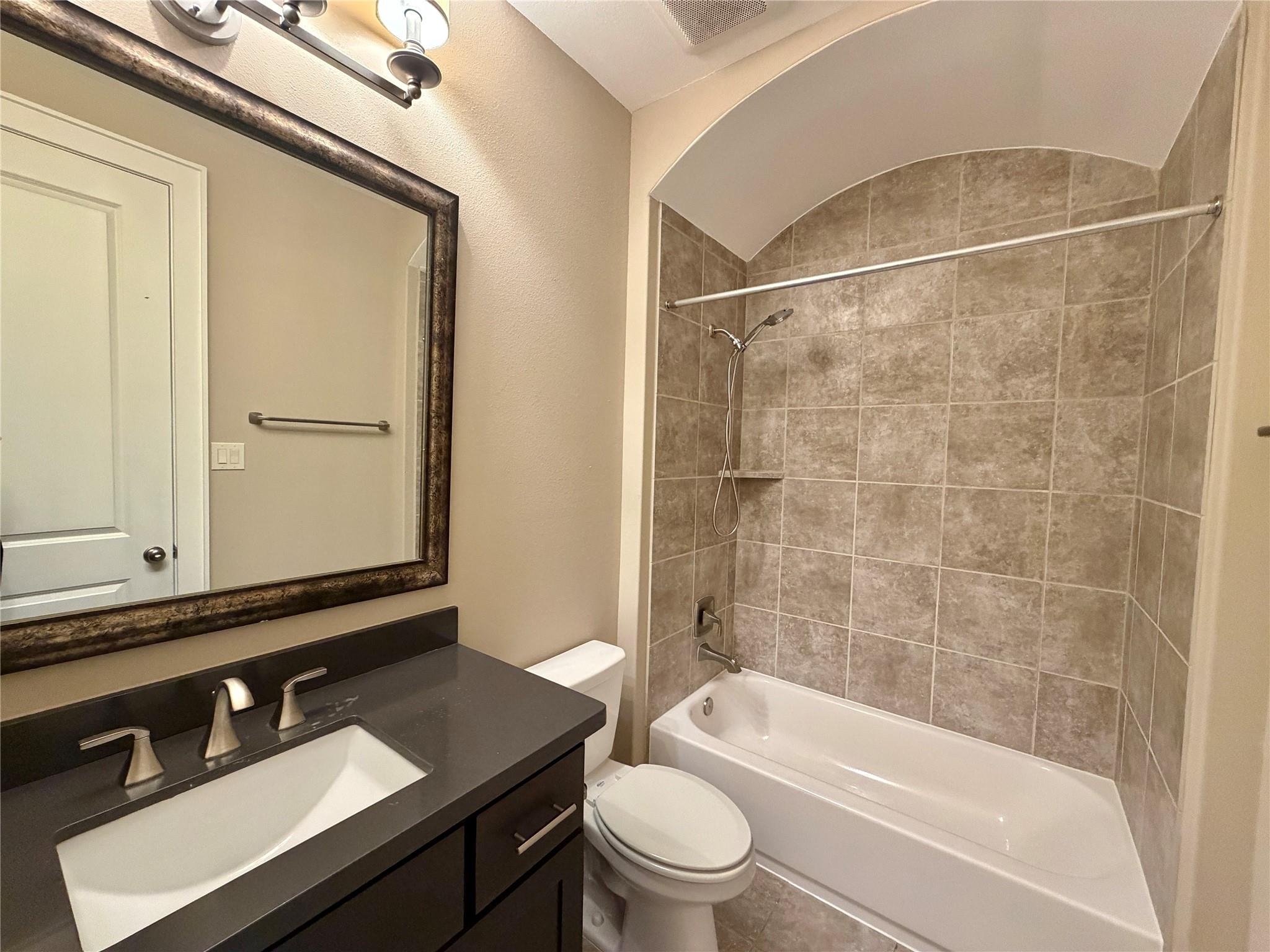 Welcome to the wonderful city living! Steps away from award winning restaurants and shopping centers. This beautifully maintained 3 story townhome offers 3 bedrooms 3.5 baths, game room, wine room, 3 large balconies and an oversized private driveway! The large front yard has artificial turf for clean and easy maintenance. First floor offers a bedroom/study with en-suit full bath and a game room perfect for family entertainment or exercise. Beautiful engineering wood floors throughout first and second floors with high ceiling and large open concept living dinning and high end kitchen with Quartz countertops and Bosch appliances. The extra large island is perfect for family gathering and breakfast. Expansive 3rd floor primary bedroom with private balcony, elegant primary bathroom with barreled ceiling offers jetted tub and beautiful granite double vanities. Large walk in closet with build ins. The secondary bedroom also has a large balcony. No HOA and no flooding! Walk distance to HEB!