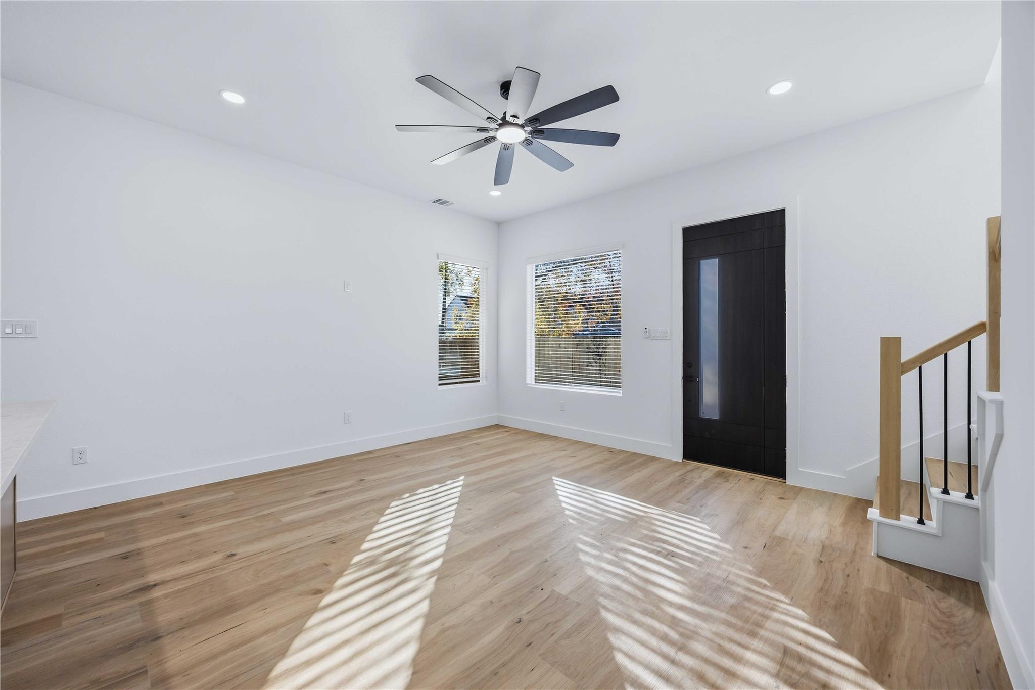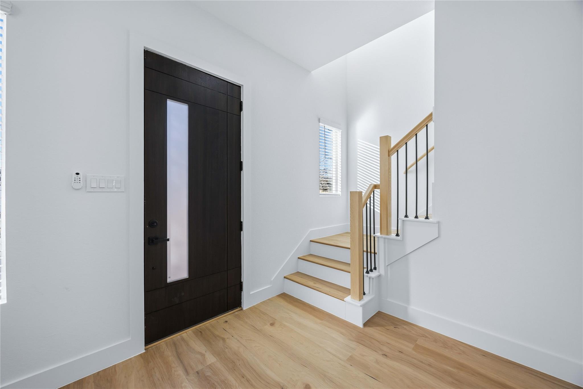 Step into modern elegance with this stunning 3-bedroom, 2.5-bathroom duplex. The open-concept living area features beautiful light wood floors, crisp white walls, and an abundance of natural light, creating a bright and inviting atmosphere. The gourmet kitchen is a chef's dream, boasting sleek, two-toned cabinetry, gleaming white quartz countertops, and a full suite of stainless steel appliances. A large island with a black sink and faucet provides ample space for meal prep and casual dining. Upstairs, you'll find three spacious bedrooms, including a serene primary suite. The bathrooms are finished with modern fixtures and stylish tiling. With a clean, contemporary design and a thoughtful layout, this duplex offers both luxury and functionality. The exterior showcases a striking modern farmhouse aesthetic with a two-tone color scheme and clean lines. This home is the perfect blend of style, comfort, and urban convenience. Schedule your showing today!