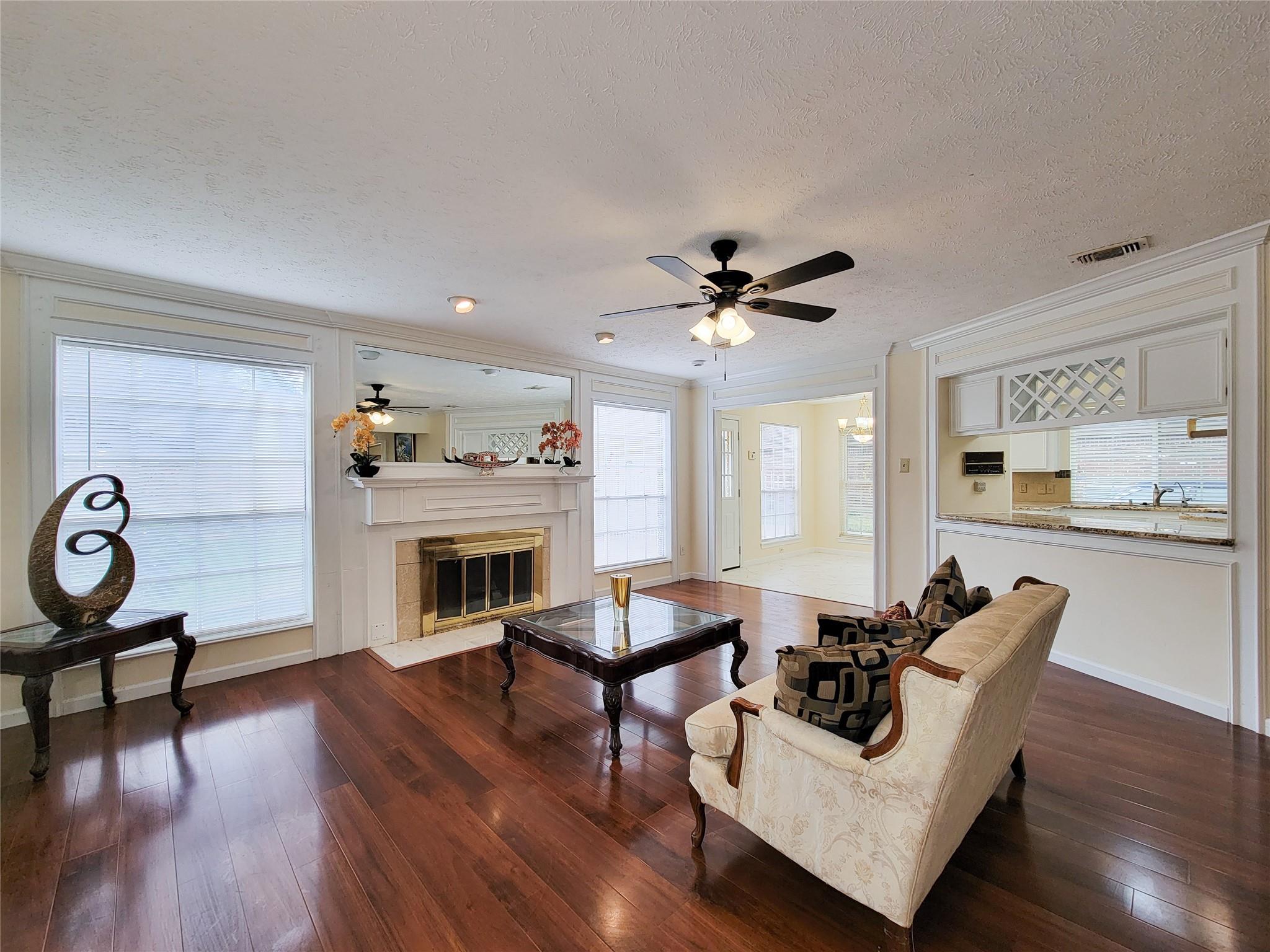 Charming two-story home on a tree-lined street in Austin Parkway. Corner Lot. Great free flowing floor plan with Four Bedrooms, 3.5 Bathrooms (2 of them are en-suite bathrooms), both Formals, Family room w/fireplace & huge Game-room upstairs. Recent updates include Roof, Primary Bathroom, Guest/half Bathroom, Kitchen & more. Pls view the online walk-through video to capture all the details. Extensive Hardwood flooring in downstairs area & also in Game-room. Primary bathroom remodeled w/quartz counters, tile flooring, custom 8-jetted shower/tub, leaded glass window, soft closing cabinets & mirrors. Recent carpet in Primary Bedroom & Stairs. Updated Kitchen w/island, granite counters, designer backsplash, wine rack & tile floor. All appliances stay (in as-is condition). Property located in top rated FBISD along w/highly sought after Clements HS. Within minutes from First Colony Mall, fine dining, medical facilities & more. Don't miss the opportunity to make this your new home in 2026!!