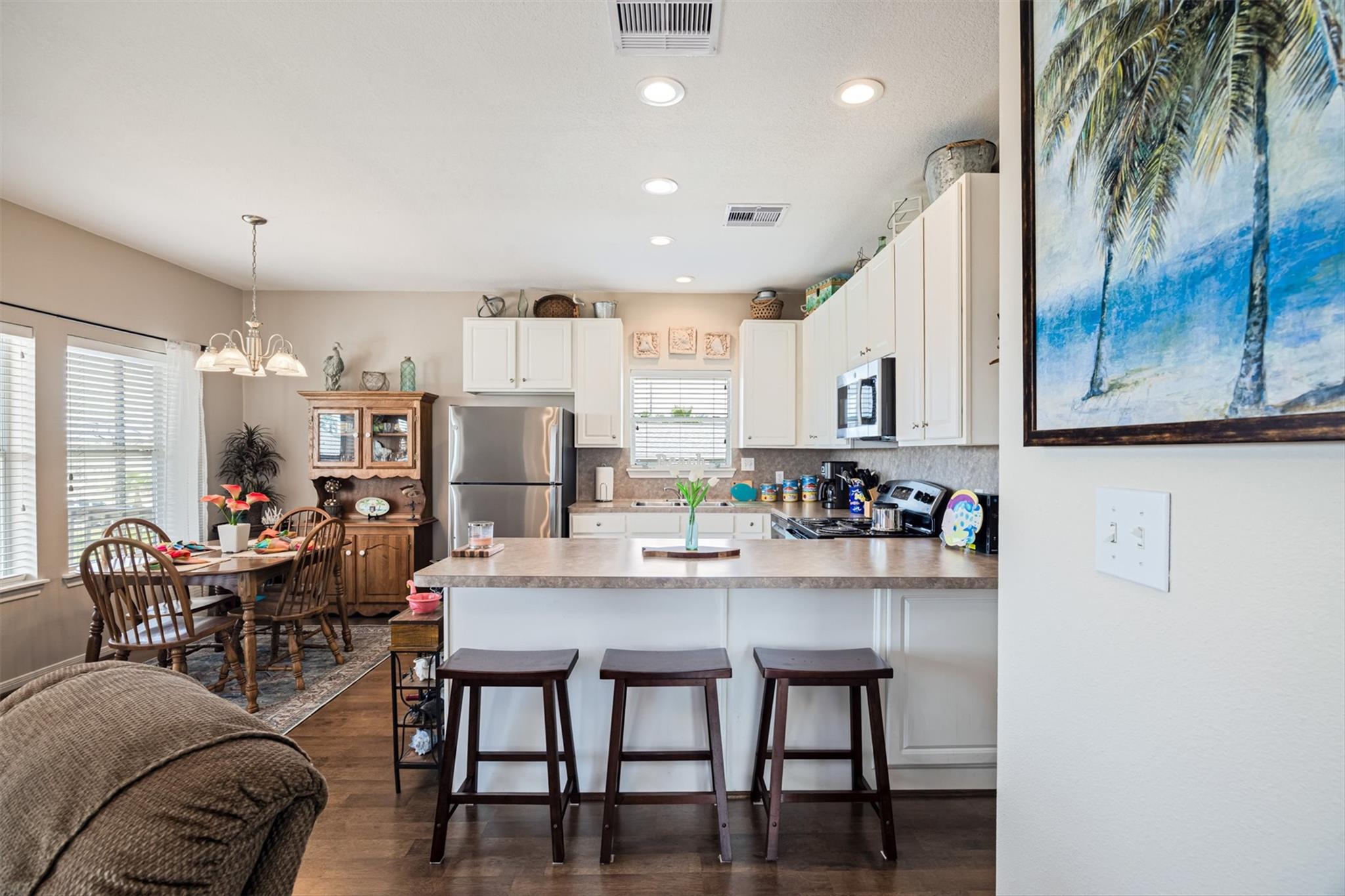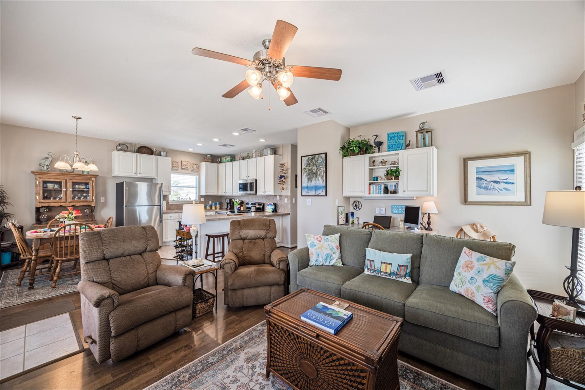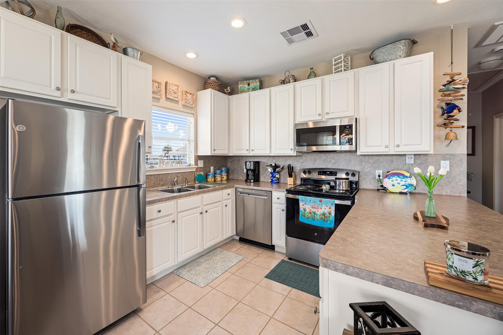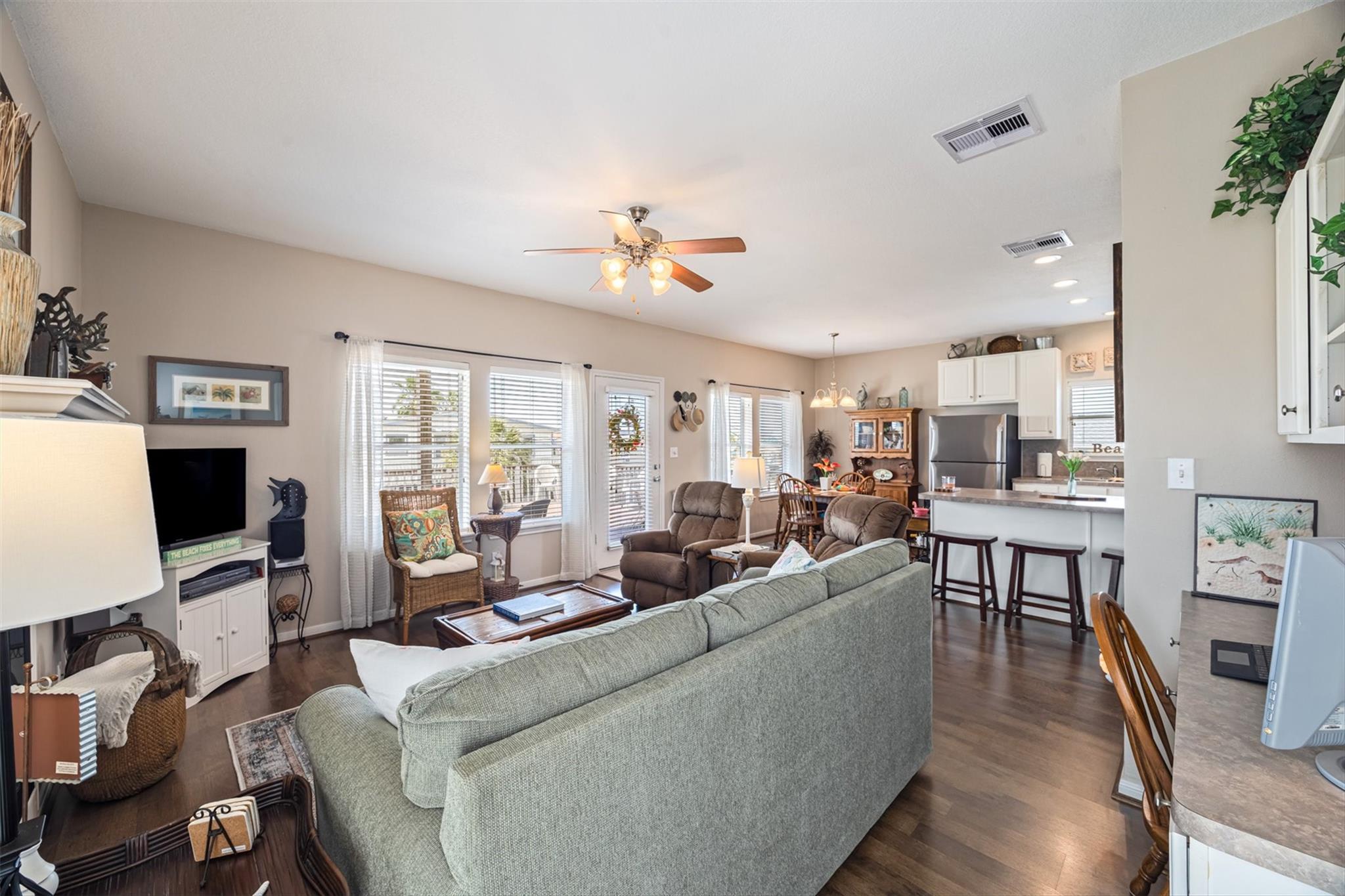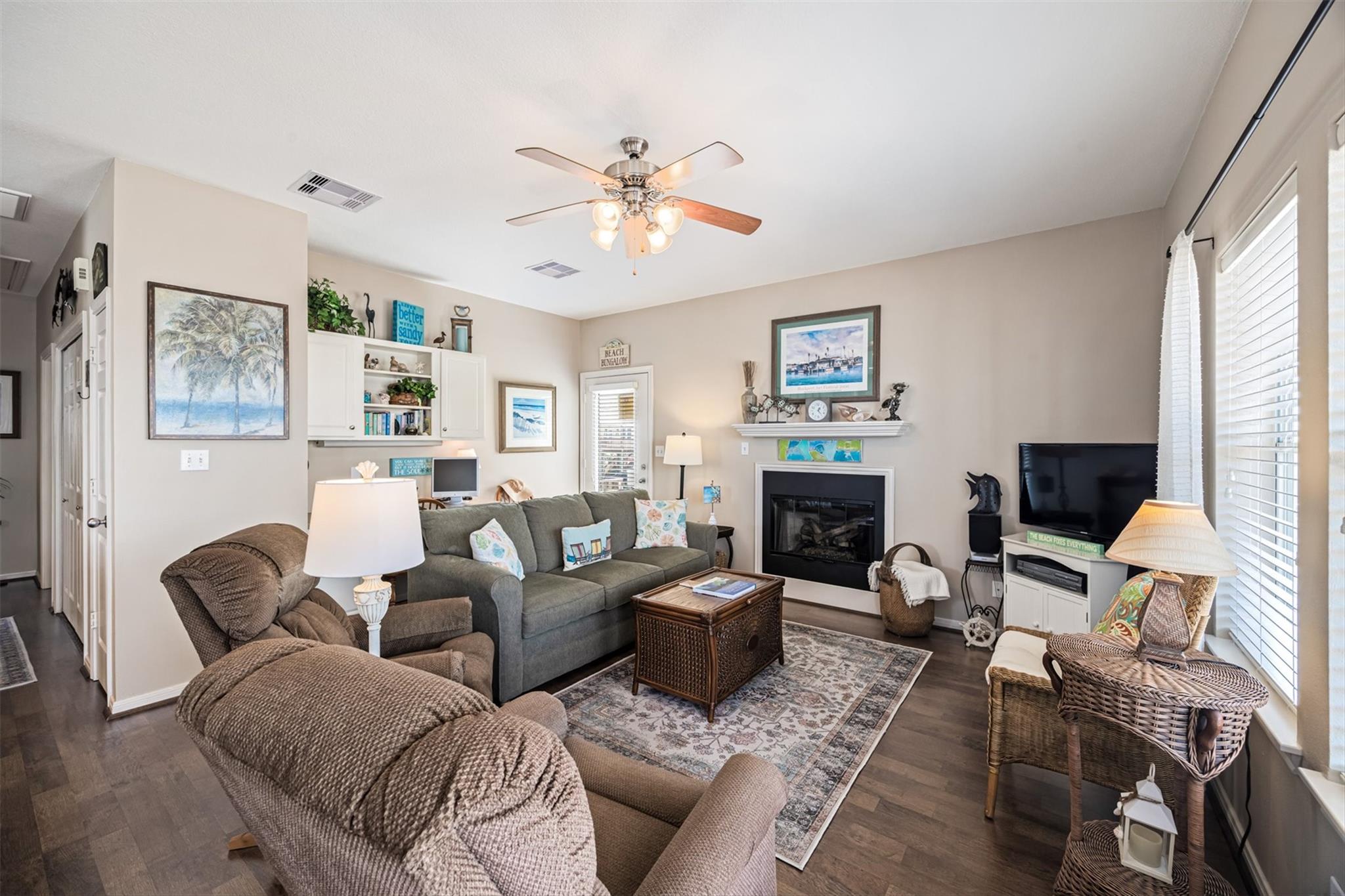 Water views that truly set this one apart—situated on TWO LOTS! This one-owner, meticulously maintained 2 bed, 2 bath coastal cottage overlooks the boat basin with canal and bay views that make the back deck the place to be. Inside, you’ll find an open, bright layout with 9’ ceilings, easy flow between living and dining, and windows that keep the home light and connected to the water. A fireplace and built-ins add warmth and character, while the kitchen features new appliances and is move-in ready. Over 600 sqft of deck space offers plenty of room to relax, catch the breeze, and watch the boats go by. Major updates already complete—HVAC and ductwork replaced in 2024, plus recent interior paint. Oversized garage provides great space for golf carts, fishing gear, and storage. Located near the marina, boat ramp, and neighborhood amenities, with the beach just a short golf cart ride away.