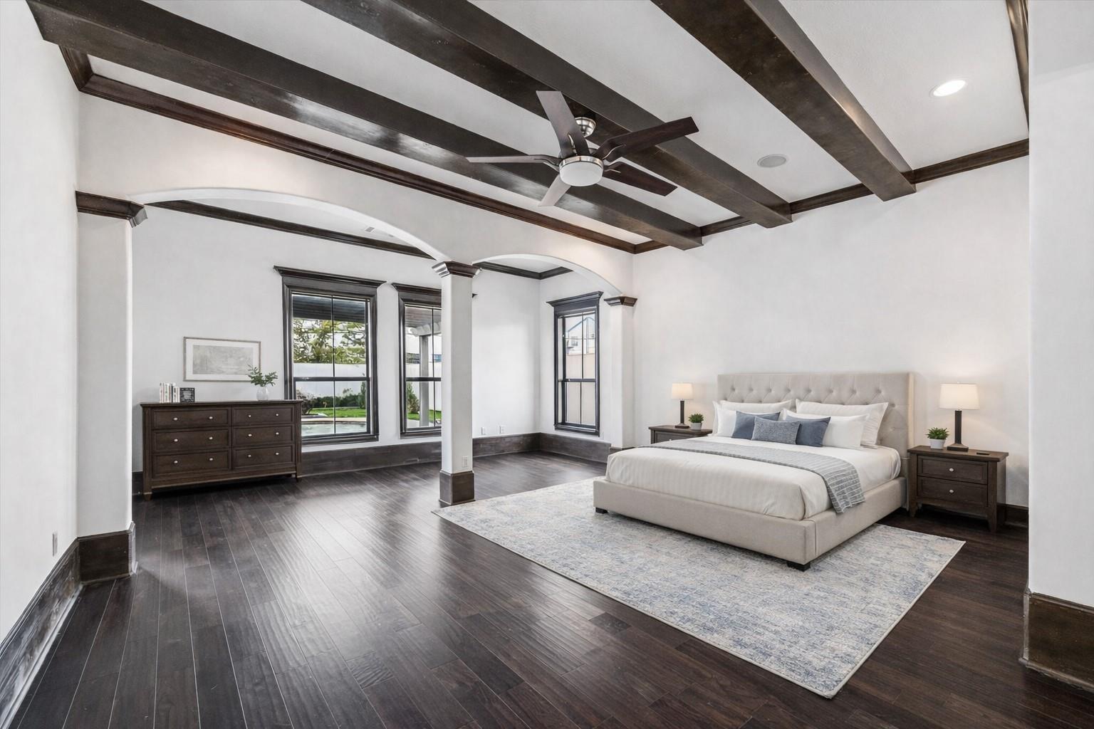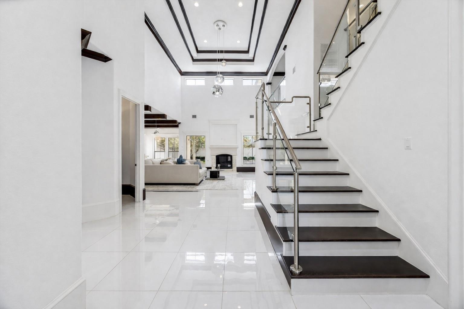 In Riverside Terrace, this contemporary two-story home delivers over 4,100 square feet of thoughtfully designed living space. Built in 2016, the layout offers four bedrooms, three full baths, and a half bath, with the primary suite located on the first floor. Open living areas feature high ceilings, hardwood and marble flooring, arched architectural details, and a chef’s kitchen with granite countertops, gas cooktop, oversized island, and custom cabinetry. Upstairs includes a game room, dedicated theater, and additional bedrooms, all connected by a dramatic overlook with glass railings. The backyard is a true retreat with a heated pool, covered patio, and privacy fencing. A three-car garage, wet bar, and multiple fireplaces complete the home, all within a well-established neighborhood near the Texas Medical Center and Downtown Houston.