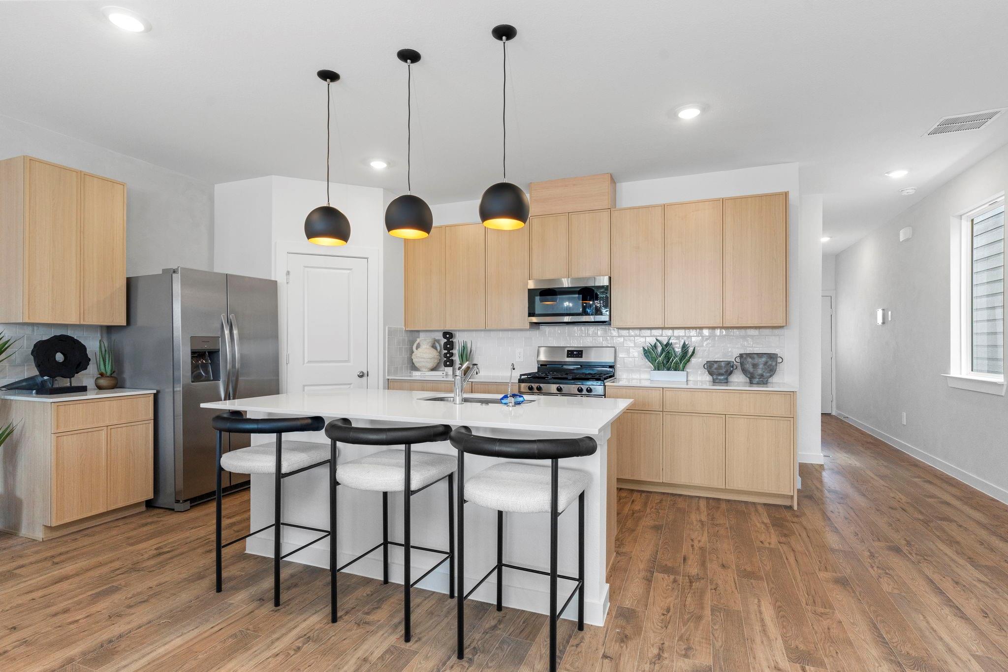 The Cade floor plan at Alexander is thoughtfully designed for those who value space, flexibility, and modern style. Offering approximately 1,684 square feet, this two-story townhome features an open-concept layout where the kitchen, dining, and family room seamlessly connect—perfect for everyday living and entertaining. The kitchen showcases stylish cabinetry, durable countertops, and stainless-steel appliances, while a covered patio extends your living space outdoors. Upstairs, a spacious primary suite offers a private retreat with a large walk-in closet and well-appointed bath. Two secondary bedrooms are thoughtfully separated, providing added privacy and flexibility for a home office, gym, or guest space. A convenient upstairs utility room enhances daily living. With elevated finishes, smart home features, energy-efficient construction, and low-maintenance living, the Cade delivers comfort, convenience, and style.