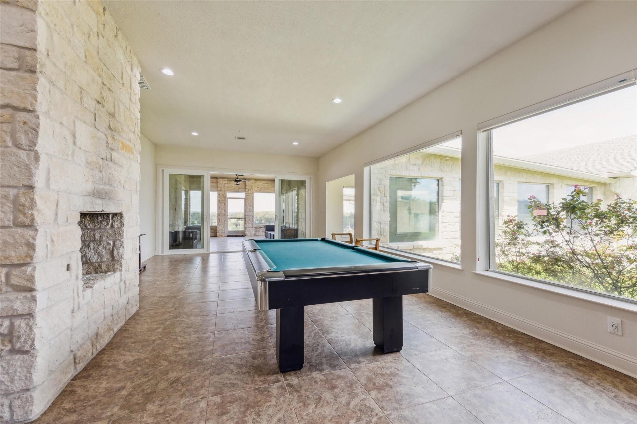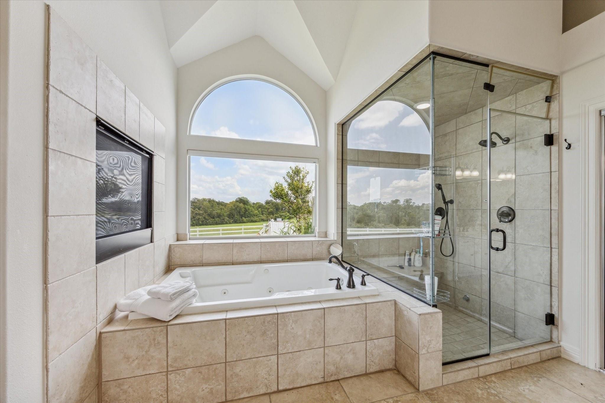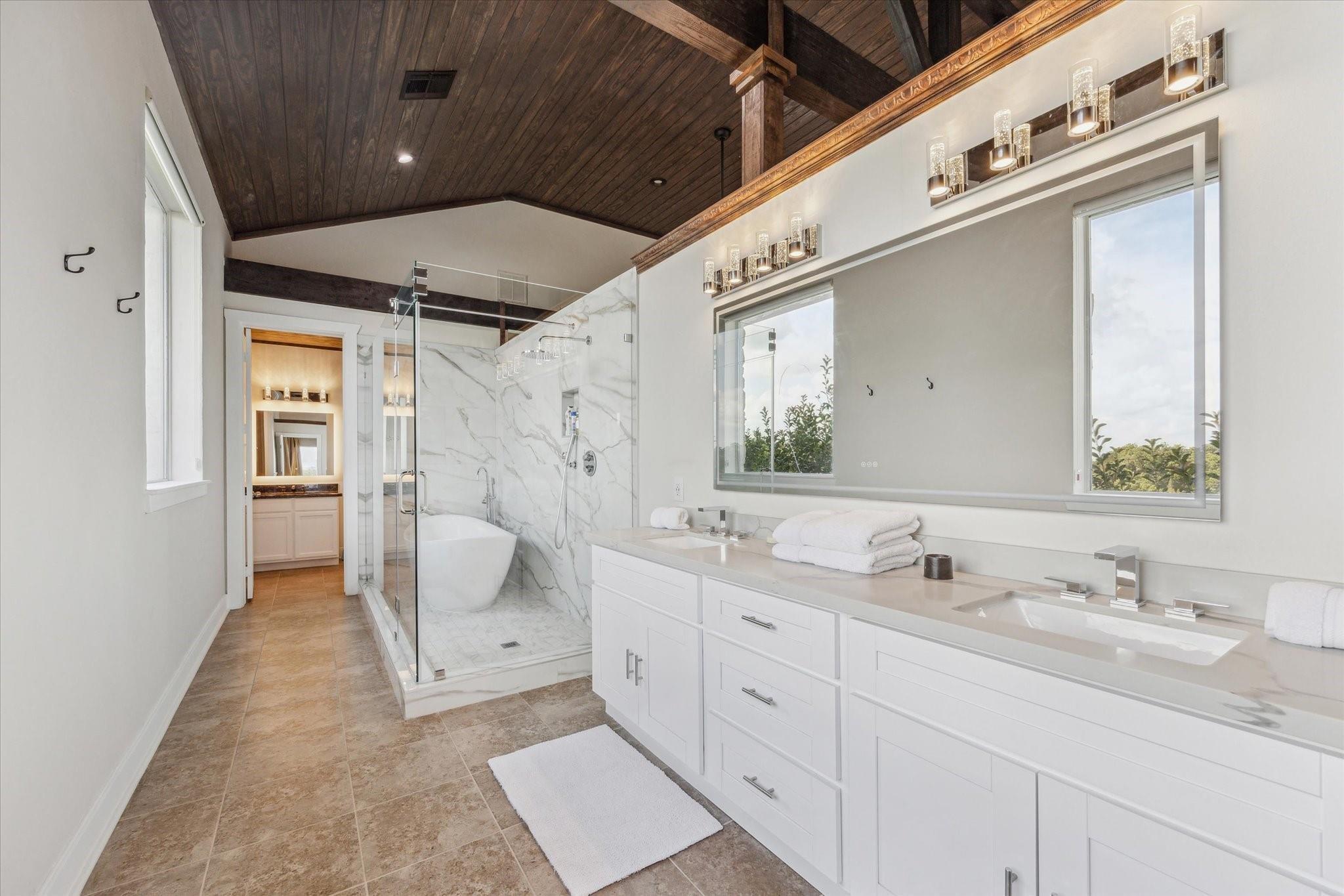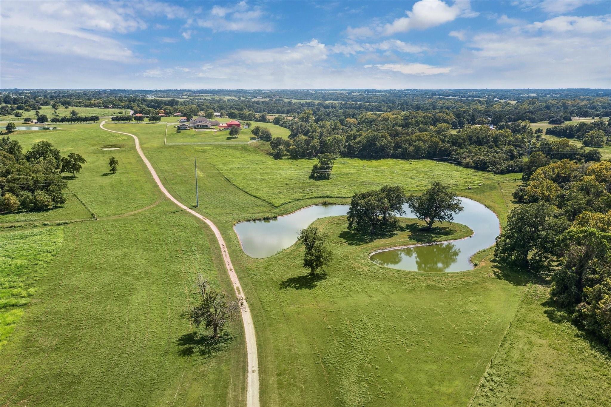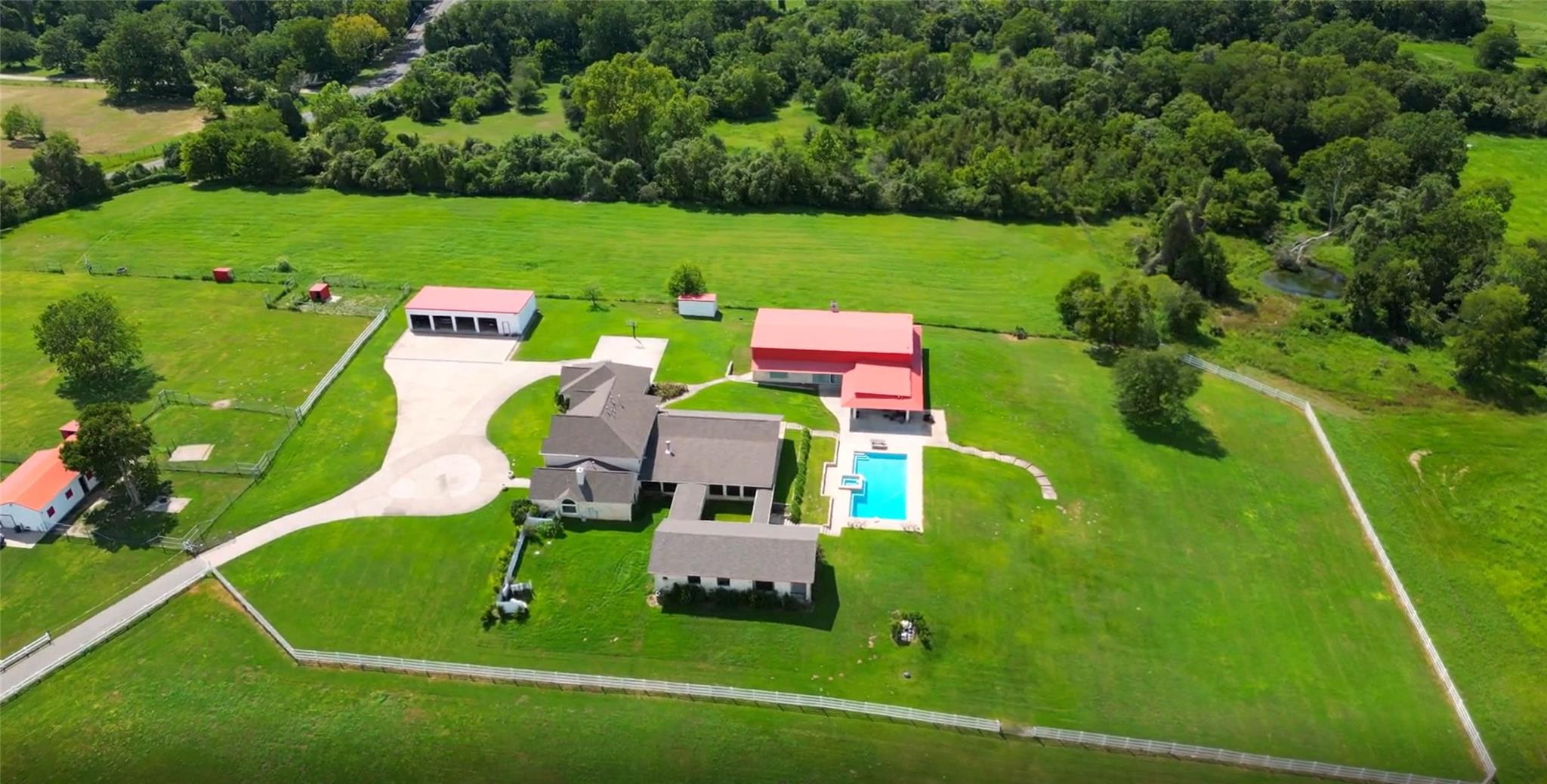 Perched atop the rolling hills of Austin County, this exceptional 430-acre ranch embodies the essence of Texas living. A gated entrance and winding drive reveal native pastures, mature trees, and scenic ponds, creating a private retreat. The 8,900+ sq ft residence blends timeless design with modern comfort, featuring a chef’s kitchen, open living spaces, wet bar, soaring ceilings, and French doors leading to expansive verandas with sweeping views. The private primary wing includes a luxurious bath, while 5 additional bedrooms and 5.5 baths offer ample space for guests. Outdoor amenities include a pool, spa, kitchen, and shaded entertaining areas, plus a detached event facility. The land showcases rolling terrain, multiple ponds, Mill Creek frontage, 5 water wells, barns, outbuildings, and a historic home that is ideal for ranch staff. Sidewalks connect the estate's improvements for seamless access.