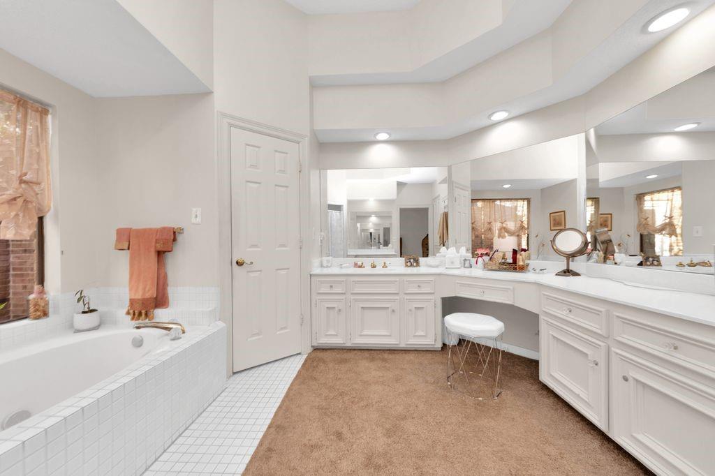 Nestled in a prime location with stunning views, this spacious home boasts plenty of natural light. Circle driveway, 3 car garage, large parking pad behind the garage and a porte-cochere. The open floor plan is perfect for entertaining, while the tranquil backyard offers a peaceful retreat which includes a swimming pool, large patio area and view/access to a peaceful lake. With high ceilings, this property exudes charm and elegance. The gourmet kitchen features, island kitchen, walk-in pantry, trash compactor, plenty of cabinets and countertop workspace. The master suite is a luxurious sanctuary with a spa-like bathroom and walk-in closet. Don't miss out on the opportunity to own this exquisite home in a sought-after neighborhood. This is truly a decorators dream, endless possibilities.