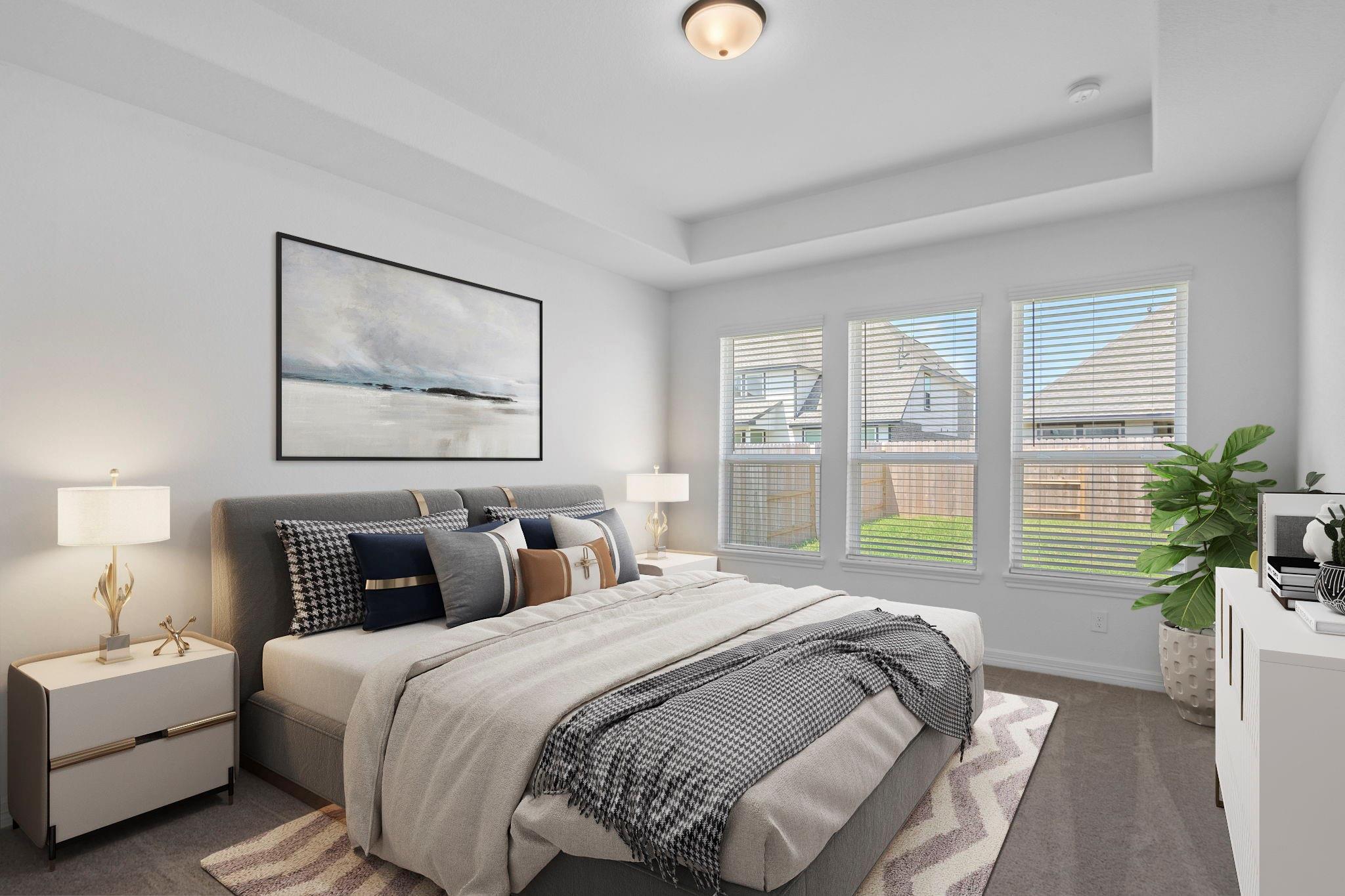 SPACIOUS LOT WITH NO BACK NEIGHBORS JUST STEPS TO AMENITIES! Experience modern living in the Cypress plan with two thoughtfully designed stories. A grand entry opens to a spacious family room with soaring ceilings and views to the game room, perfect for entertaining. The gourmet kitchen offers ample prep space and a large walk-in pantry. The primary suite features a tray ceiling and double door entry to a spa-like bath with dual vanities. First floor guest bedroom and study add flexibility. Finished in the Minimalist Collection with sleek gray cabinetry and clean, modern design. Located in Westland Ranch with resort-style pool, splash pad, pickleball courts, baseball field, and walking trails.