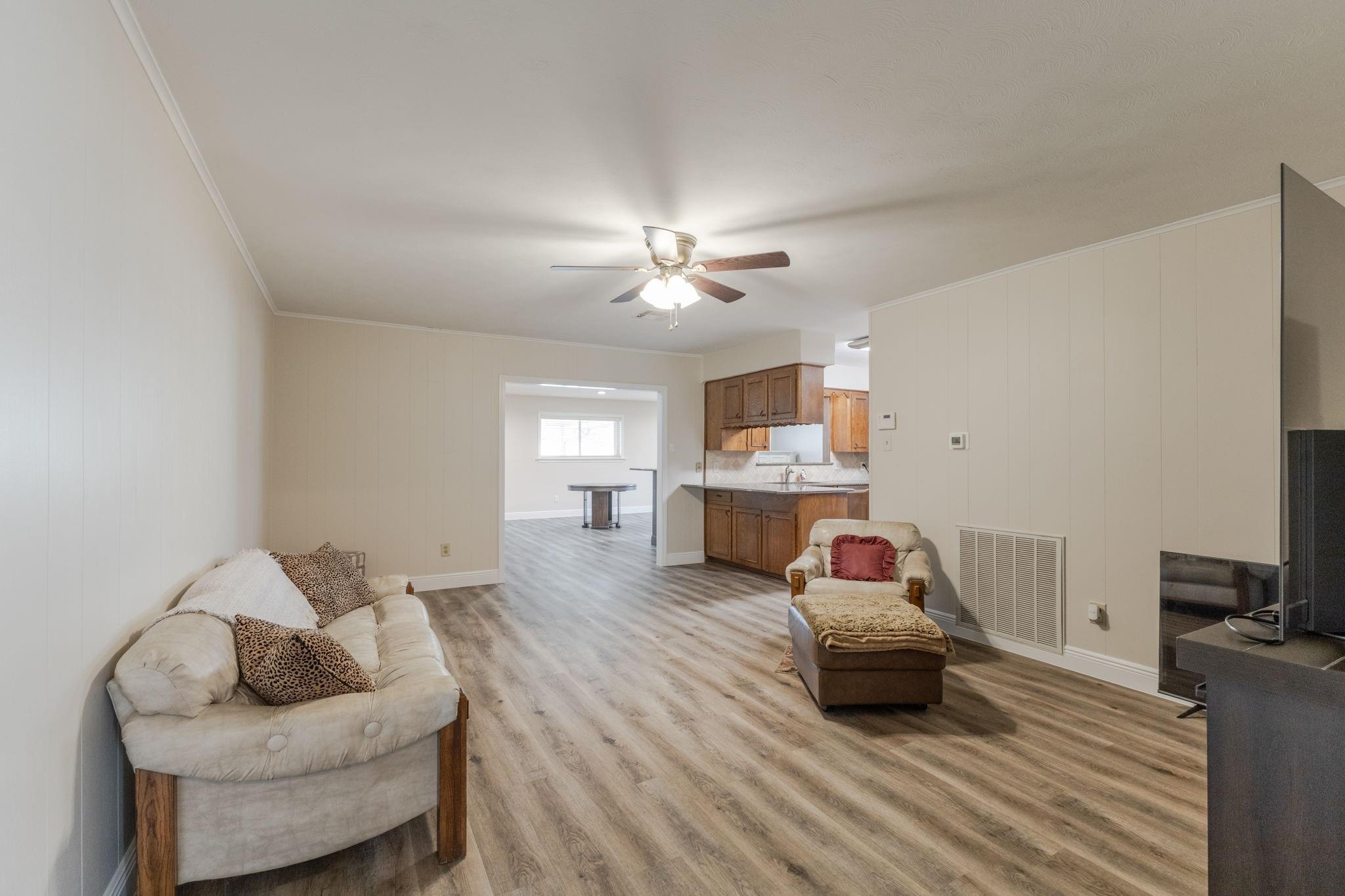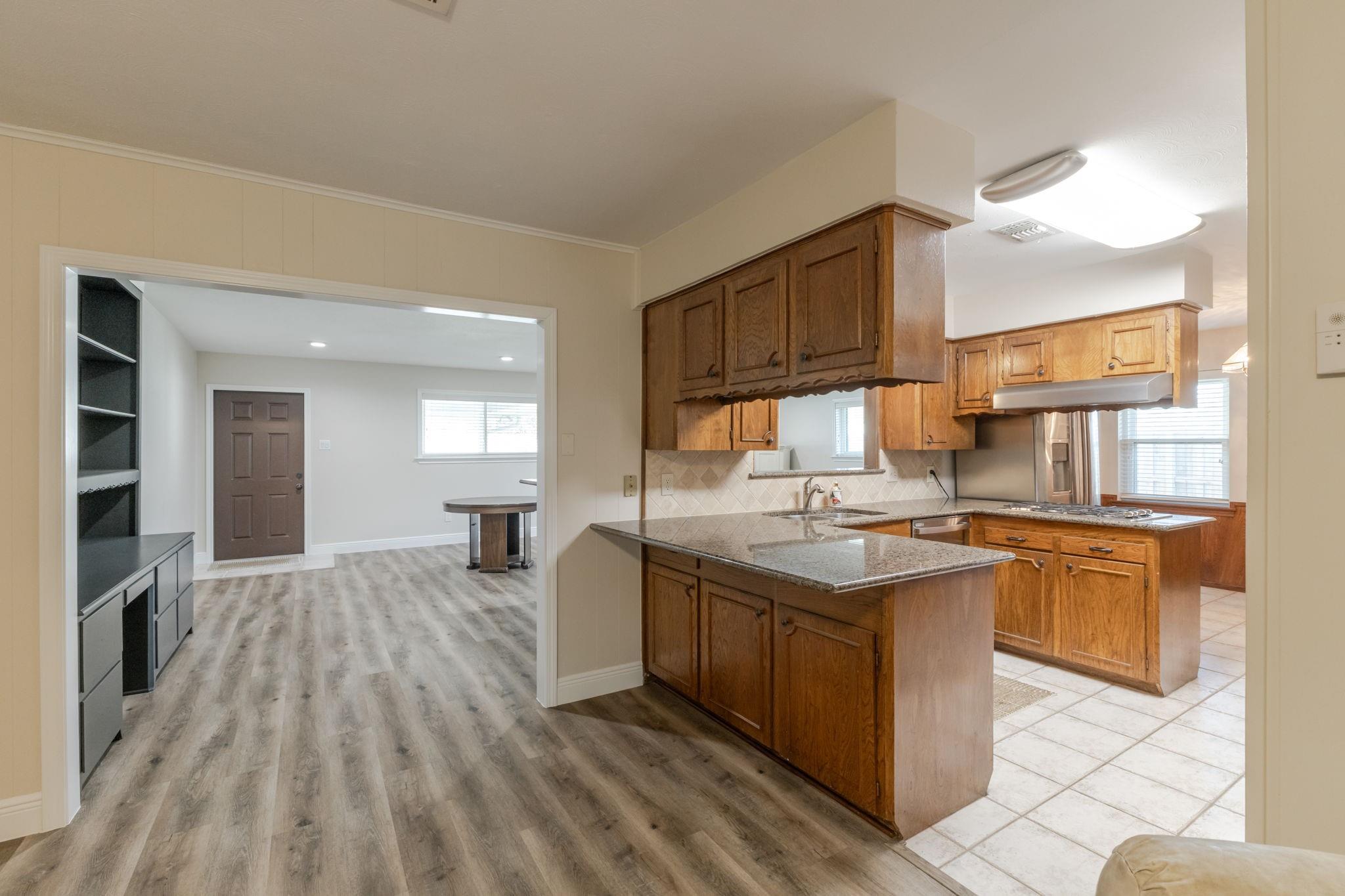 Welcome to this well-kept and maintained residence which has been the pride of one family for over 4 decades. Charming throughout, this 3 bedroom, 2 bath home has benefited from such upgrades as new windows; (double pane energy efficient), premium laminate wood-look flooring on one side of the home, with carpet on the other. Other areas of upgrade include both baths, granite countertops throughout, and a remodeled Family/Game room centered around an L-shaped bar. Off this room is direct access to a covered patio and lush backyard for seamless transition of indoor and outdoor enjoyment. Overlooking the backyard, in the primary suite, you will find a cozy space with a 2-part walk-in closet featuring a massive amount of space and shelving, as well as, a bath which has been upgraded to include a glass shower enclosure. Even better this home is reliable during uncertain weather since it's wired for a portable generator (included). Make sure not to miss out on this ideal "starter home"!!!