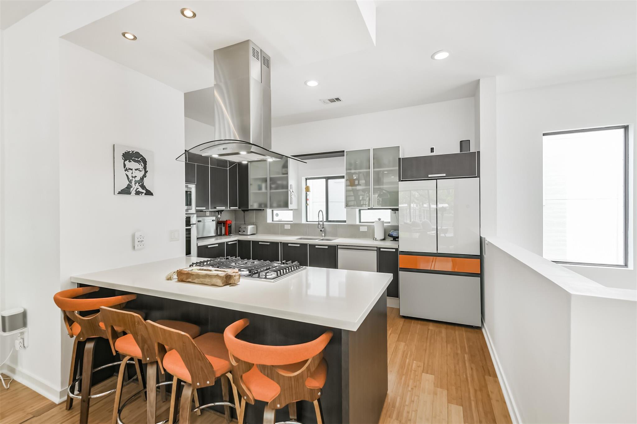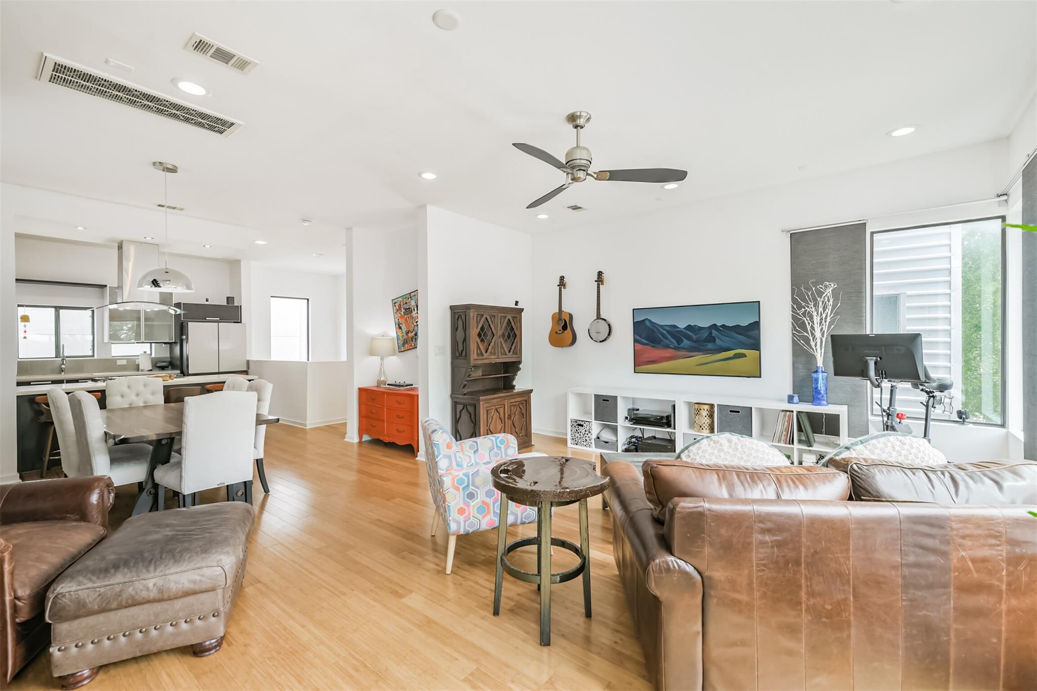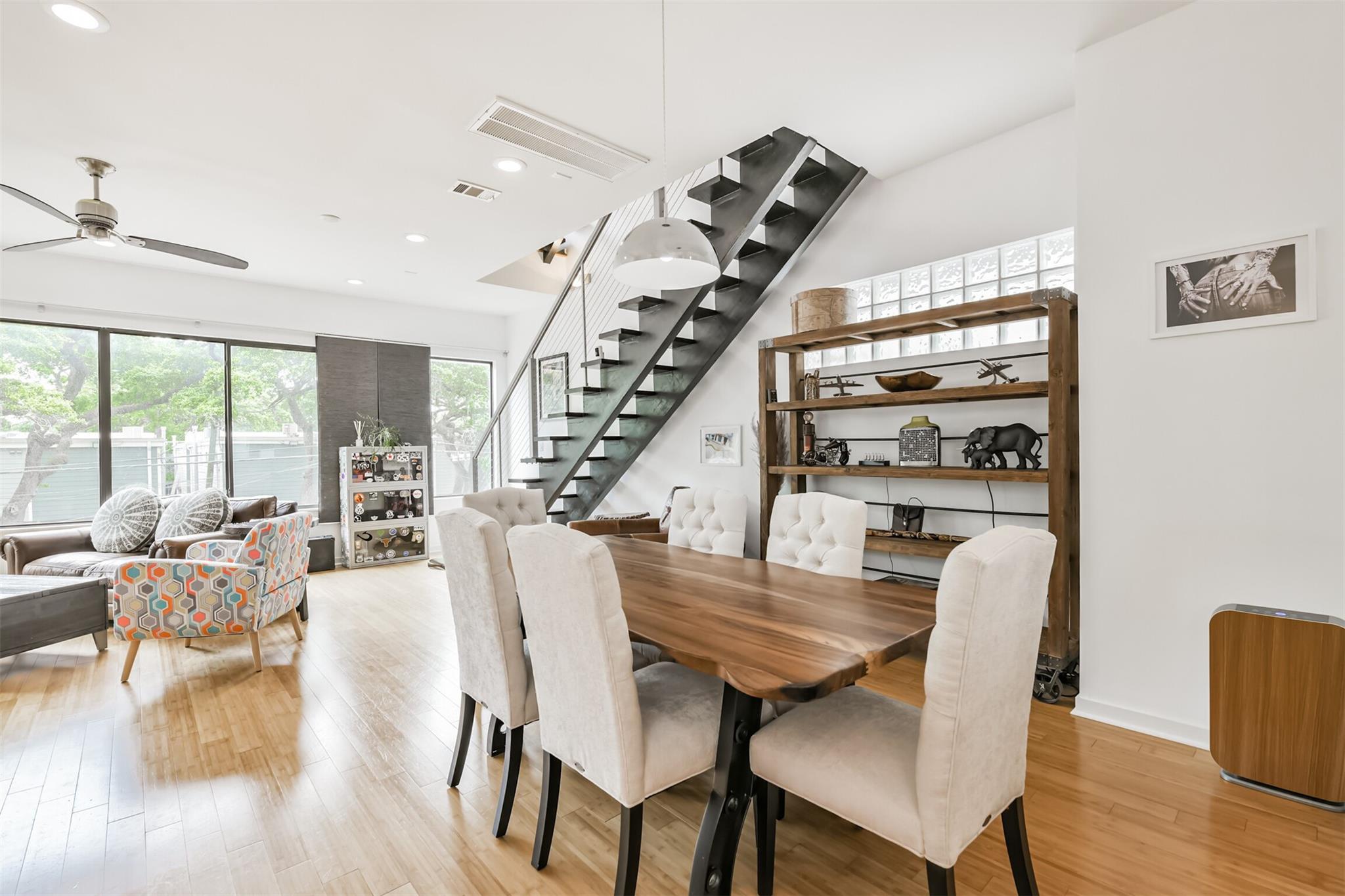 Modern Montrose living meets elevated city lifestyle at 406 Pacific St. This move-in ready home offers an open-concept design with 3 en-suite bedrooms. Highlights include bamboo flooring, expansive windows with a view and custom window shades designed for energy efficiency. The chef’s kitchen anchors the home with Foscari cabinetry, frosted glass fronts, and Silestone countertops with a seamless flow into living and dining. Retreat to the spacious primary suite and large contemporary spa-like bathroom. The highlight of the home is the oversized rooftop terrace overlooking the city —perfect for relaxing or hosting with skyline views - finished off with weatherstone composite decking. Located in one of the most desirable areas in Montrose, this property delivers style, function, and urban convenience. Located just minutes from Downtown, Mid-town, Allen Parkway.