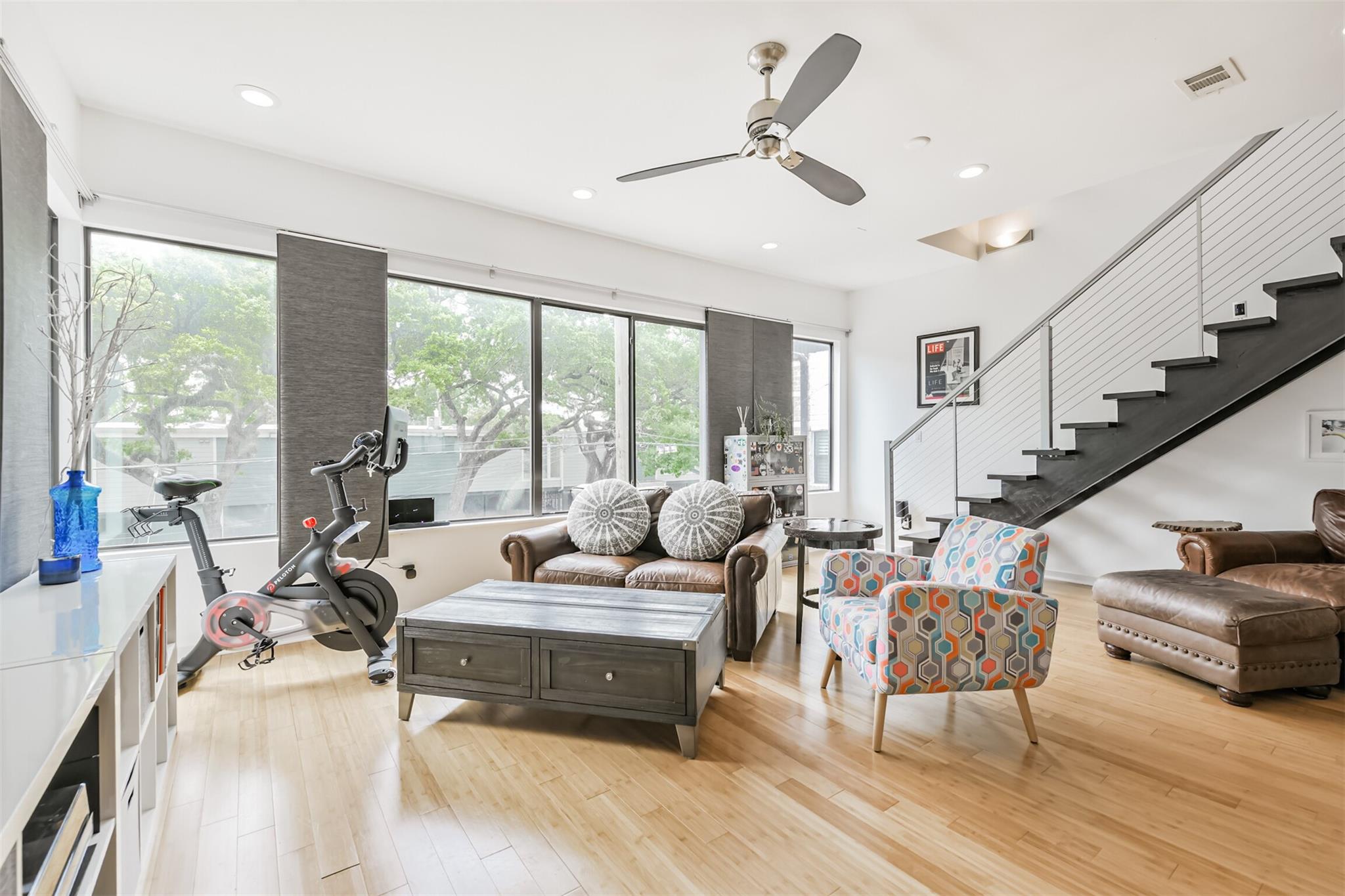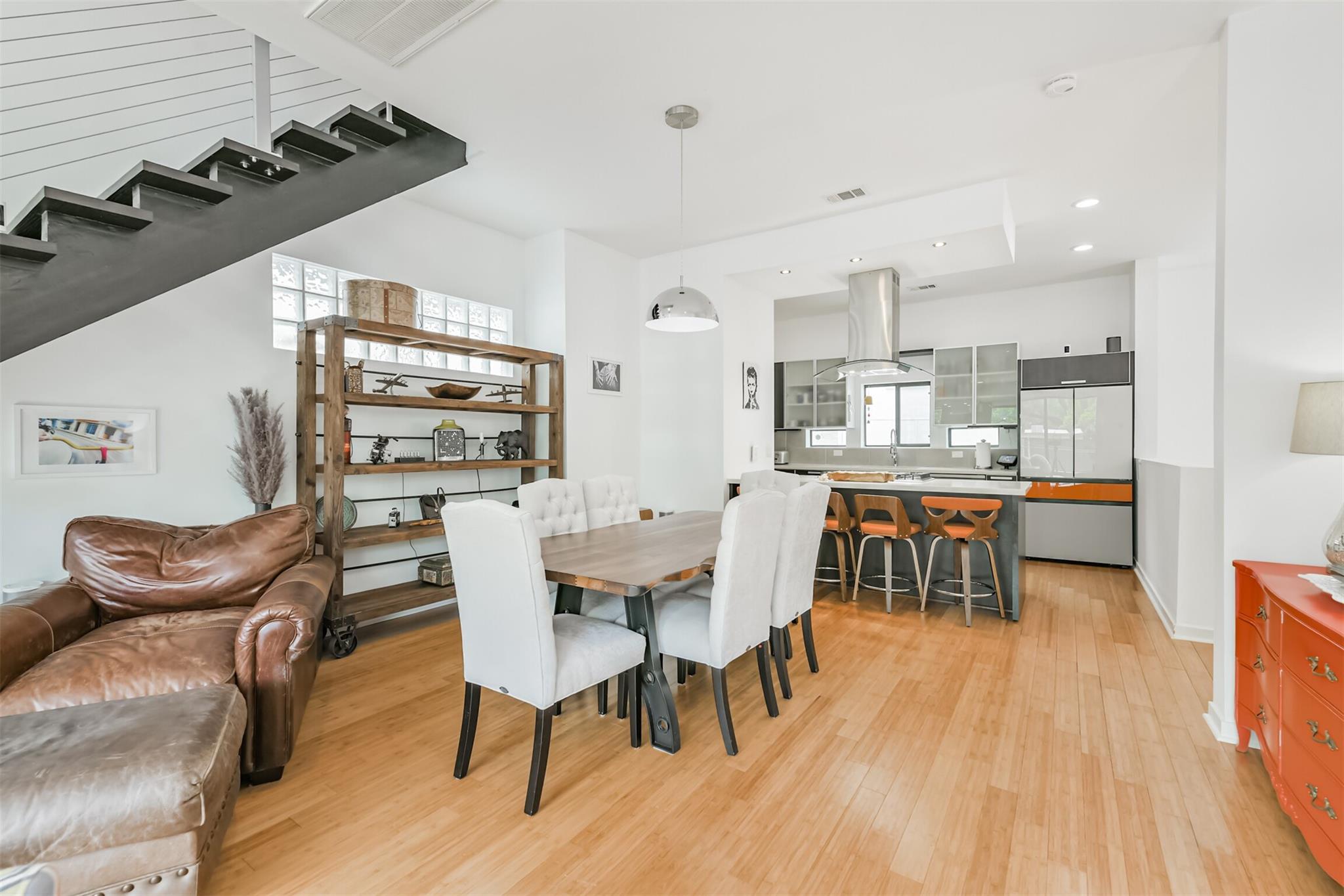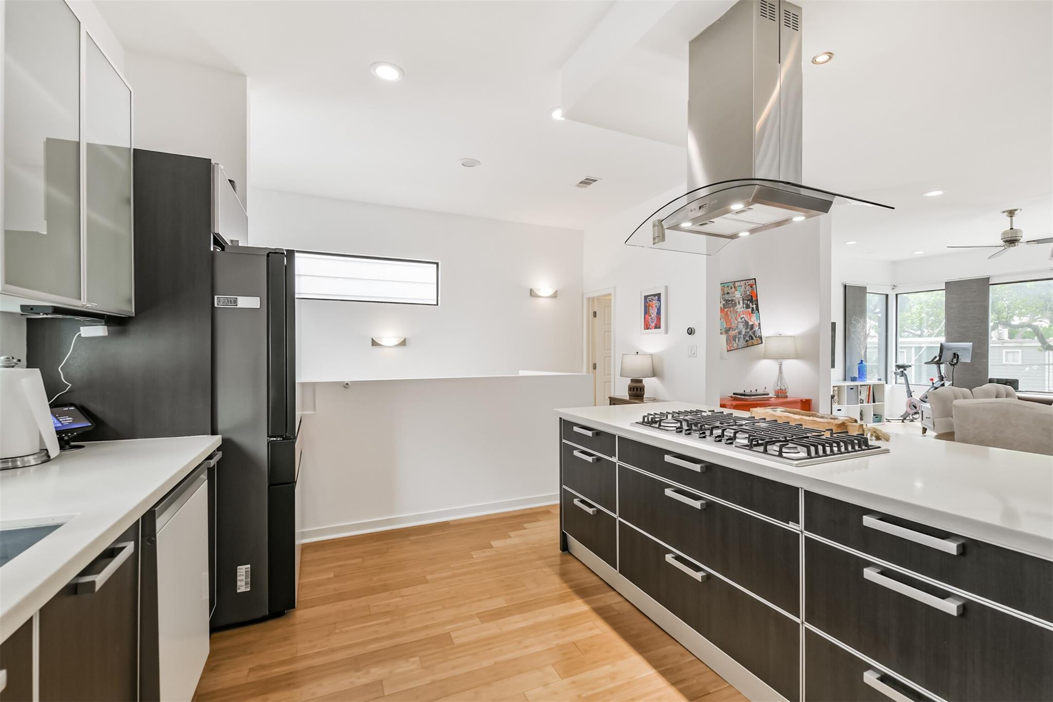 Modern Montrose living meets elevated city lifestyle at 406 Pacific St. This move-in ready home offers an open-concept design with 3 en-suite bedrooms. Highlights include bamboo flooring, expansive windows with a view and custom window shades designed for energy efficiency. The chef’s kitchen anchors the home with Foscari cabinetry, frosted glass fronts, and Silestone countertops with a seamless flow into living and dining. Retreat to the spacious primary suite and large contemporary spa-like bathroom. The highlight of the home is the oversized rooftop terrace overlooking the city —perfect for relaxing or hosting with skyline views - finished off with weatherstone composite decking. Located in one of the most desirable areas in Montrose, this property delivers style, function, and urban convenience. Located just minutes from Downtown, Mid-town, Allen Parkway.