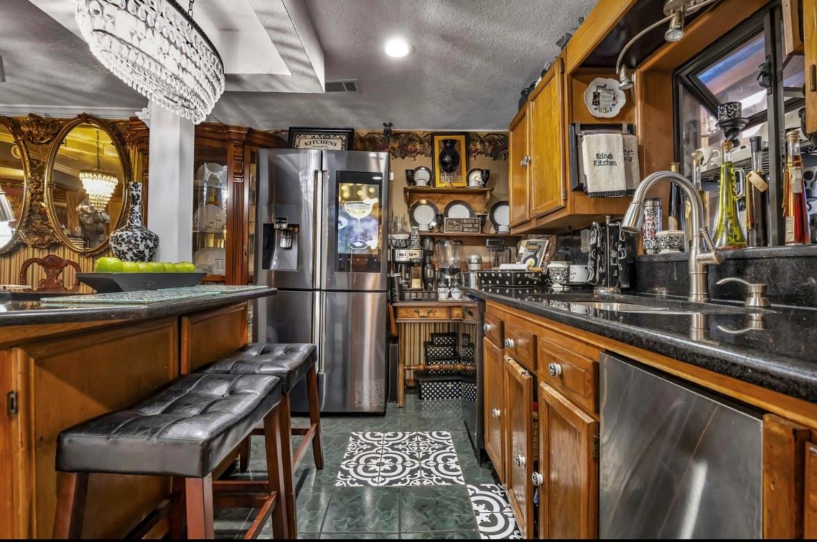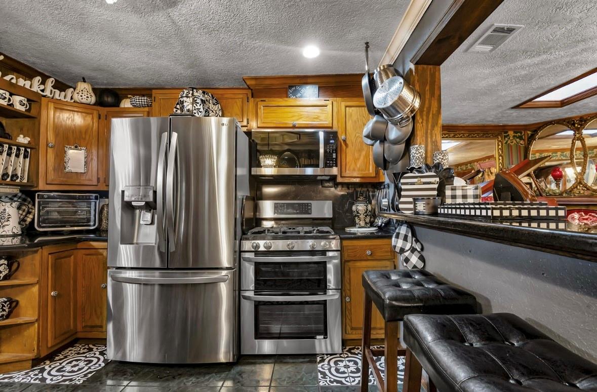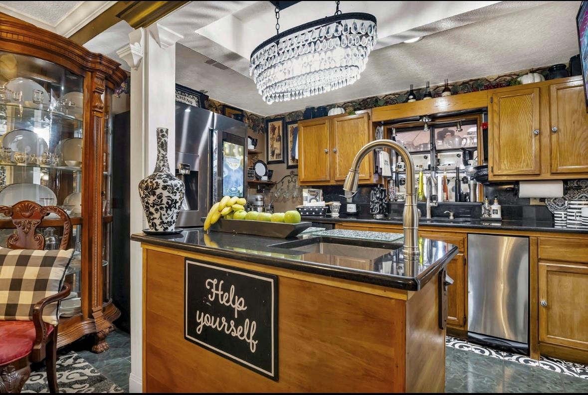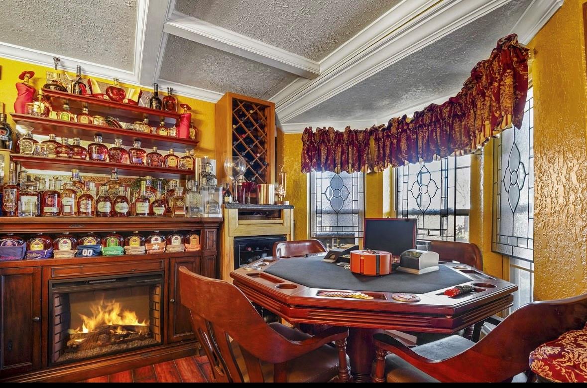 InteriorFireplace:3/Gas ConnectionsFloors:Engineered Wood,TileRoom Description:Family Room,Formal Dining,Gameroom Down,Home Office/Study,Utility Room in HouseBathroom Description:Full Secondary Bathroom Down,Primary Bath: Jetted TubKitchen Desc:Breakfast BarBedroom Desc:All Bedrooms DownHeating:Central GasCooling:Central ElectricConnections:Electric Dryer Connections,Washer ConnectionsRange:Gas RangeMicrowave:YesDisposal:YesDishwasher:YesInterior:Crown Molding,Wet Bar