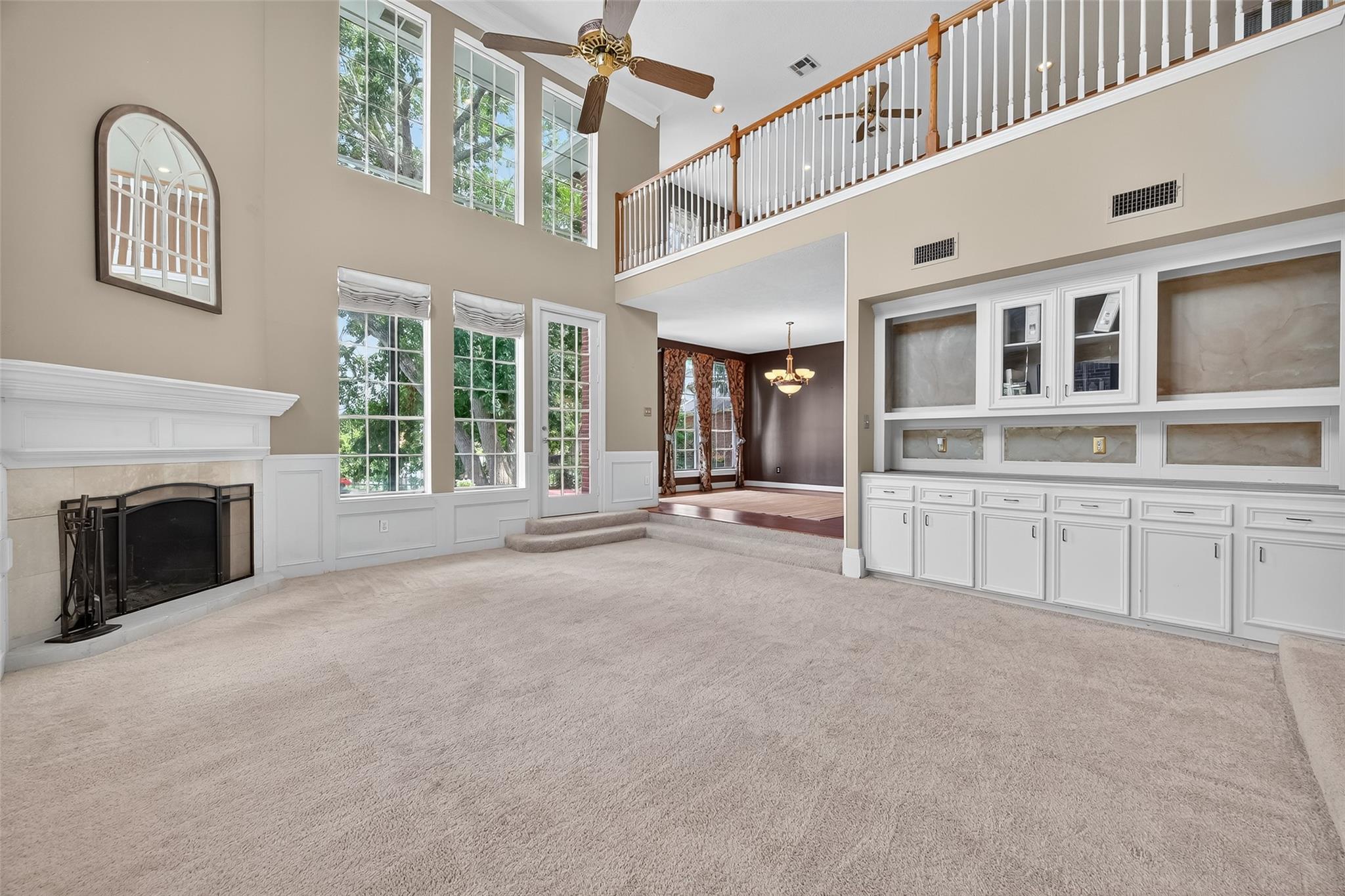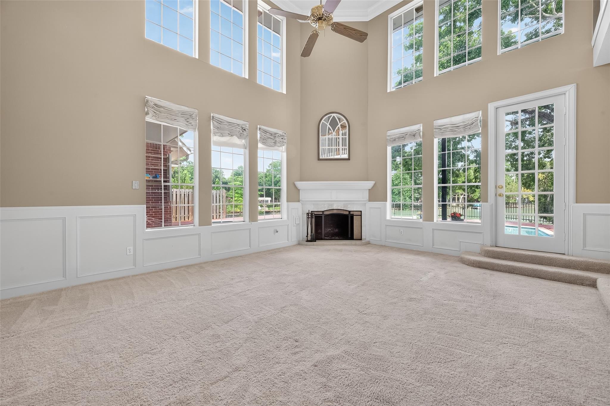 InteriorFireplace:1Floors:Carpet,TileBathroom Description:Full Secondary Bathroom Down,Primary Bath: Double Sinks,Primary Bath: Jetted Tub,Primary Bath: Separate ShowerBedroom Desc:Primary Bed - 1st FloorKitchen Desc:Breakfast BarRoom Description:Breakfast Room,Family Room,Formal Dining,Gameroom Up,Home Office/StudyHeating:Central GasCooling:Central ElectricConnections:Electric Dryer Connections,Gas Dryer Connections,Washer ConnectionsDishwasher:YesDisposal:YesCompactor:YesMicrowave:YesRange:Gas RangeOven:Gas OvenIce Maker:NoEnergy Feature:Ceiling FansInterior:Crown Molding,Fire/Smoke Alarm,Formal Entry/Foyer,High Ceiling,Spa/Hot Tub,Window Coverings