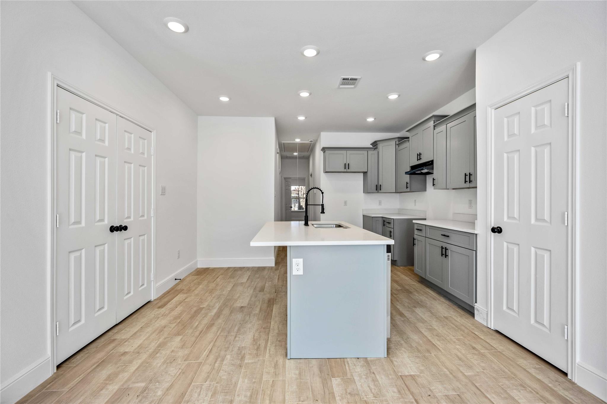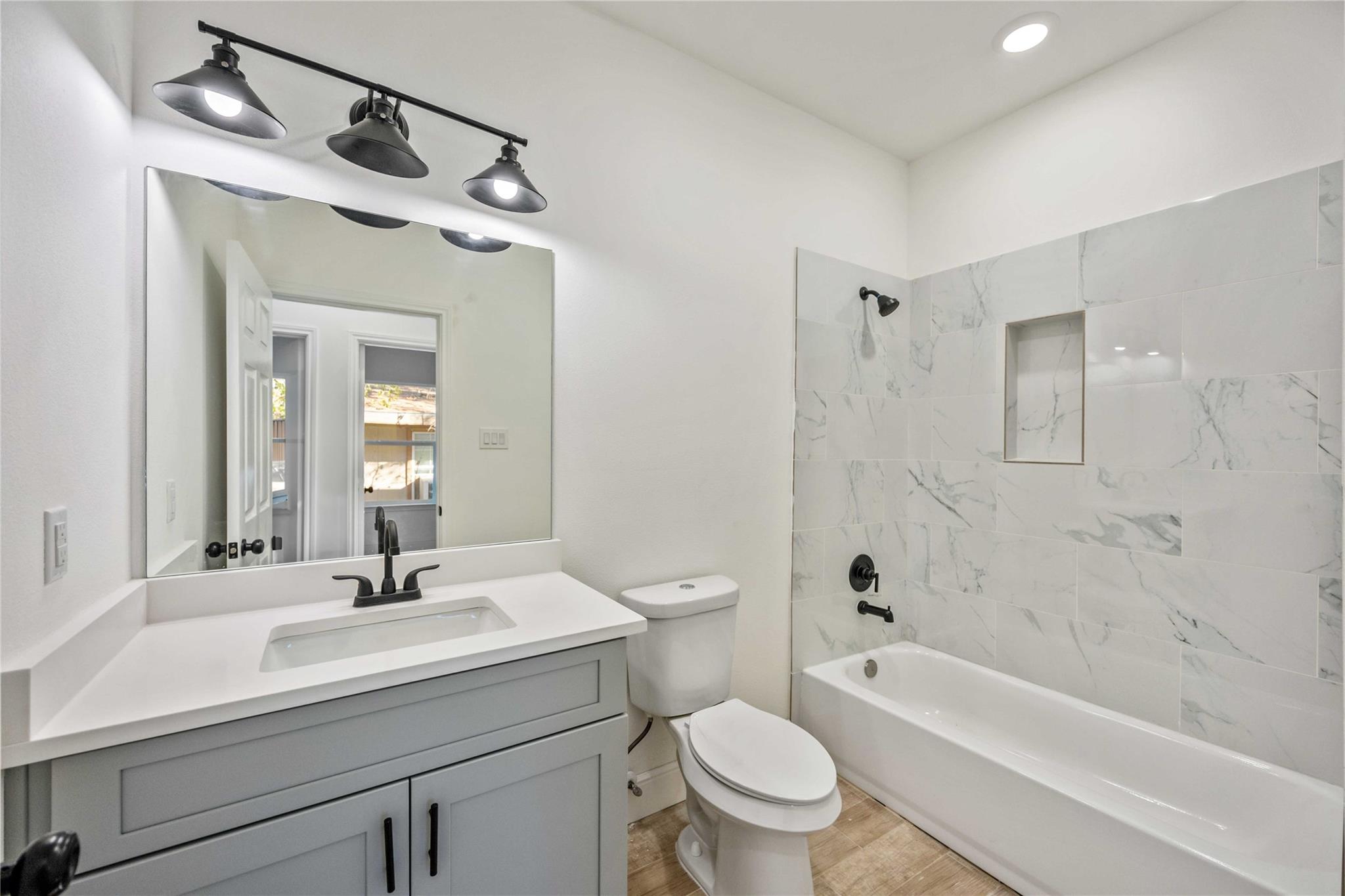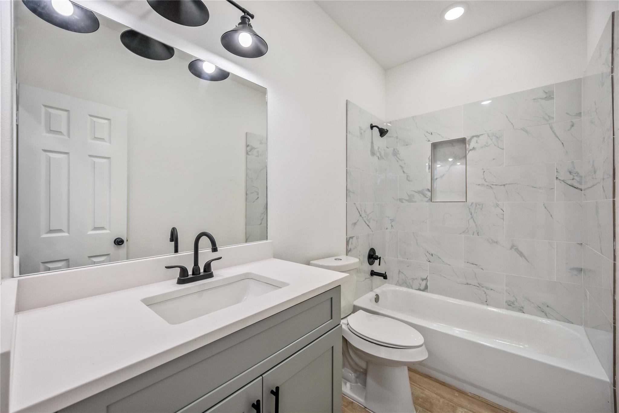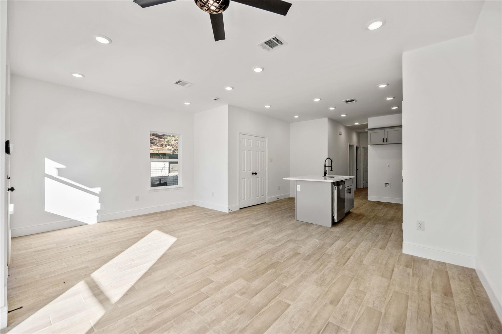 This modern duplex offers a fantastic investment opportunity with an established tenant base already in place. Each unit features a crisp, contemporary aesthetic highlighted by a neutral color palette, durable wood-look flooring, and recessed lighting throughout. The open-concept living areas transition seamlessly into a sleek kitchen equipped with stylish gray cabinetry, white quartz countertops, and a functional island. The spacious bedrooms provide ample natural light and generous closet space, while the bathrooms are elegantly finished with marble-patterned tiling and matte black hardware. Outside, the property boasts a clean, board-and-batten facade with brick accents and individual concrete parking pads for each side. With its low-maintenance finishes and modern upgrades, this turnkey multi-family home is designed for long-term value and consistent rental appeal in a growing market.