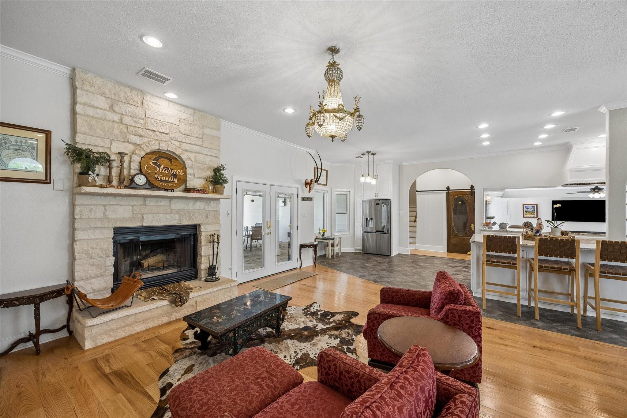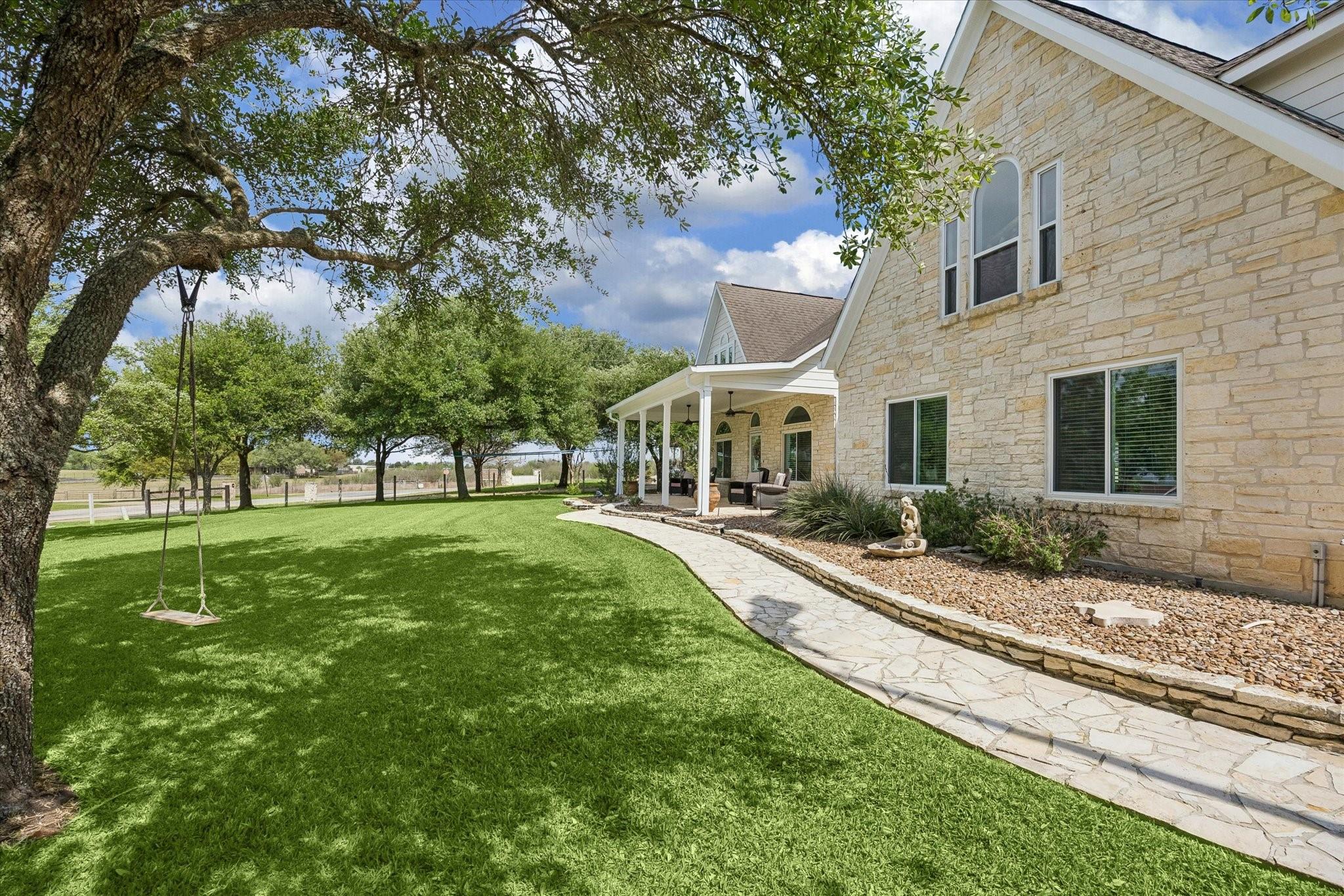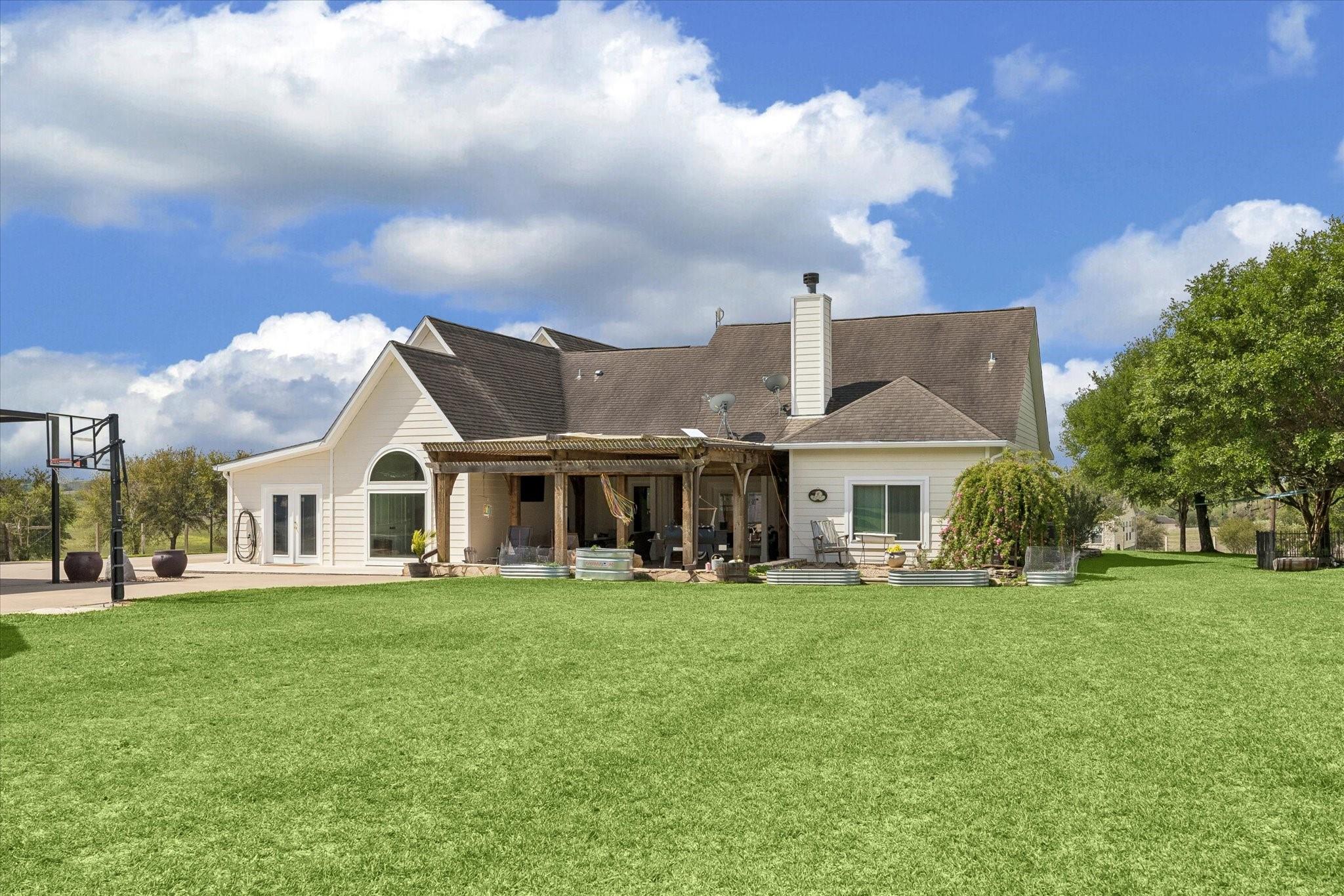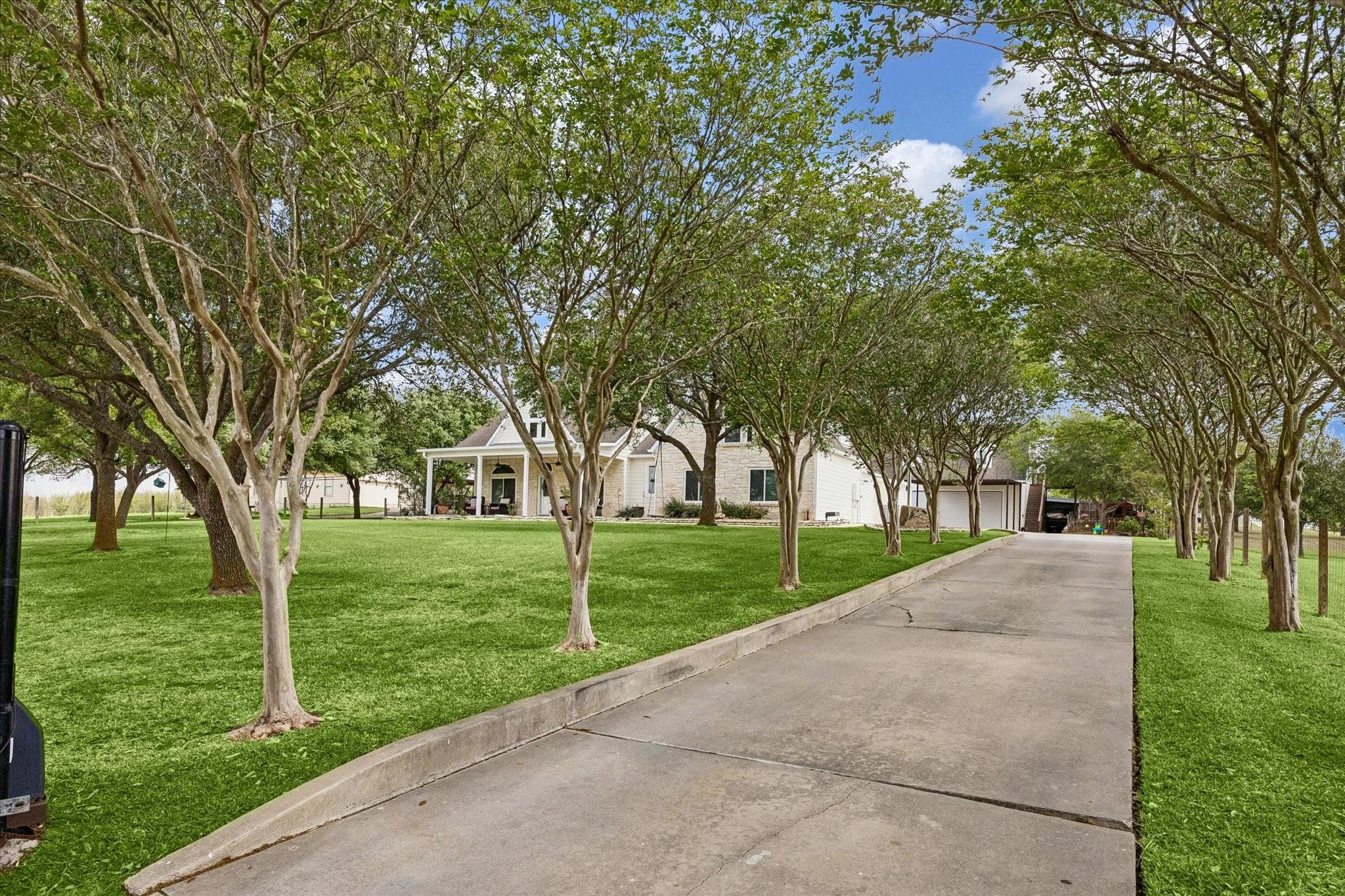 Gorgeous custom home on one acre in a small country neighborhood minutes from Brenham, offering peaceful surroundings with everyday convenience. Recently updated, this property has been thoughtfully improved inside and out. The home features 4 beds & 3 baths, including a downstairs primary suite and a private second-floor guest suite. The open-concept living, dining, and kitchen areas are bright and inviting with high ceilings, real oak wood flooring, updated cabinetry, granite countertops, & newer appliances. Fresh interior and exterior paint and updated windows, enhance the home’s appeal. Step outside to a fully fenced property with an electric gated entrance, surrounded by established herbs and fruit trees. Multiple outdoor seating areas create a relaxed setting. Additional improvements include irrigation, gutters, and a whole house generator. The property also offers an oversized garage with A/C, workshop space, covered carport, & a 936 sq ft garage apartment with 2 beds & 1 bath.
